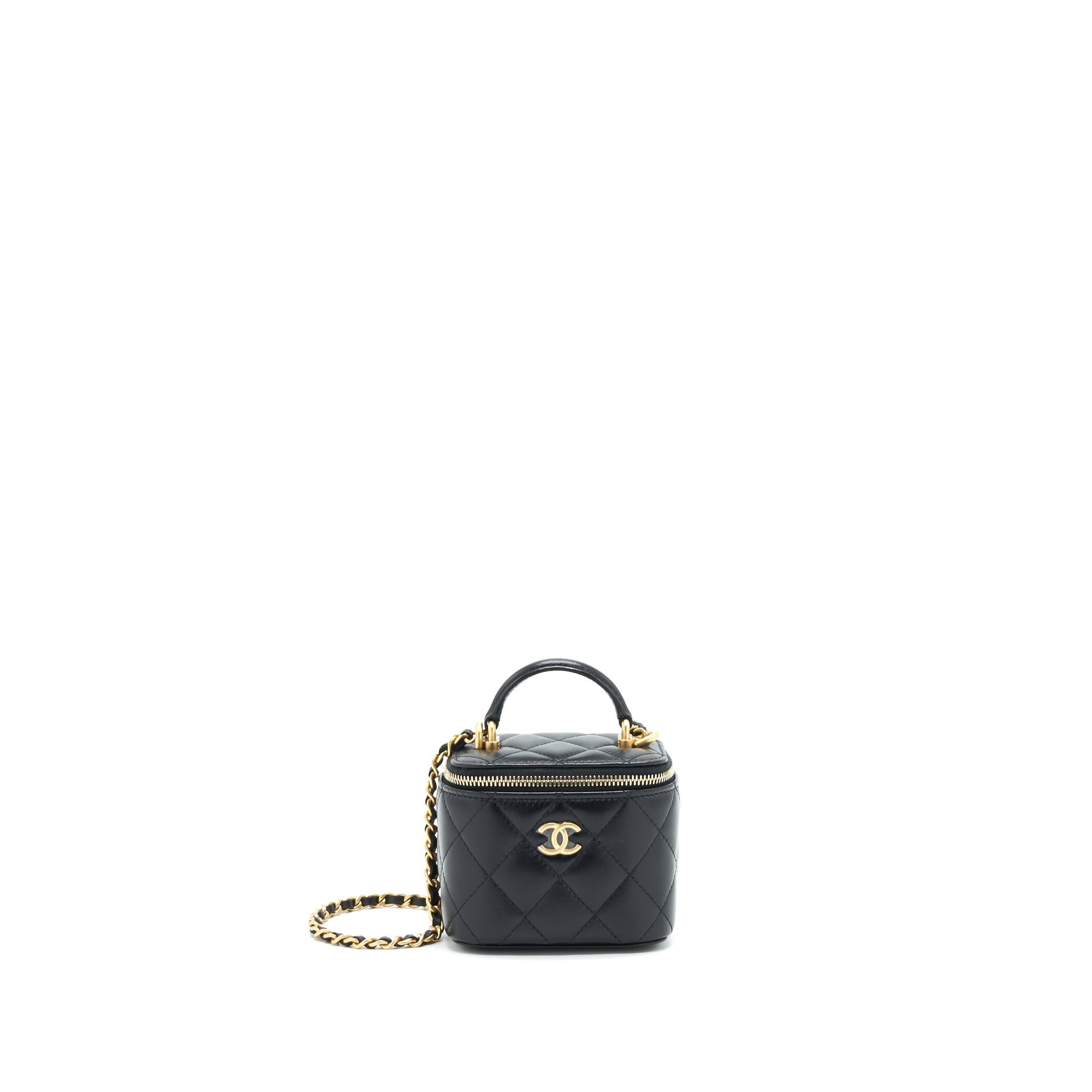 Chanel Small Handle Vanity With Chain Lambskin Black GHW