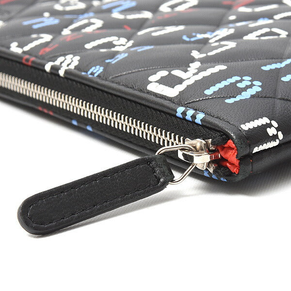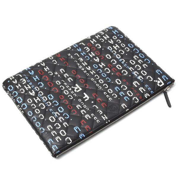 Item name : Chanel Lambskin Typography Clutch Bag Black