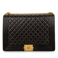 An absolute must-have for any fashion lover with a soft spot for Chanel, it basically goes without saying that this bag is a necessity in any luxury handbag collection. The Boy bag is not only an iconic piece that will remain in style forever, but it's the perfect balance between classic elegance and modern edge. Wear this bag with absolutely anything in your wardrobe, from casual jeans and a basic tee to a dressy skirt and blazer - you'll be sure to compliment any look with the Large Boy by your side. Spacious enough to carry all your essentials comfortably inside, the larger style is the perfect balance between fashion and function. Carefully crafted from smooth black lambskin leather and aged gold hardware, this bag is the ideal investment for any modern young woman with a fashion forward sense of style and a love for classic luxury. A well-worthy investment piece that will never decrease in value, this Boy is one you’ll never want to break up with.