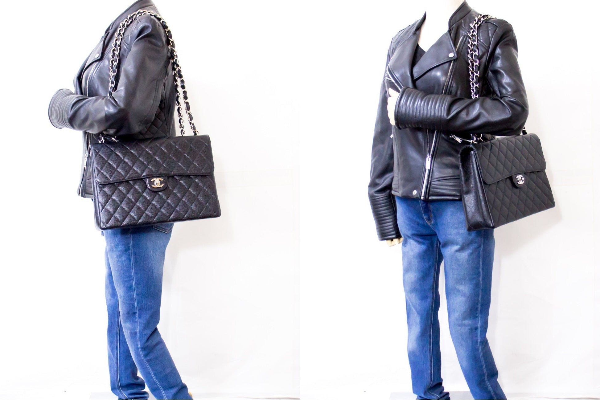 An authentic CHANEL Large Classic Handbag Chain Shoulder Bag Flap Black Caviar g66 This item is Vintage / Classic. The year of manufacture would be 2000-2002.