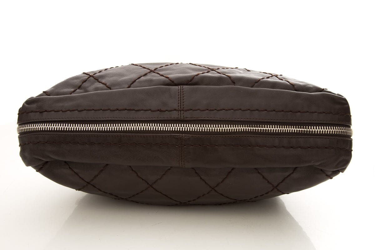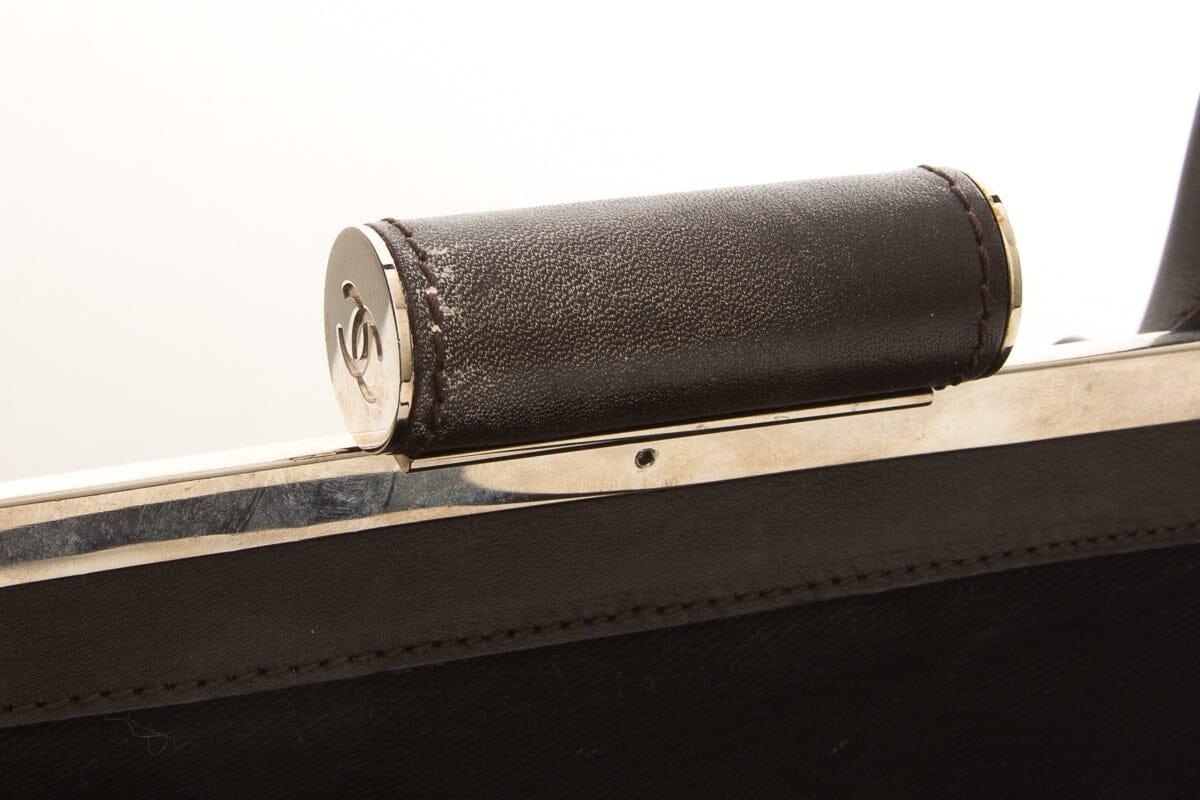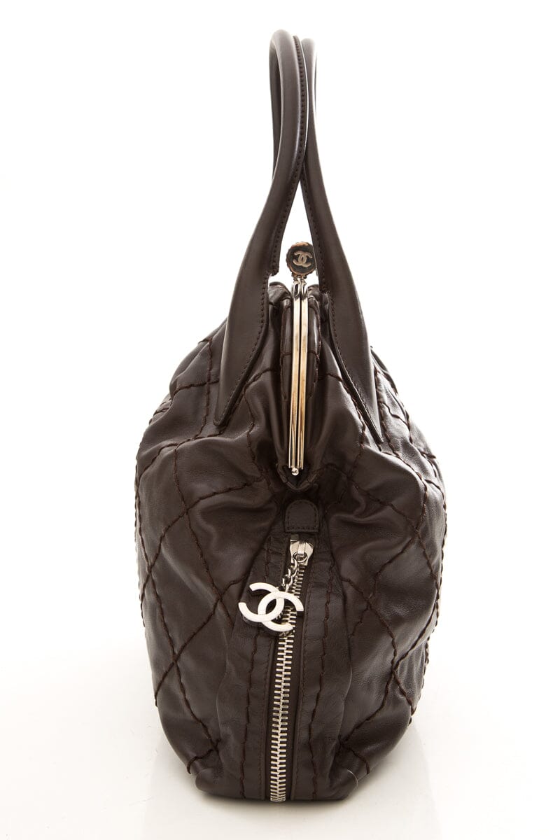 Chanel 2006 Large Trendy Zip Around Handbag by Karl Lagerfeld. This item is in good condition but has some tarnishing to hardware, wear to leather on clasp and slight wear to corner edges.