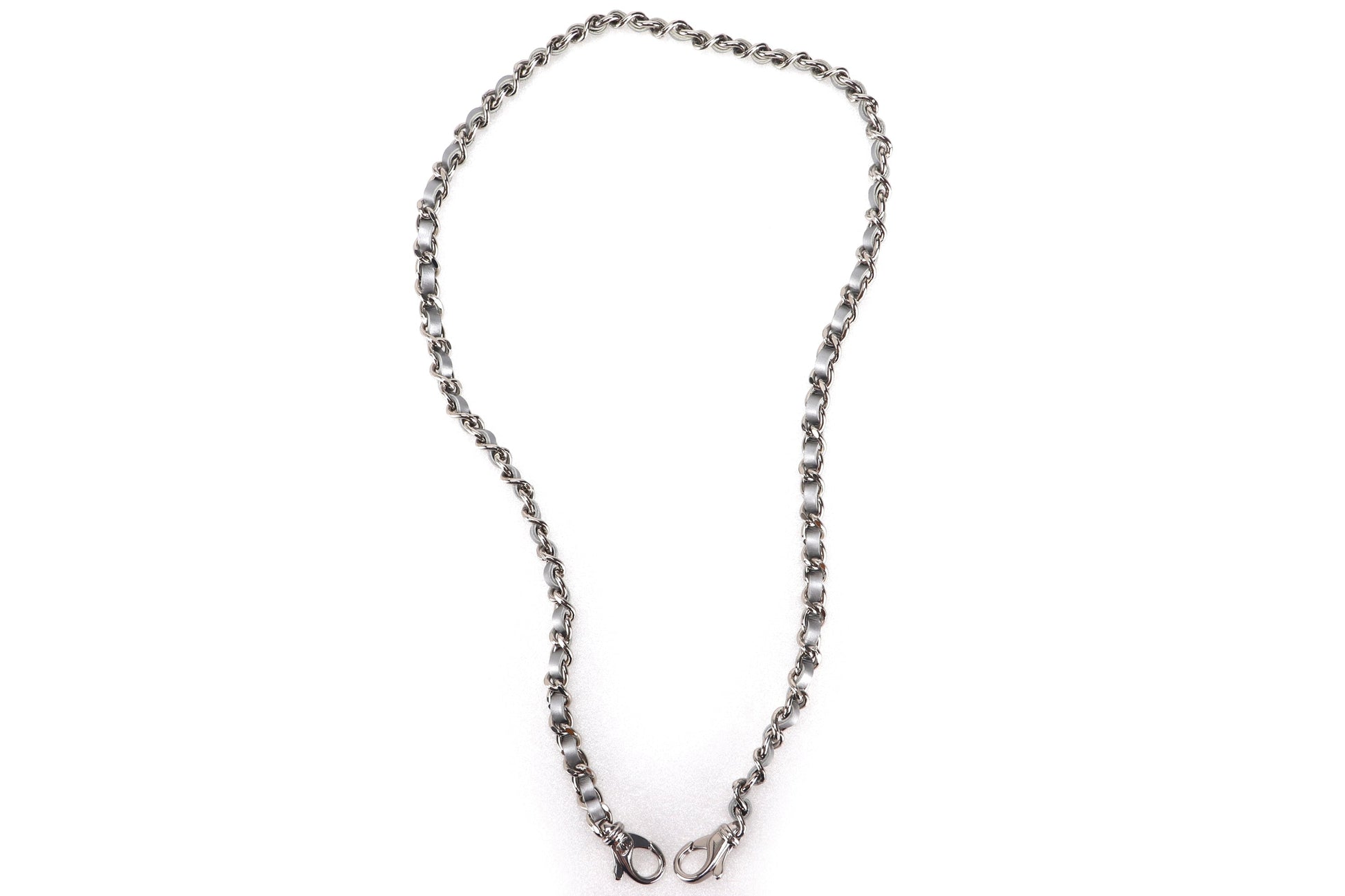 CHANEL LEATHER CHAIN BAG ACCESSORIES GREY SILVER HARDWARE