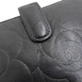 Chanel Camellia Double Flap Leather Wallet Black A47422