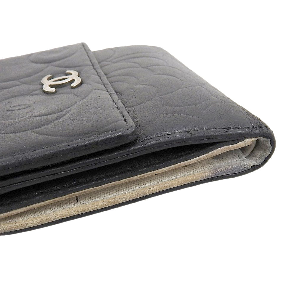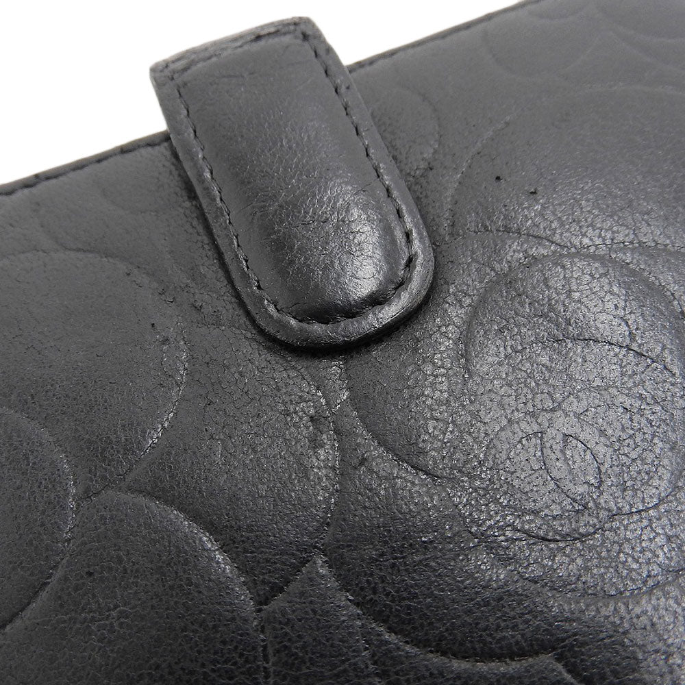 Item name : Chanel Camellia Double Flap Leather Wallet Black A47422