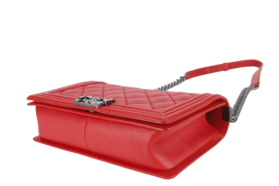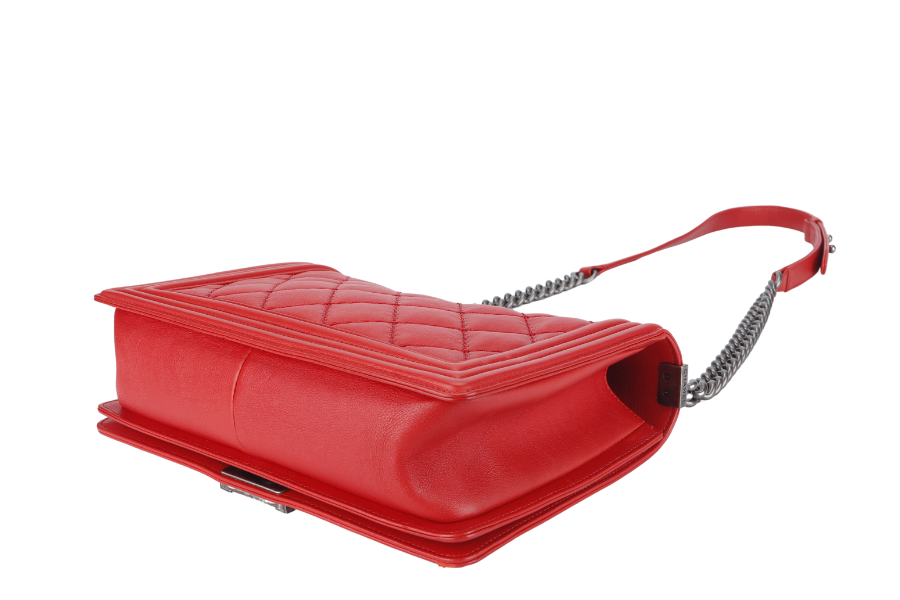 CHANEL LEBOY (1877xxxx) NEW MEDIUM RED ULTRA STITCH RUTHENIUM HARDWARE WITH