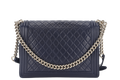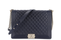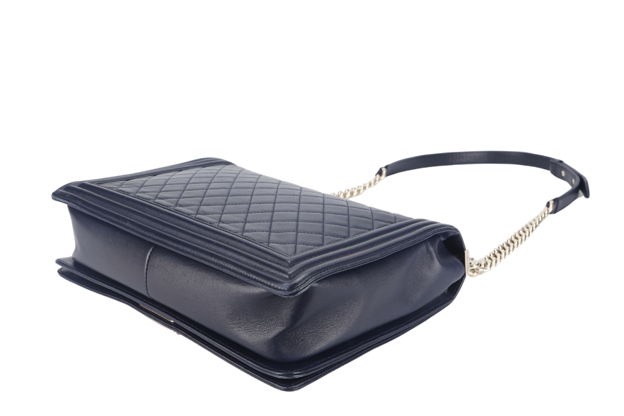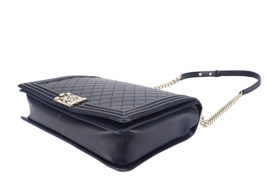 CHANEL LEBOY LARGE (2226xxxx) NAVY BLUE LAMBSKIN GOLD HARDWARE WITH DUST COVER AND BOX
