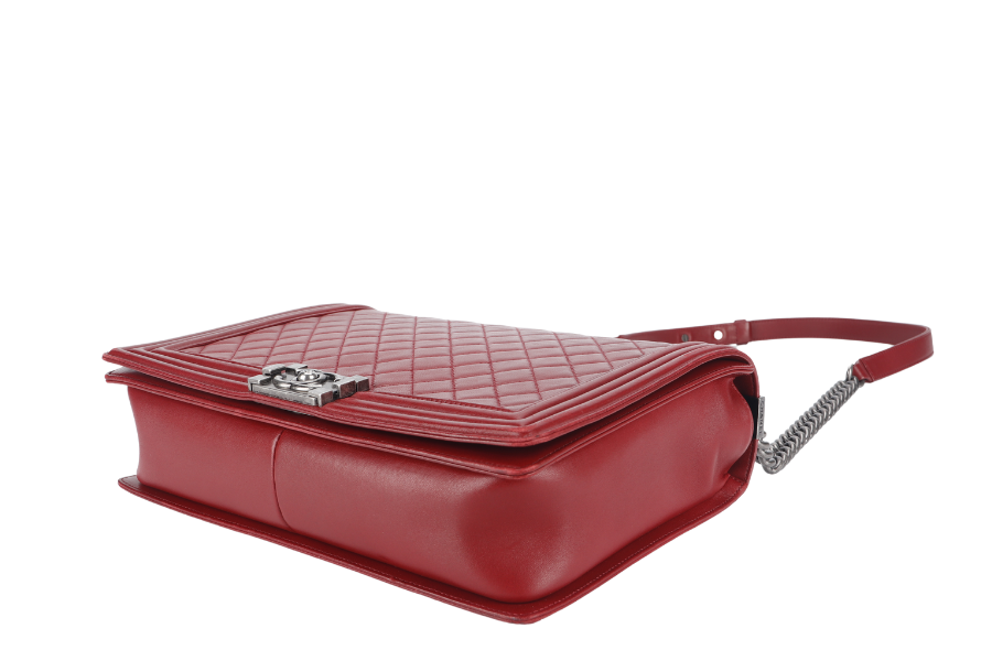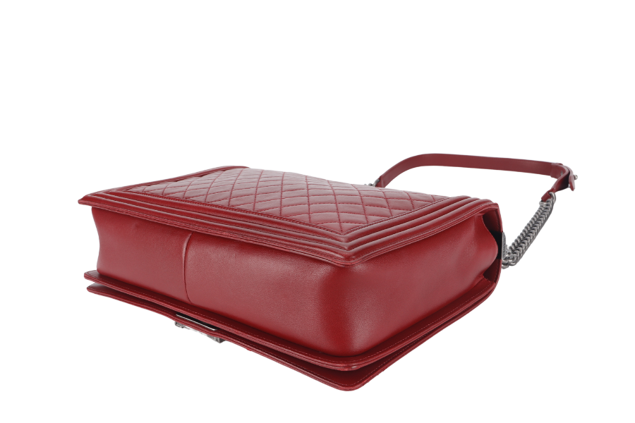 CHANEL LEBOY (1837xxxx) LARGE RED LAMBSKIN LEATHER RUTHENIUM HARDWARE WITH AND DUST COVER