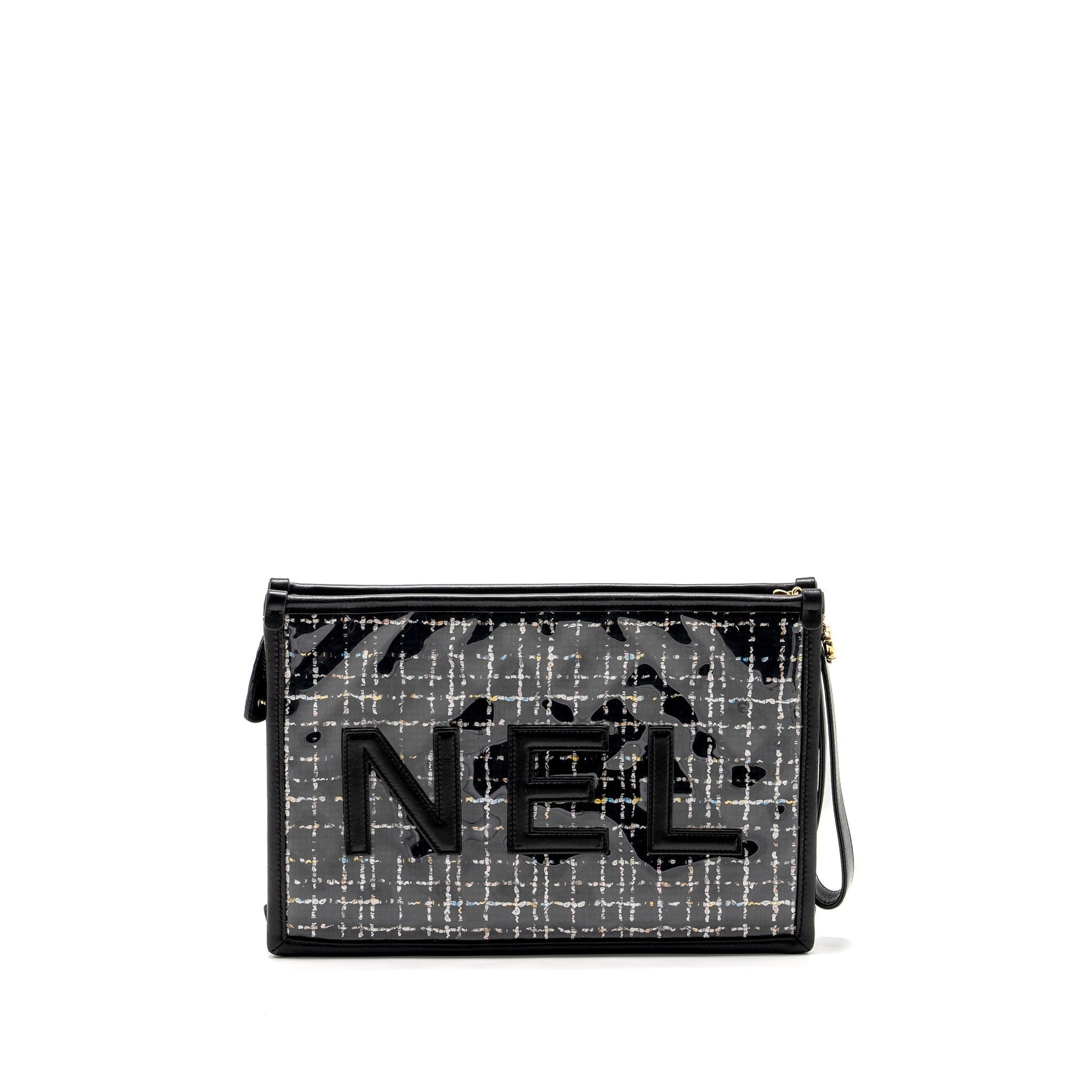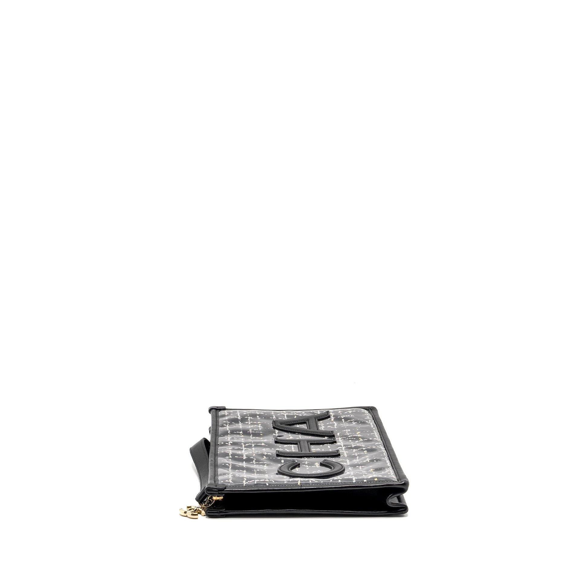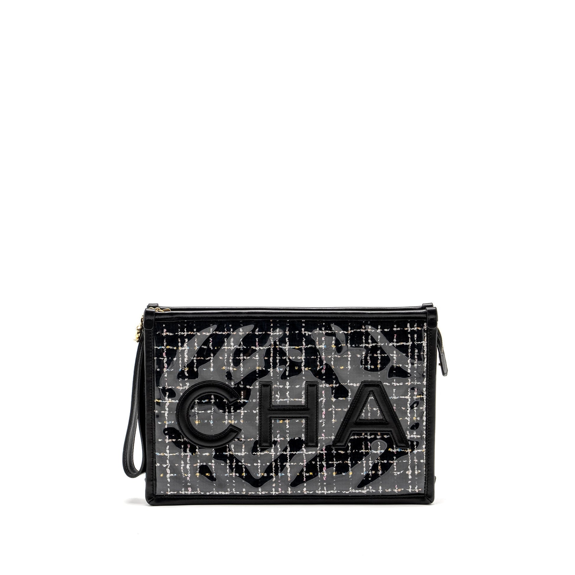 Chanel Letter Logo Clutch Bag Tweed PVC/Lambskin Black LGHW