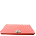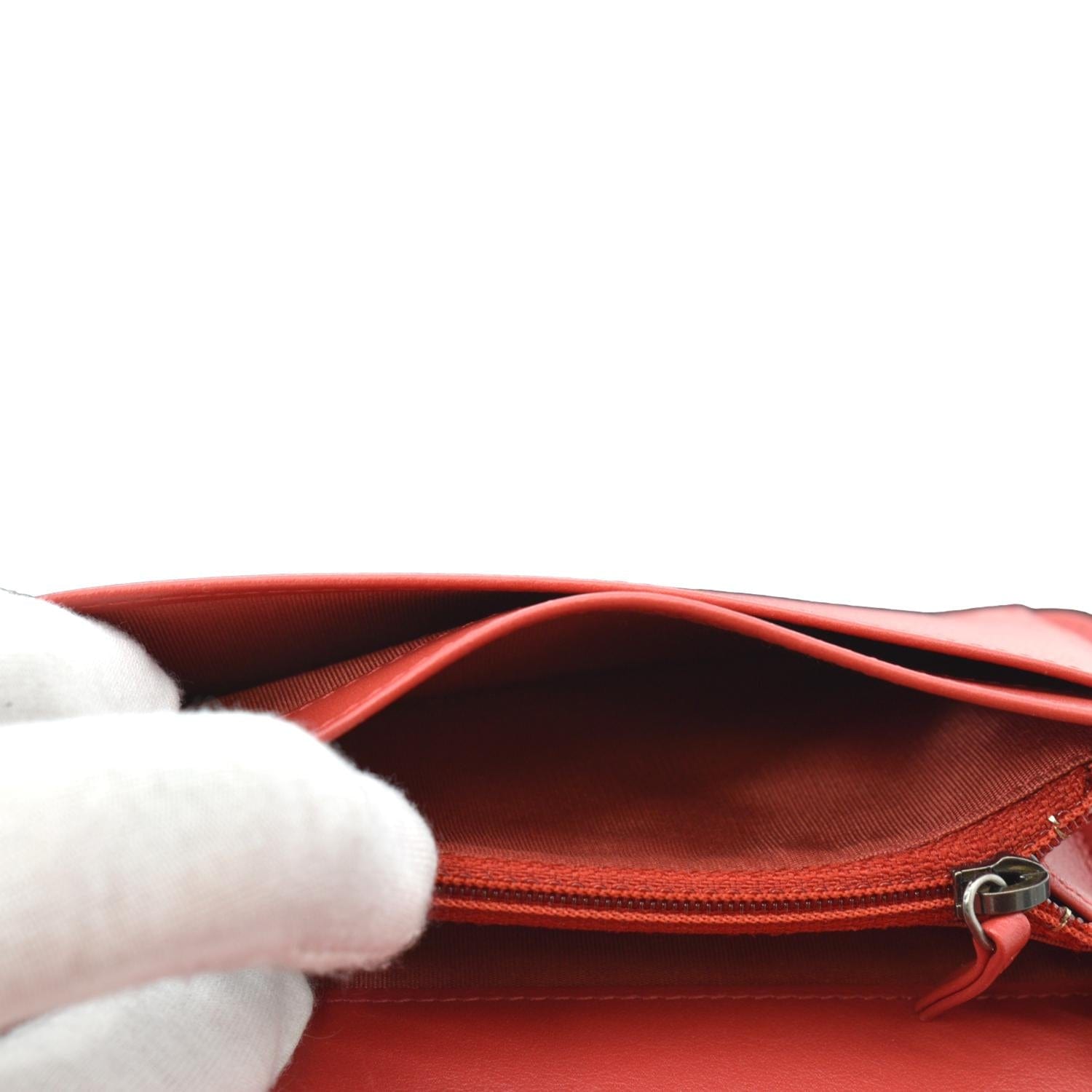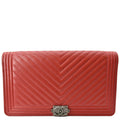 CHANEL Women Long Flap Chevron Leather Wallet Red