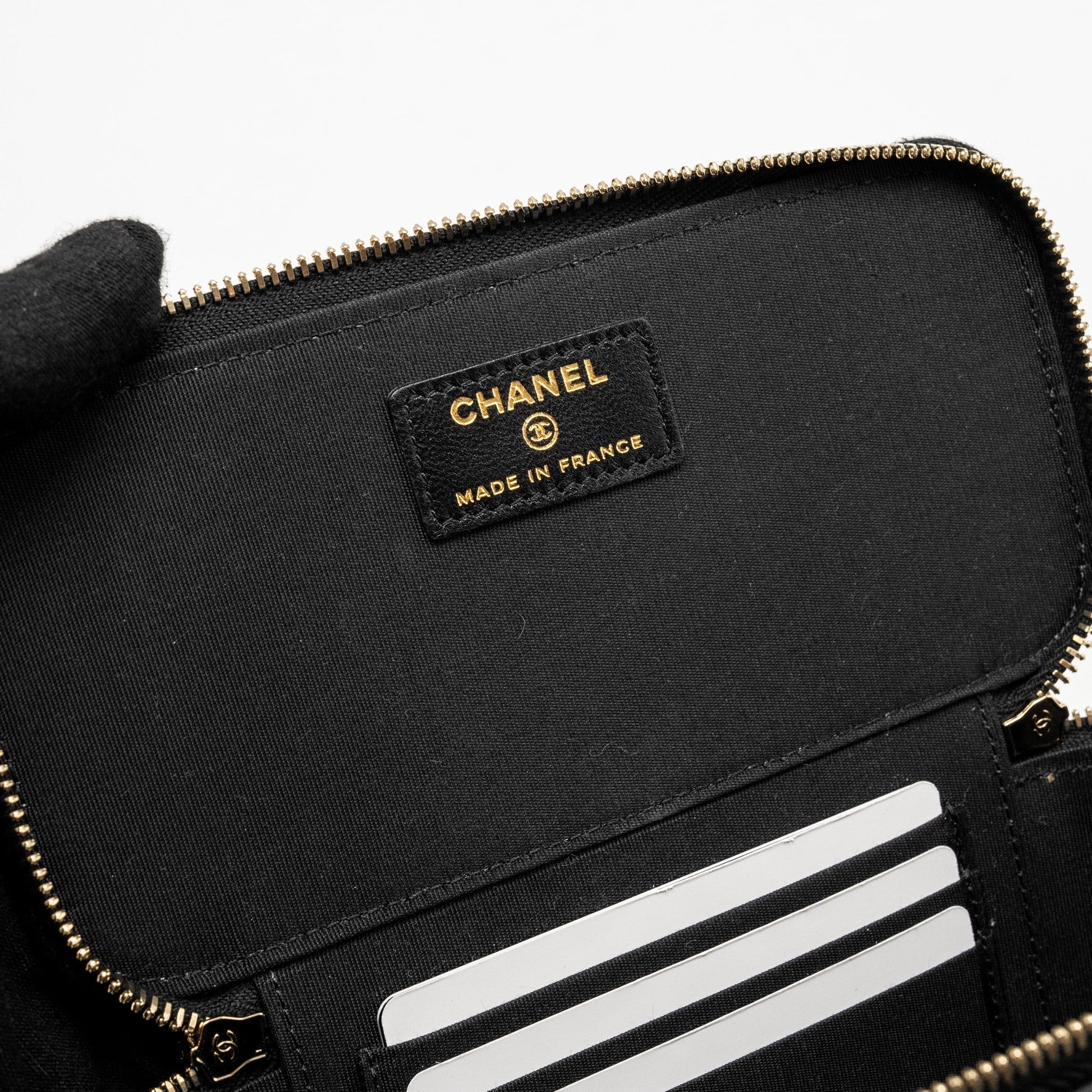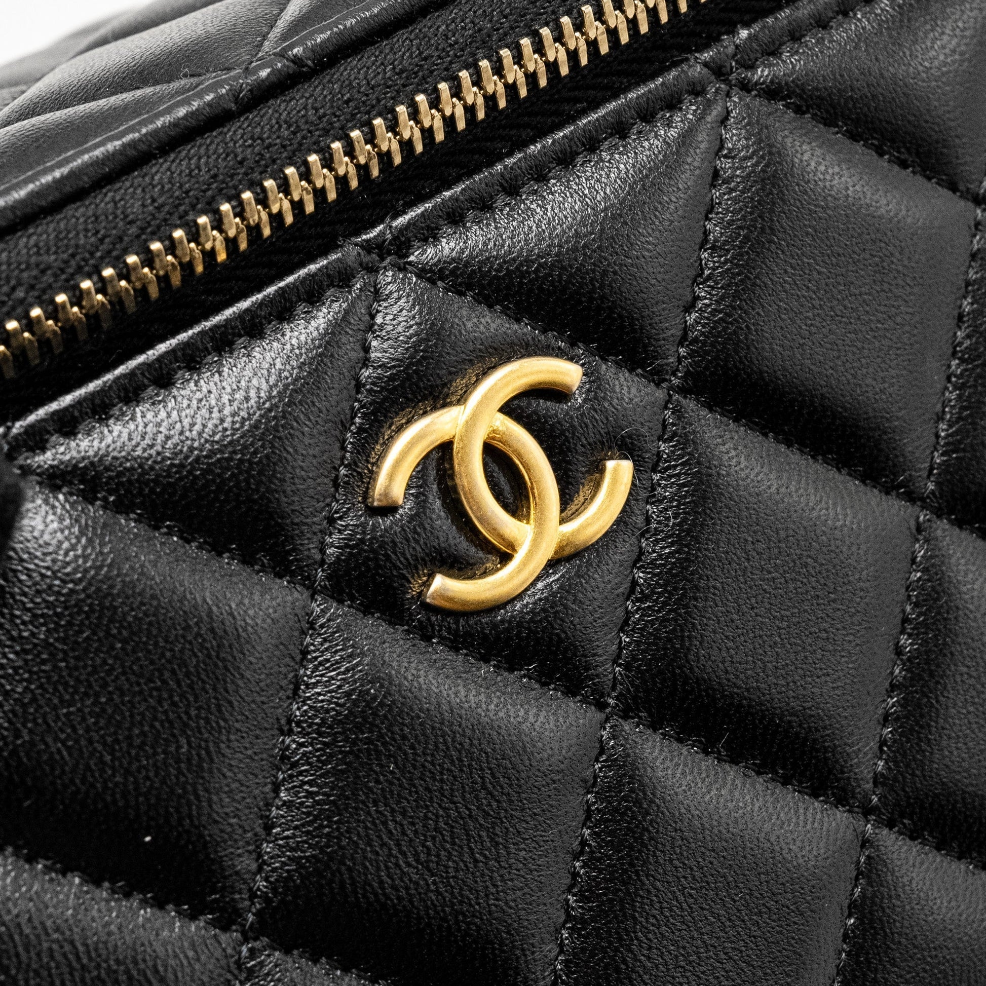 Chanel Top Handle Long Vanity Case Lambskin Black GHW