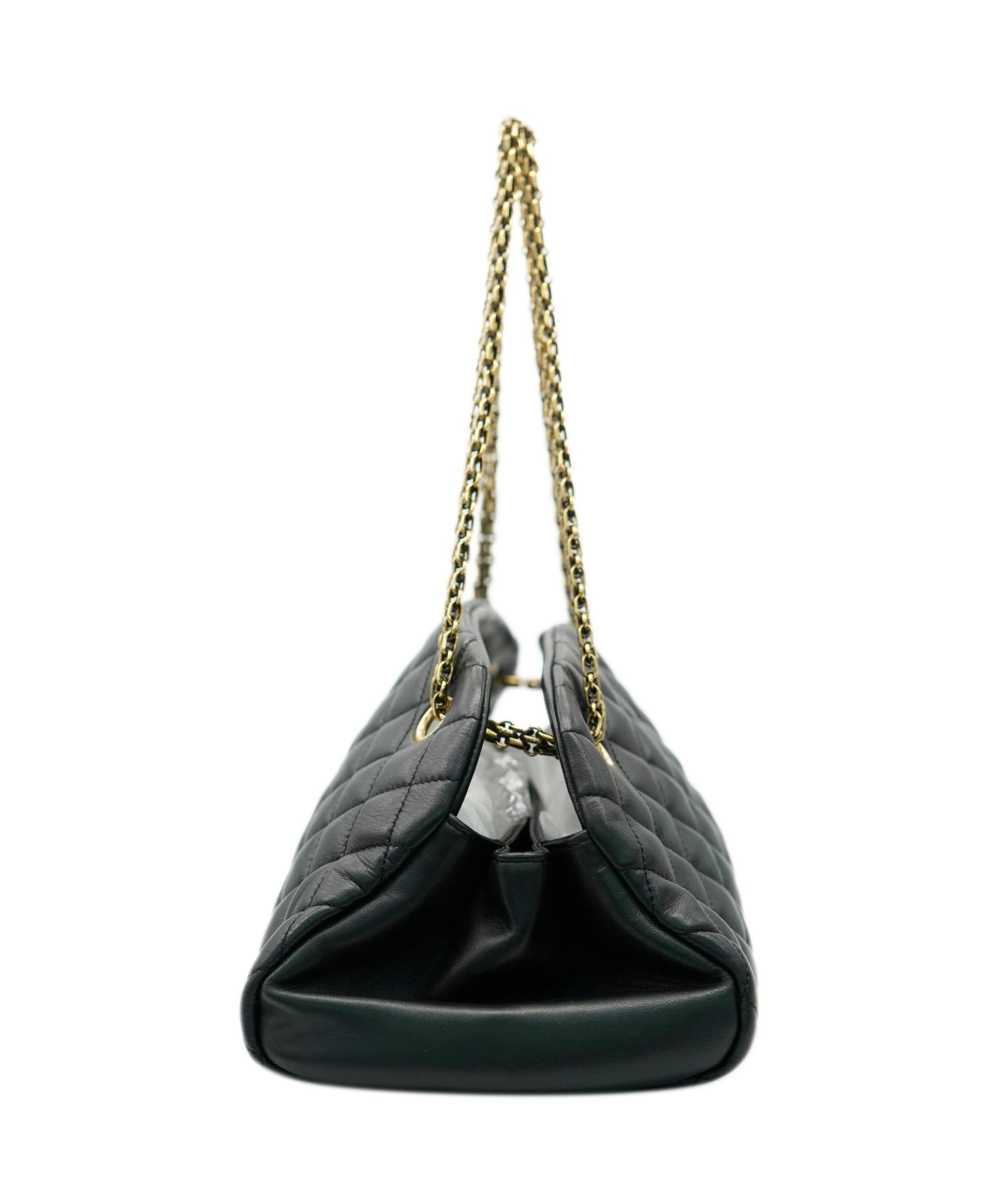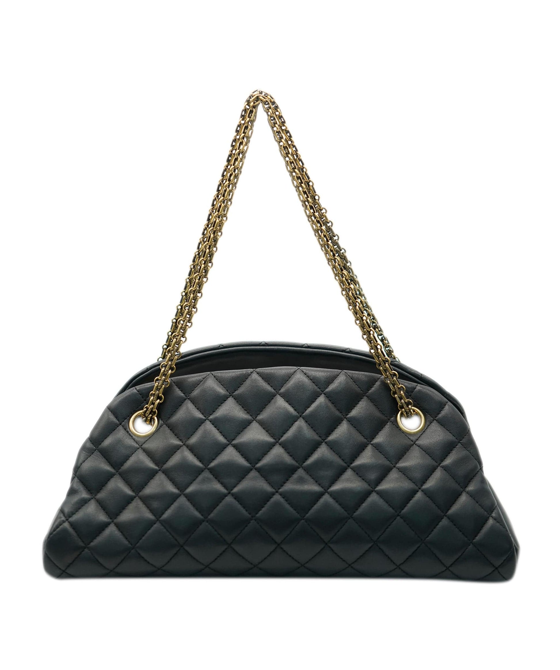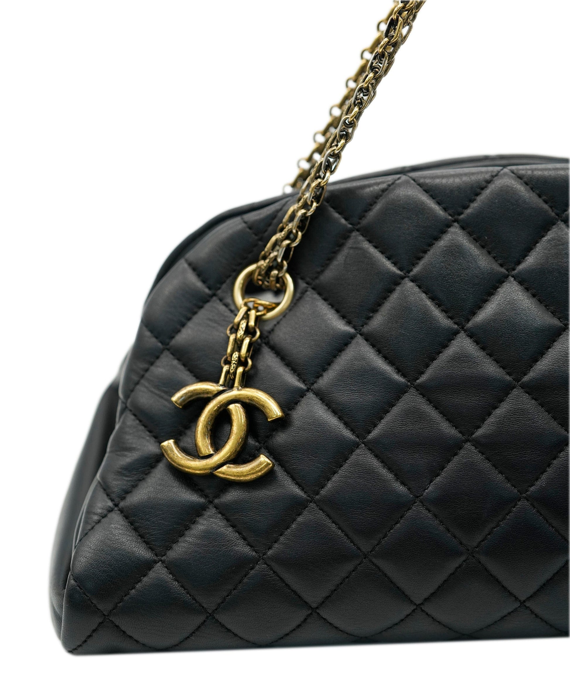 Description: Shop this beautiful rare Chanel Black Lambskin Mademoiselle Bowling Chain Tote. Serial 14164961