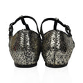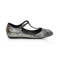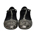 Chanel Mary Jane shoes metallic gun-metal tone python with CC on the toe in metal round studs. Features adjustable ankle strap with buckle.