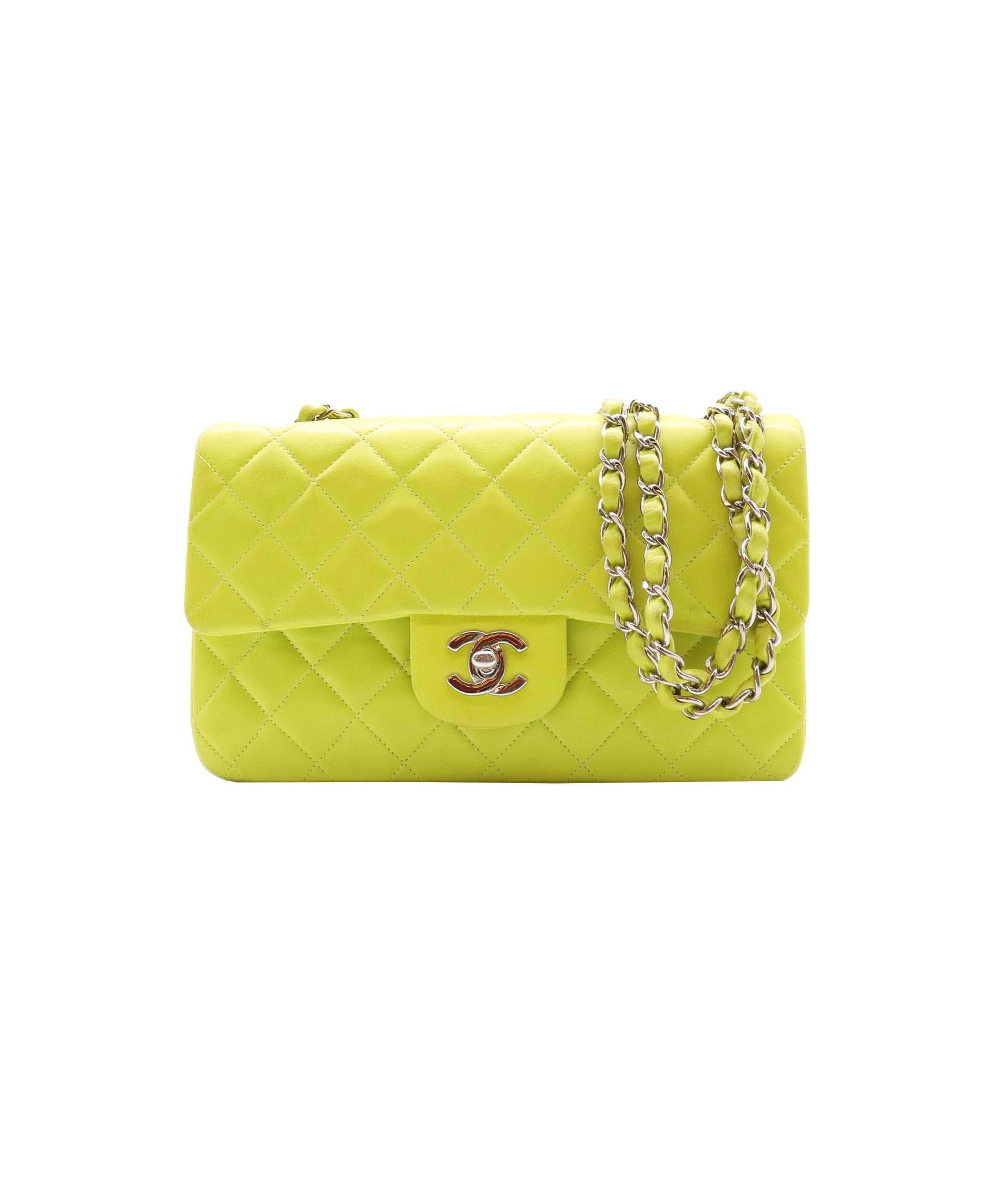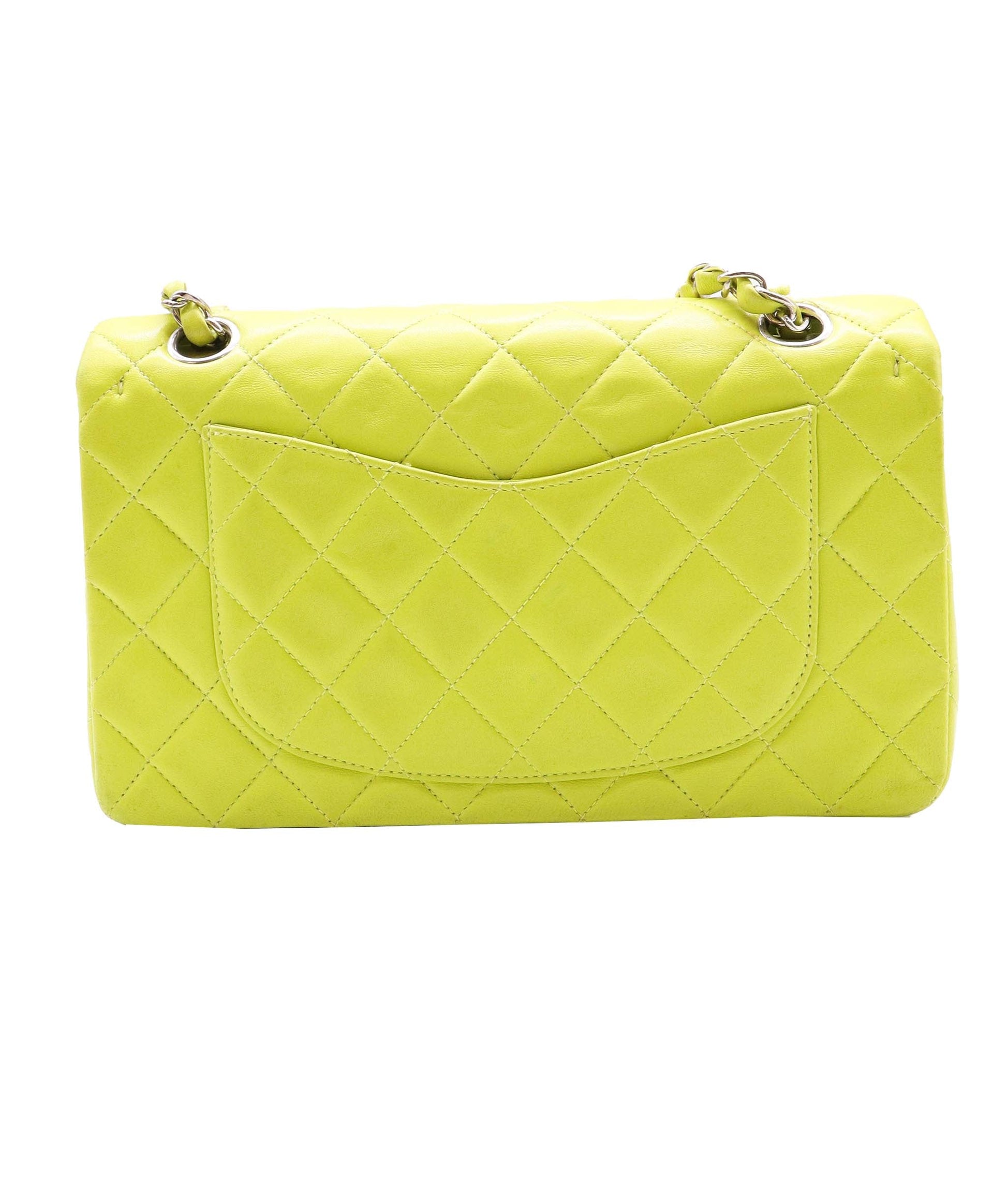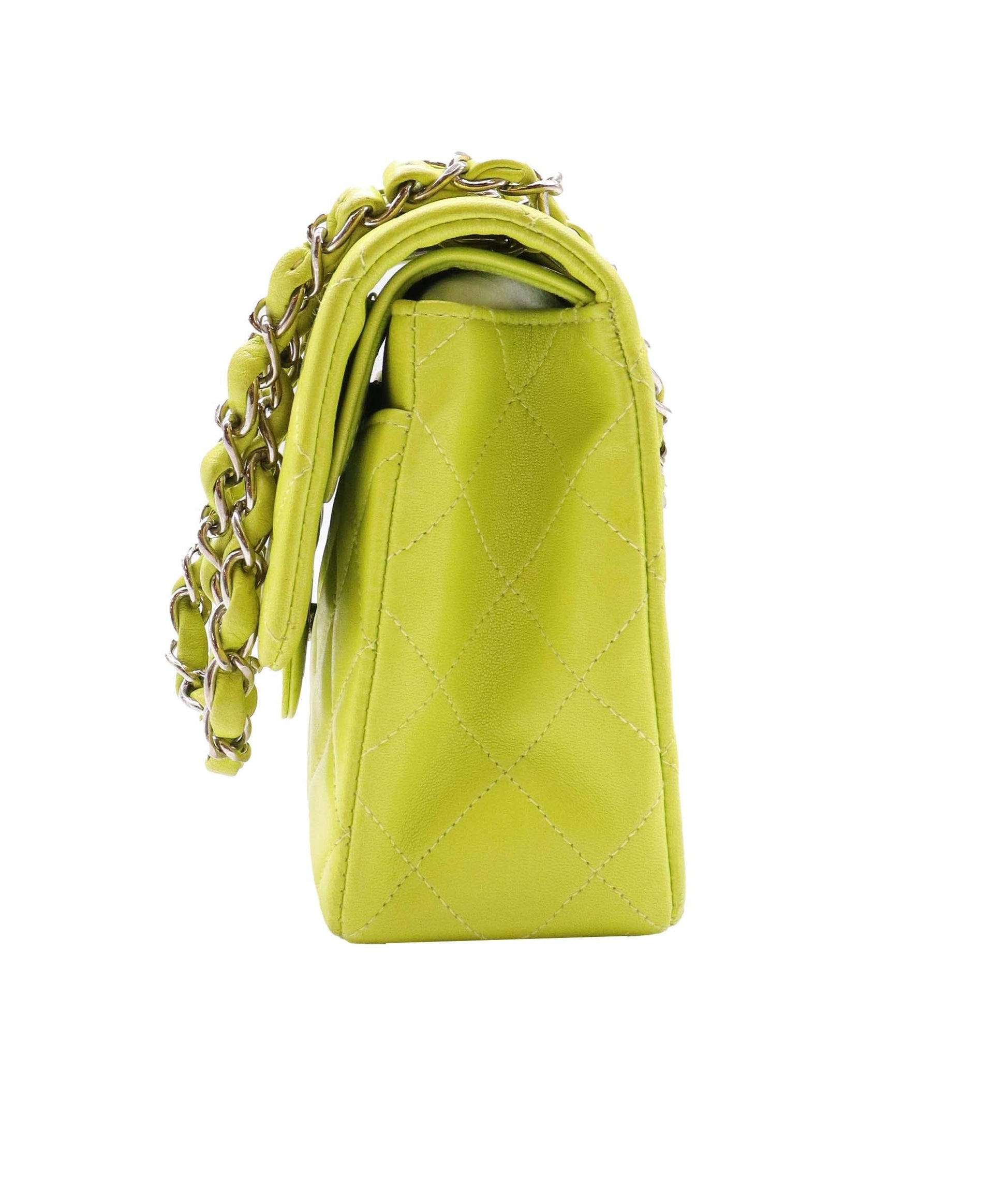 CHANEL lime lambskin classic flap SHW DXBS0586