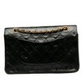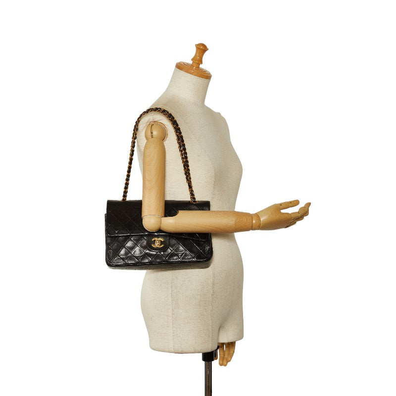 Chanel Matrases 25 Double Flap Chain Shoulder Bag Black Leather Chanel