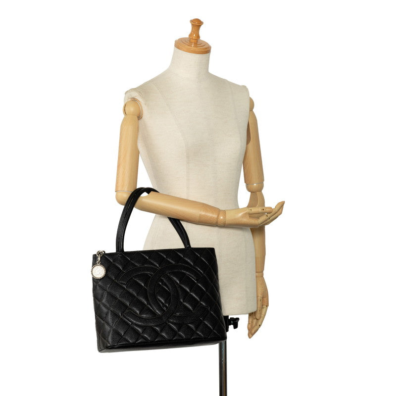 Chanel Matrases Medallion ilver Tooth Bag Shoulder Bag Black Caviar S Leather CHANEL