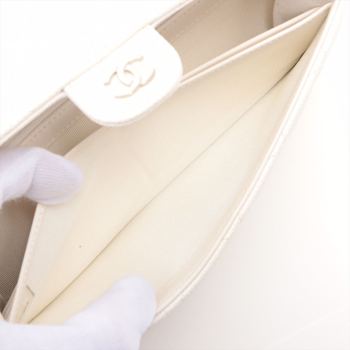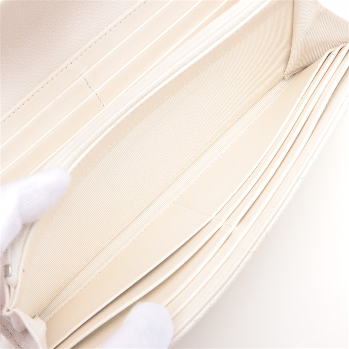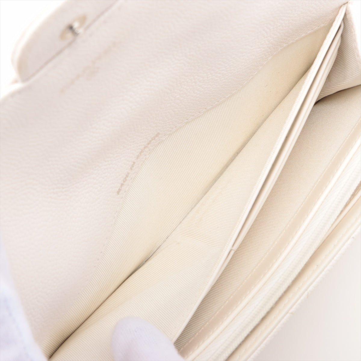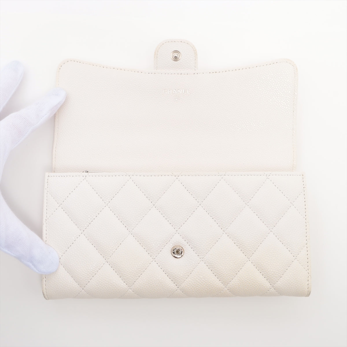 Chanel Matrasse Caviar S Wallet White Silver Gold