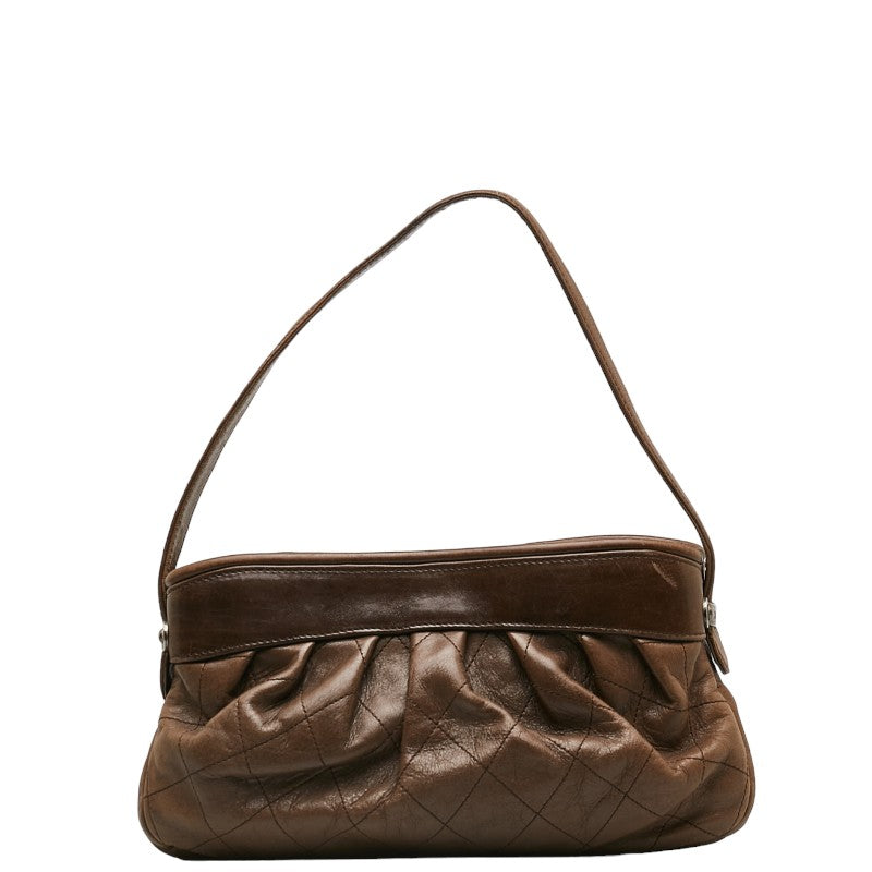 Chanel Matrasse Logo Silver Gold One-Shoulder Bag Brown CHANEL