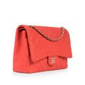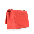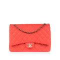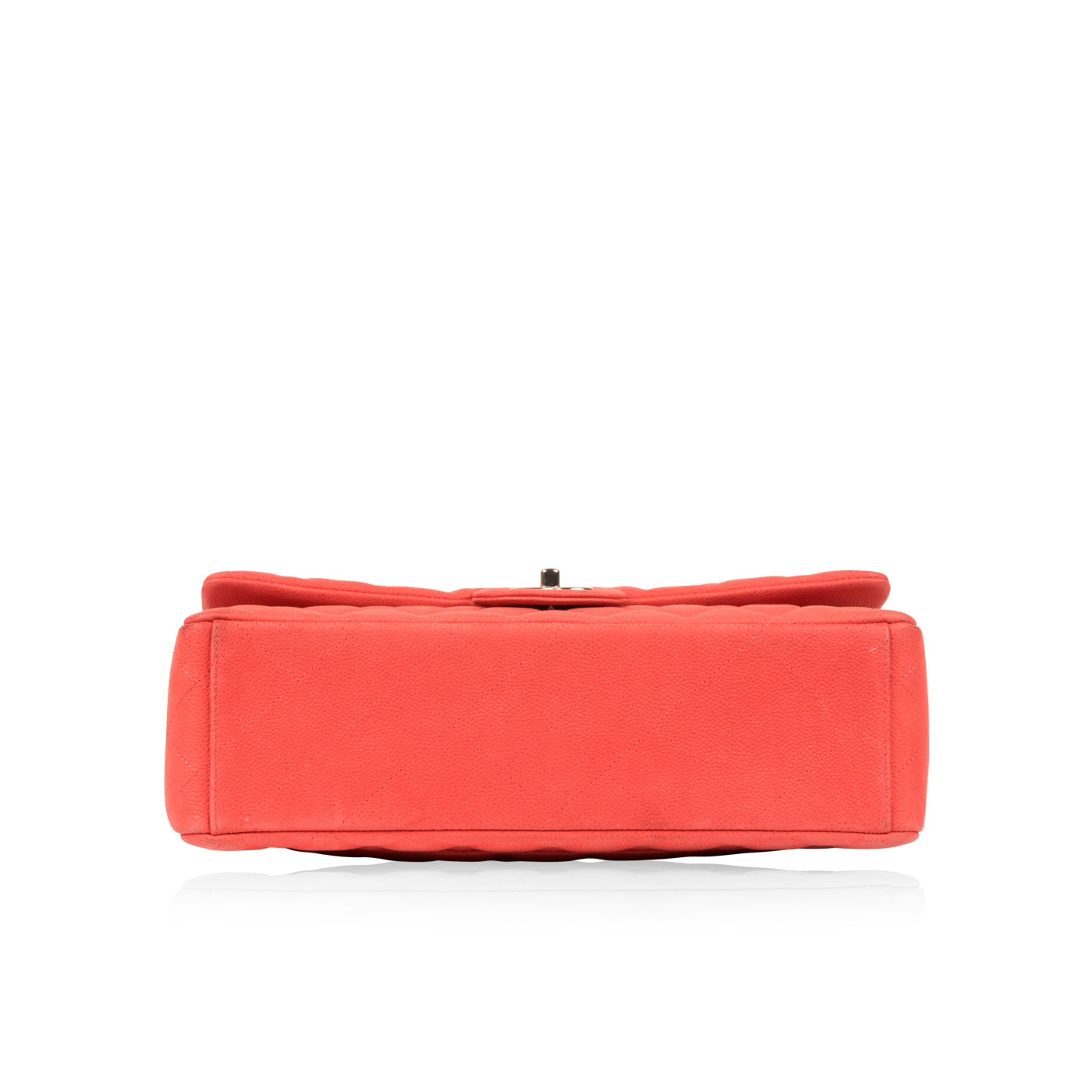 Chanel continues to present its signature line of Classic Flap bags. Under the creative direction of Karl Lagerfeld, the this bag is perhaps the most acclaimed accessories in all of fashion history. Timeless, elegant and sophisticated, it's no wonder the Classic Flap is, well, a classic. Featuring its infamous quilted leather and interwoven chain / leather strap, the Maxi is an absolute must-have in any luxury handbag collection. This particular Maxi Classic Flap is especially stunning due to the fact that its a rare, limited edition piece. With its matte-caviar coral leather and silver-tone hardware, this highly coveted bag is the perfect compliment to any neutral-toned or monochromatic look in your wardrobe. The ideal companion in the summertime, the Classic Flap is a well-worthy investment due to the fact that they rarely cease to lose their value. Embodying elegance and traditional femininity to a T, a Chanel bag is a purchase you won't ever regret.