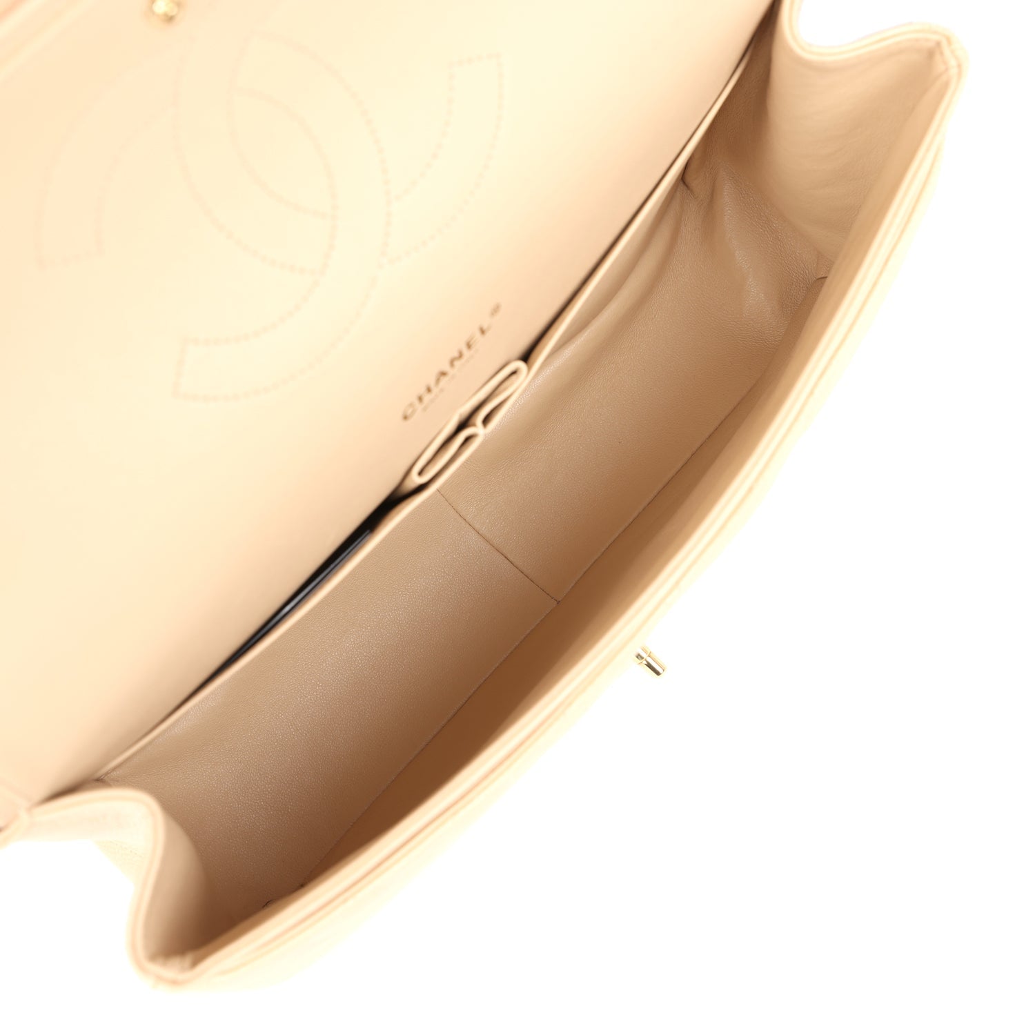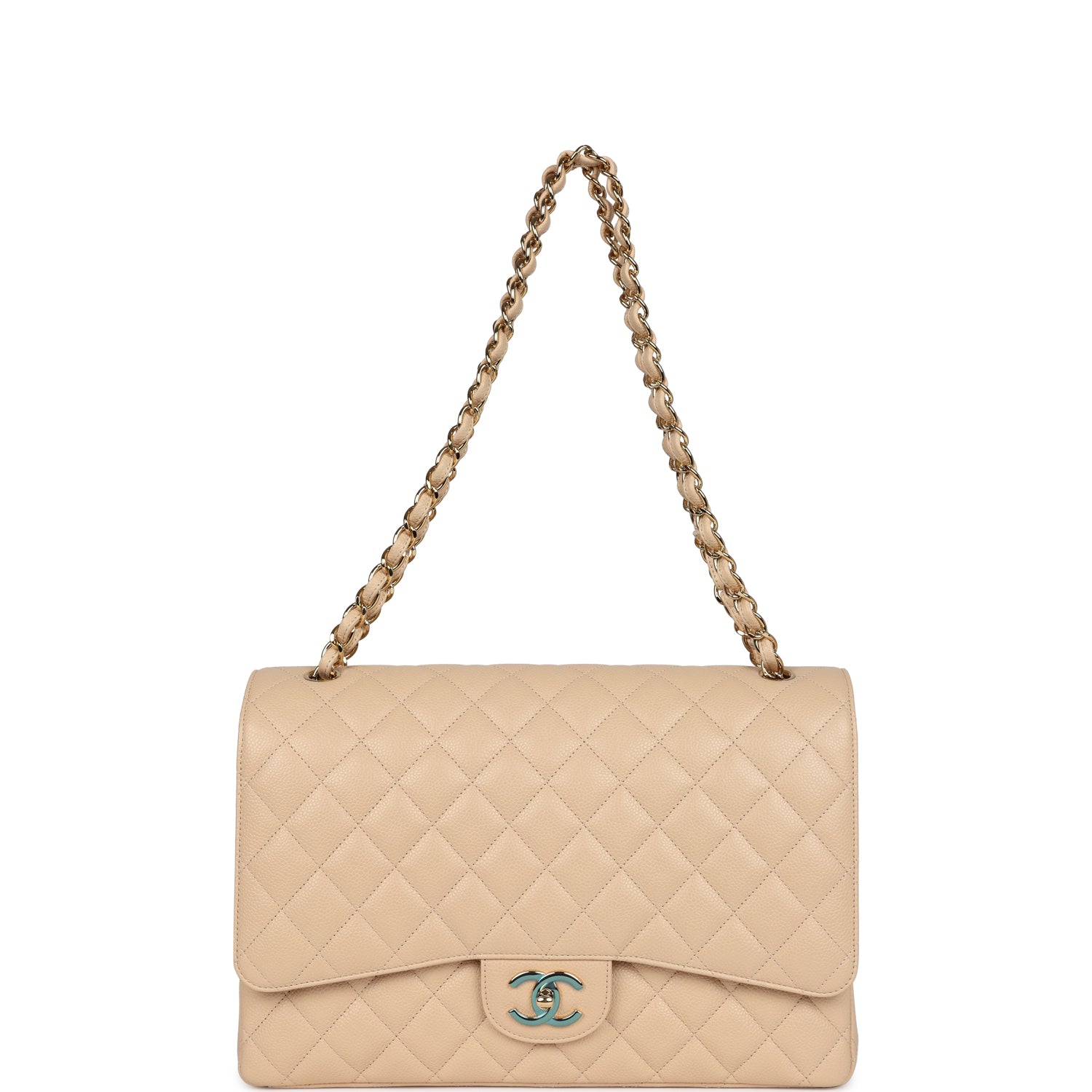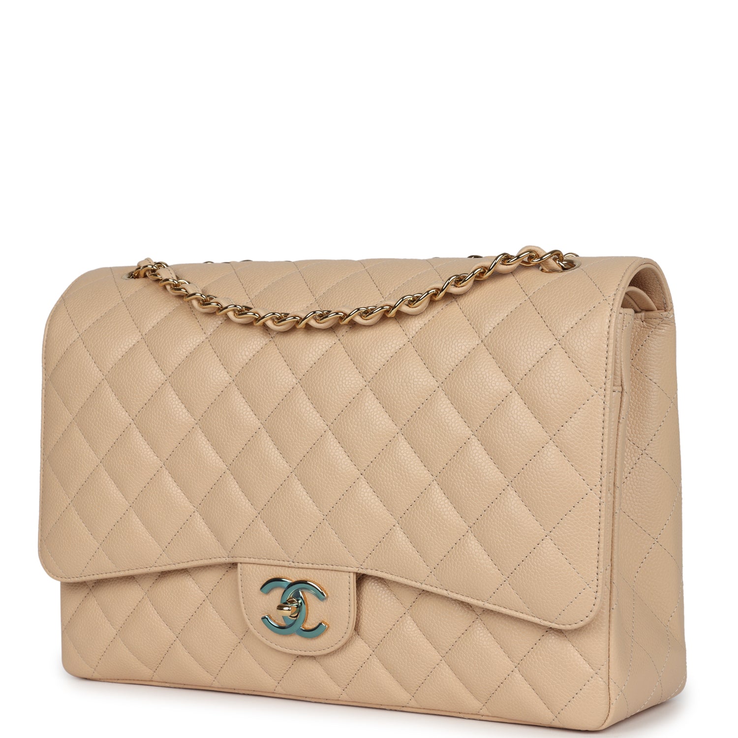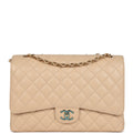Chanel Maxi Classic Double Flap Bag Beige Caviar Gold Hardware