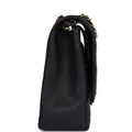 This Maxi Classic Flap bag is in black quilted caviar leather with gold hardware and features a front flap with signature CC turnlock closure, half moon back pocket, and adjustable interwoven gold tone chain link and black leather shoulder strap.