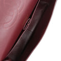 The interior is lined in burgundy leather with a "love letter" zipper compartment under the first flap, an "outer" slit pocket under the second flap, and an interior compartment with two open pockets separated by a "lipstick" compartment.