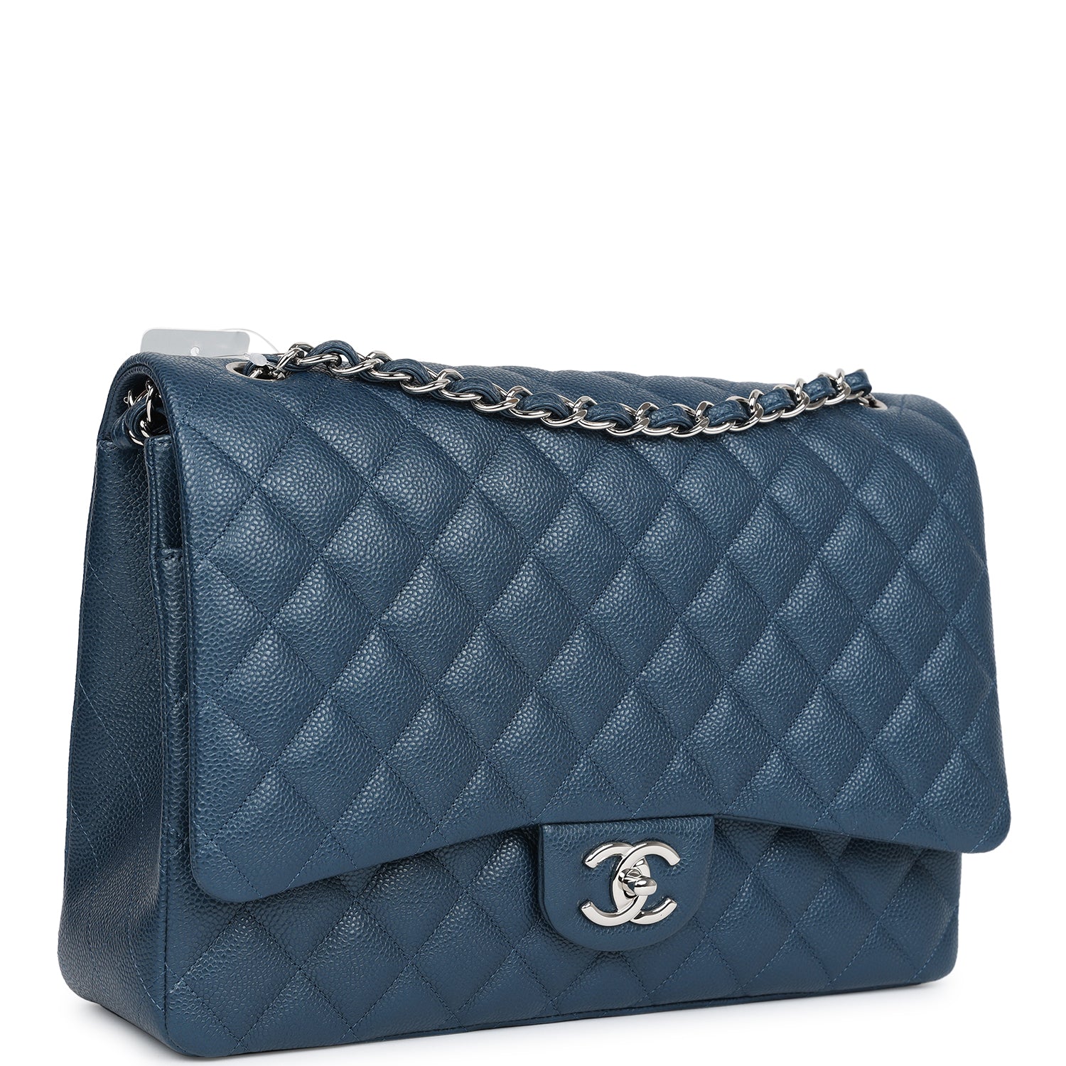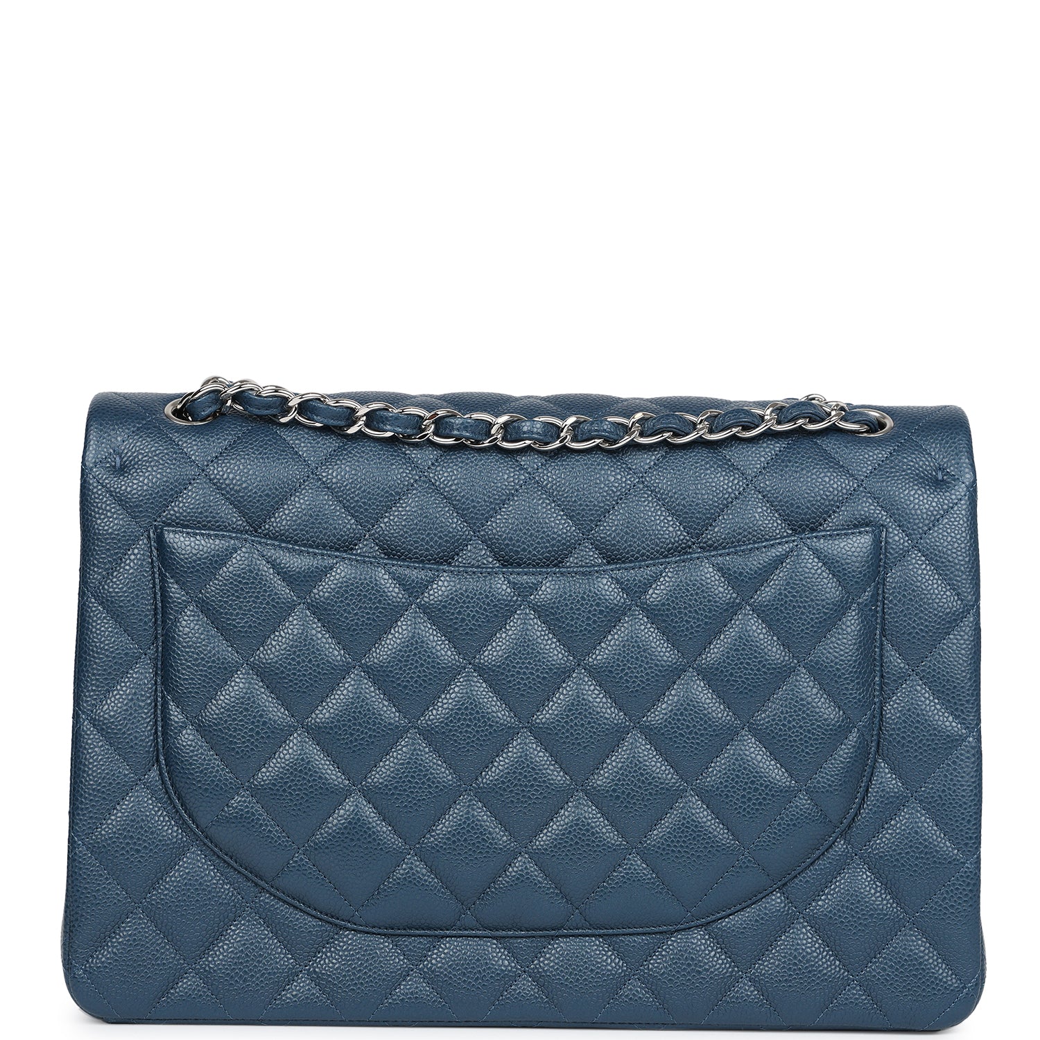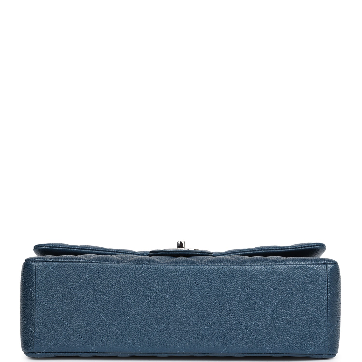Chanel Maxi Classic Double Flap Bag Dark Blue Caviar Silver Hardware