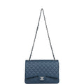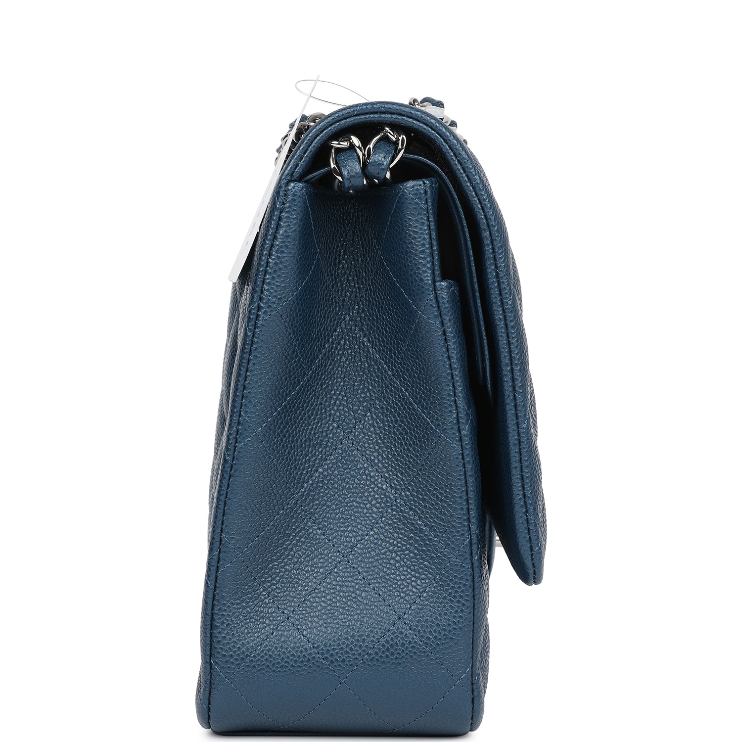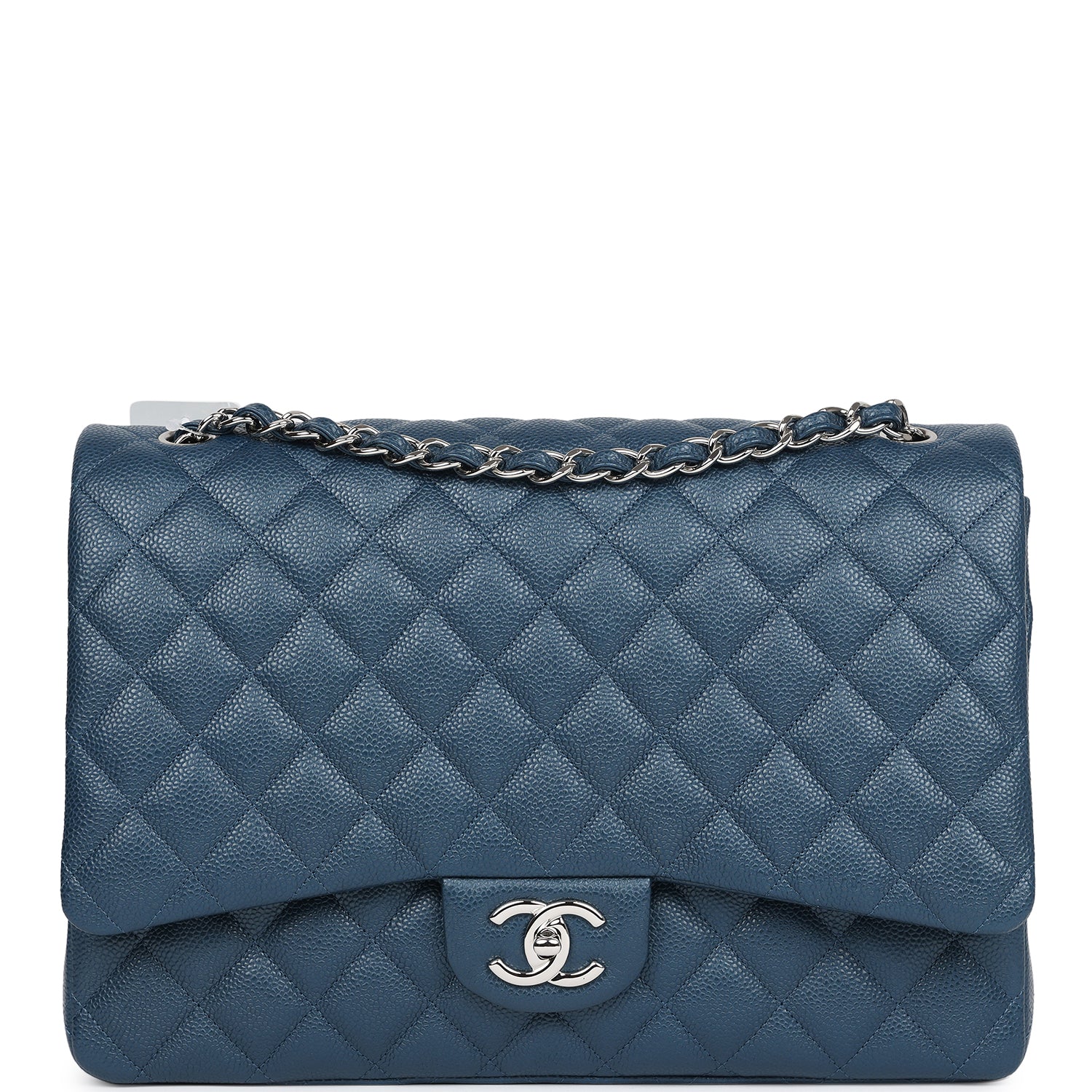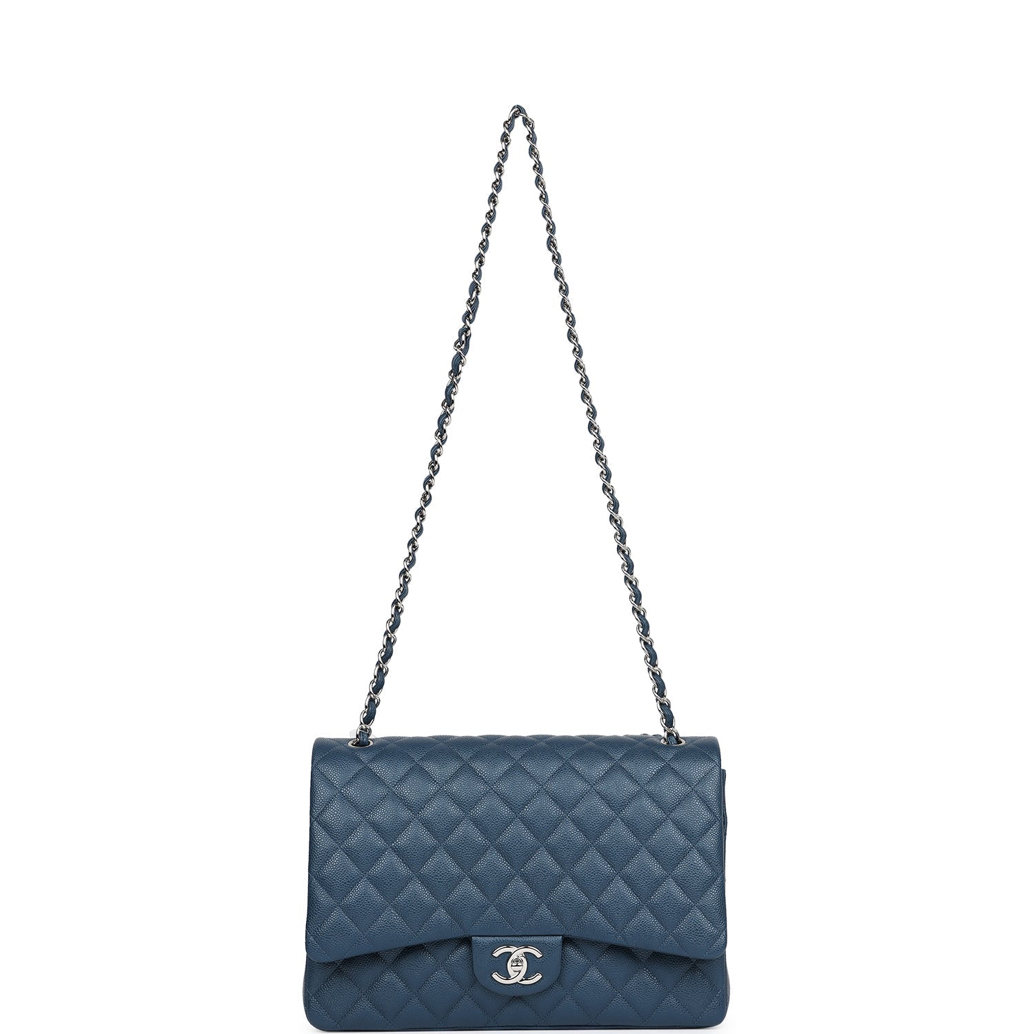 Chanel Maxi Classic Double Flap Bag Dark Blue Caviar Silver Hardware