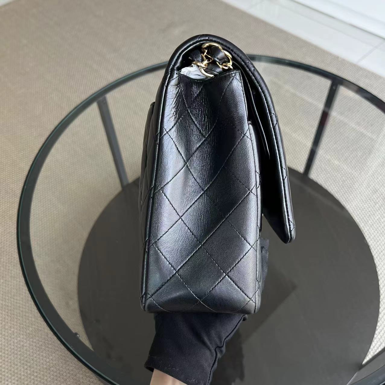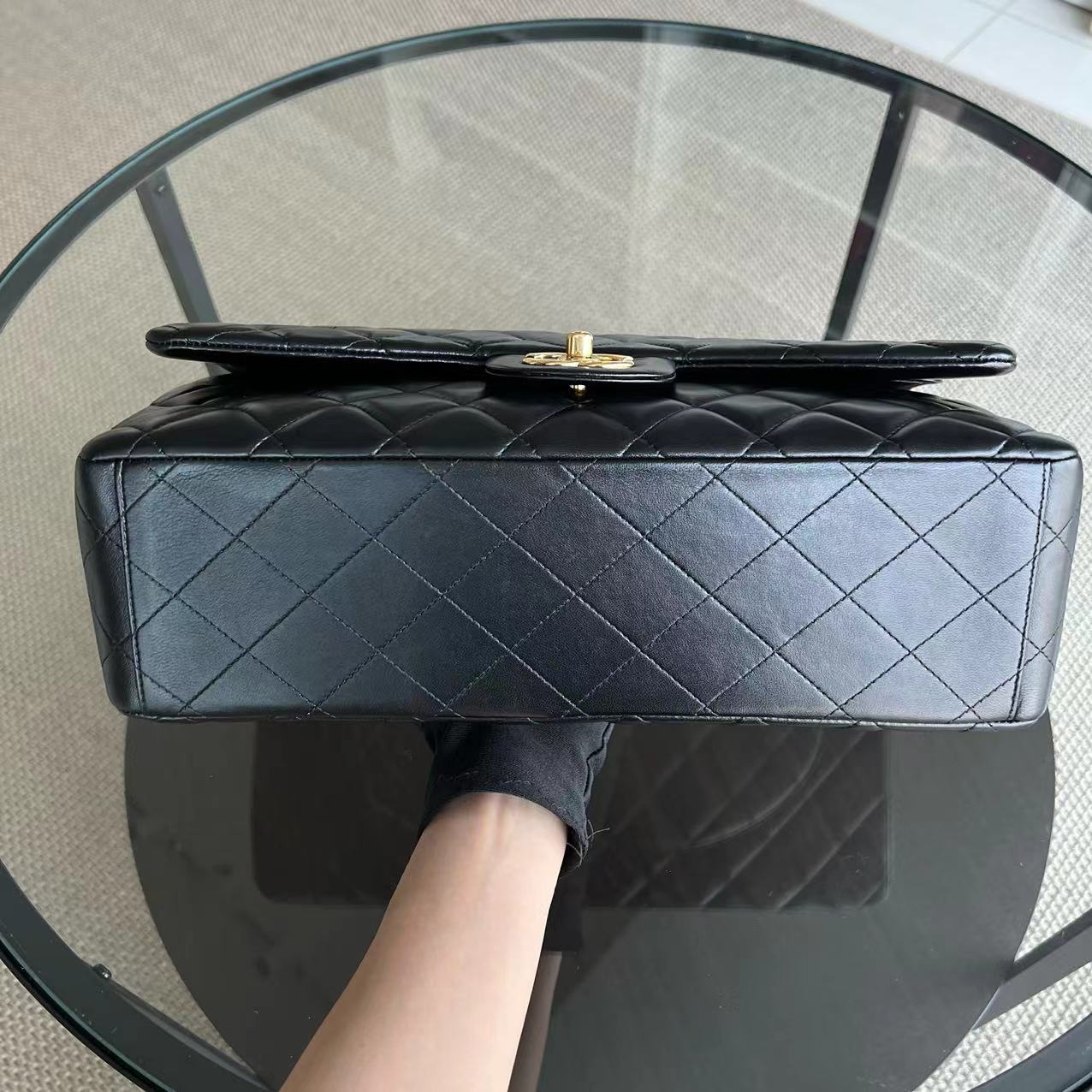 Maxi Classic Flap Double Flap Quilted Lambskin Black Golden Hardware Series 14