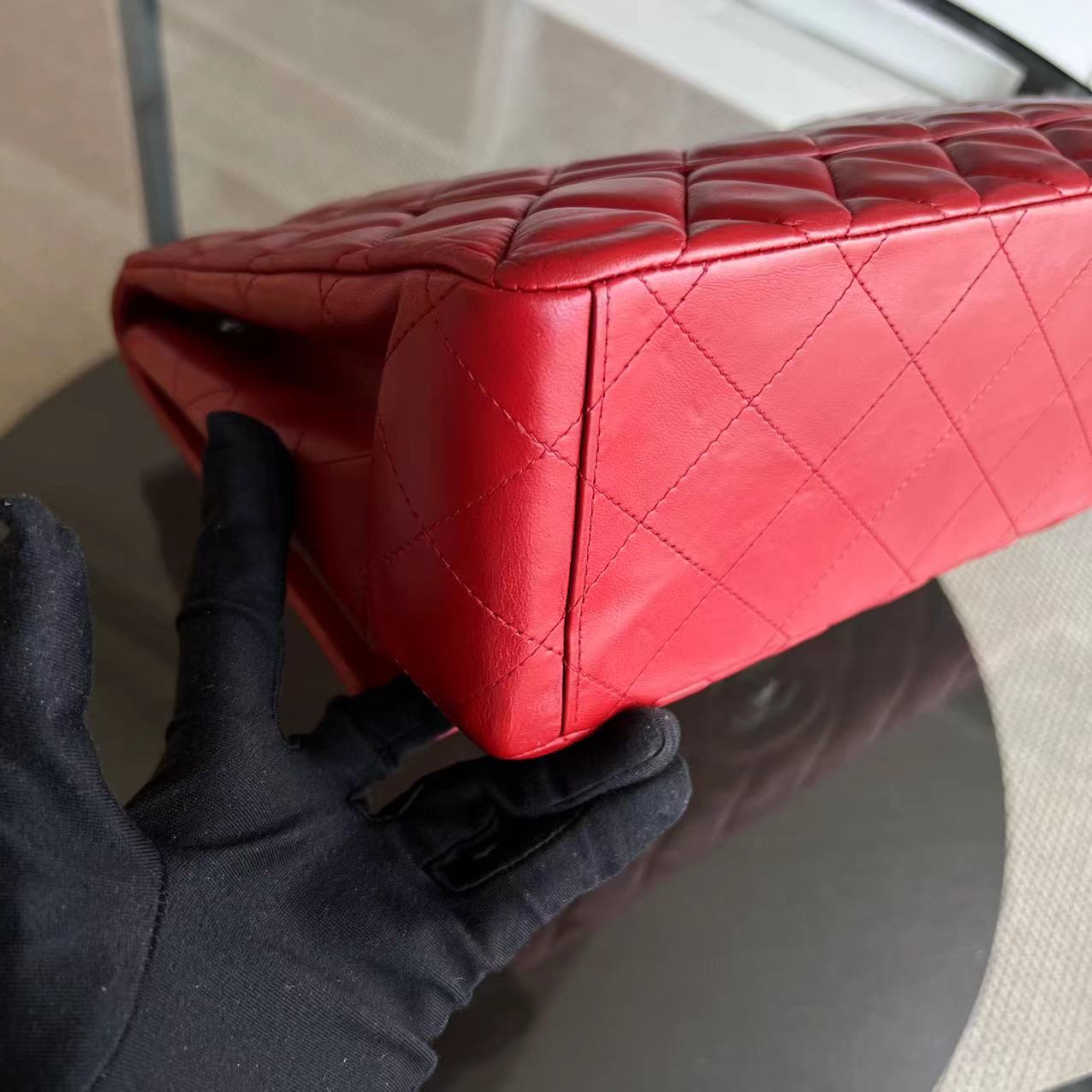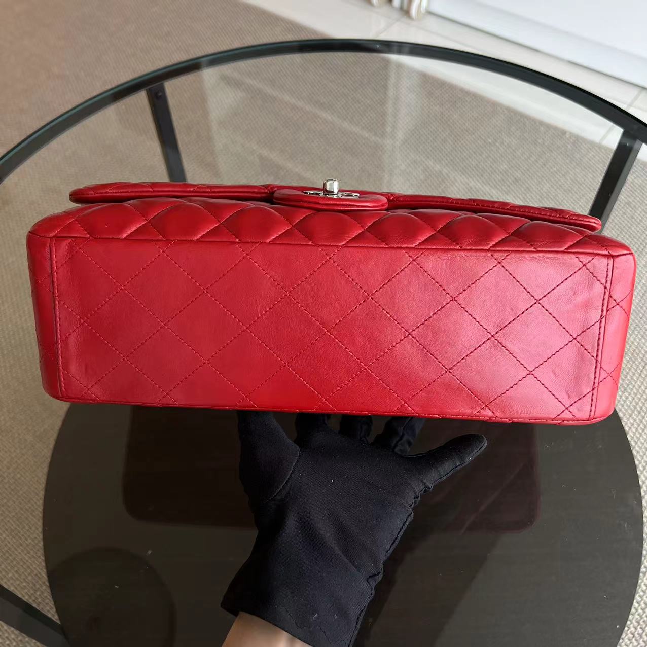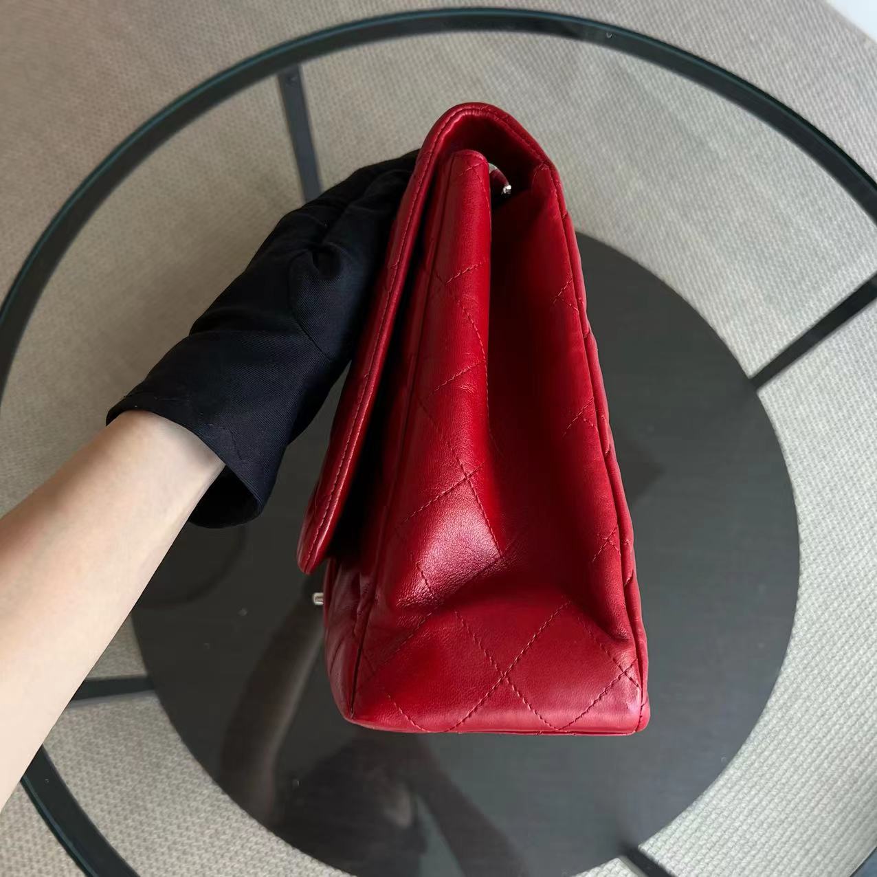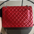 Maxi Classic Flap Quilted Lambskin Red Silver Hardware Series 13