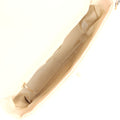 The interior is lined in beige grossgrain fabric and has one zippered pocket on back wall with brushed gold zipper pull.