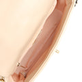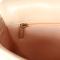 The interior is lined in Light Pink/Beige grossgrain fabric and has one zippered pocket on back wall with a Brushed Gold zipper pull.