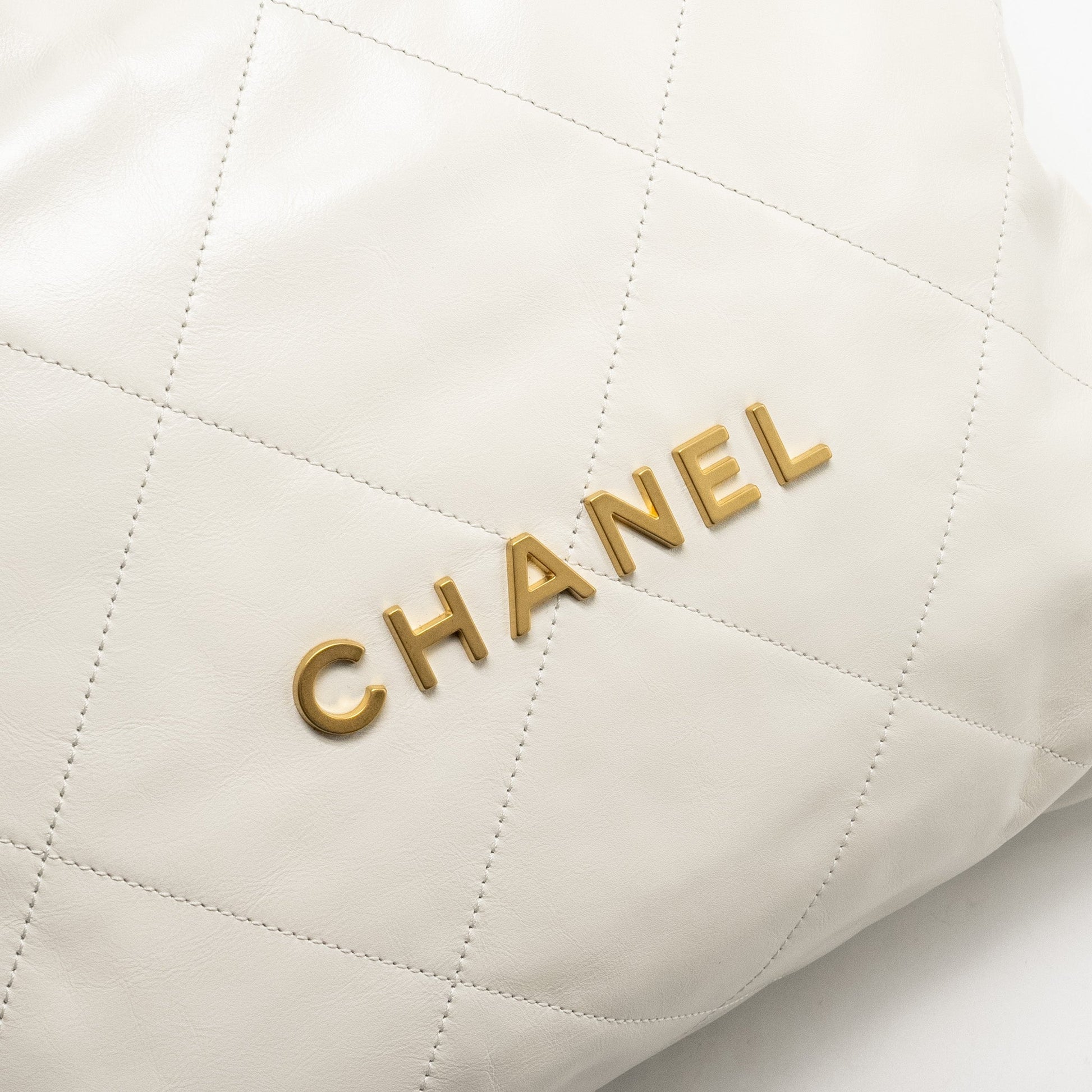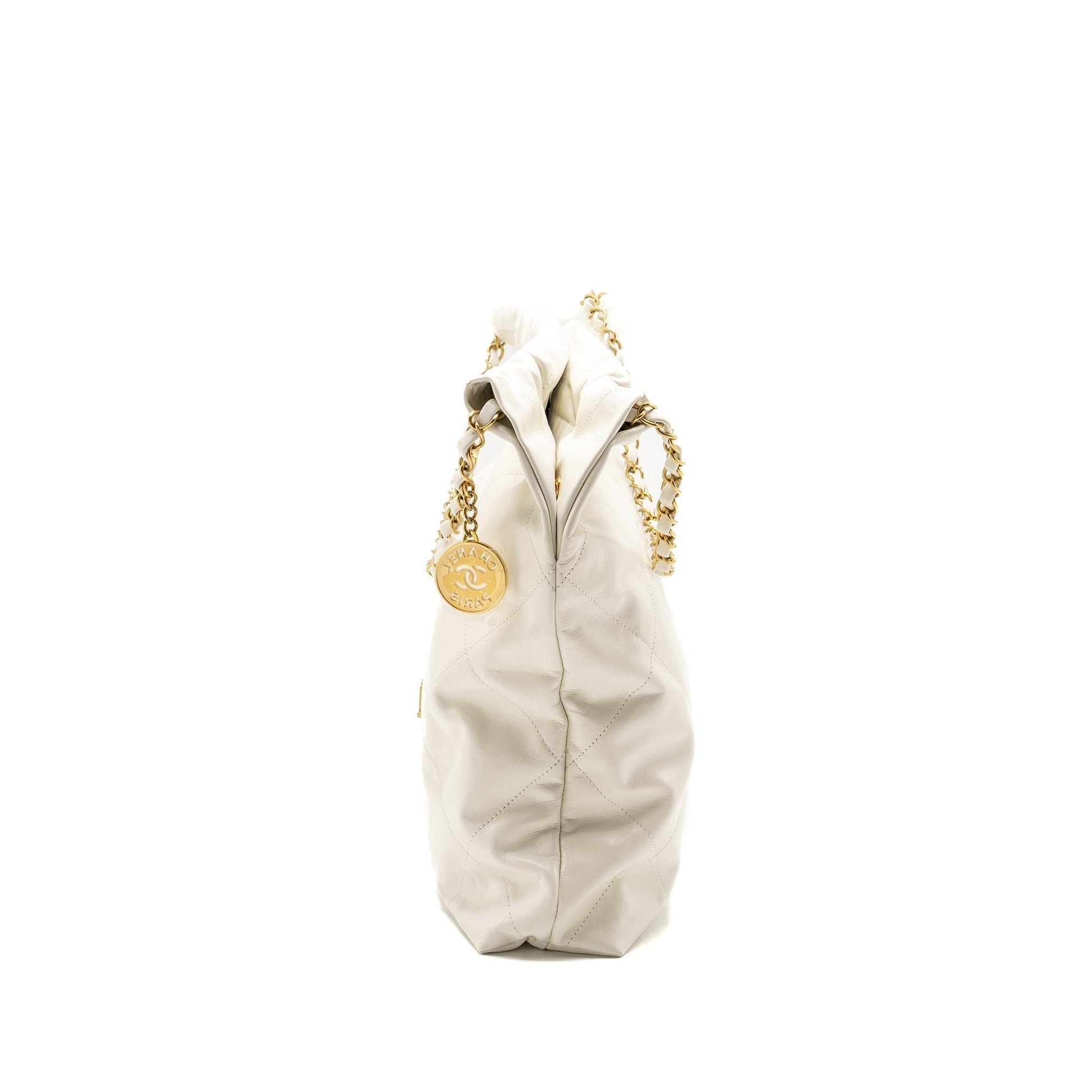 Chanel Medium 22 Bag Calfskin White GHW (Microchip)