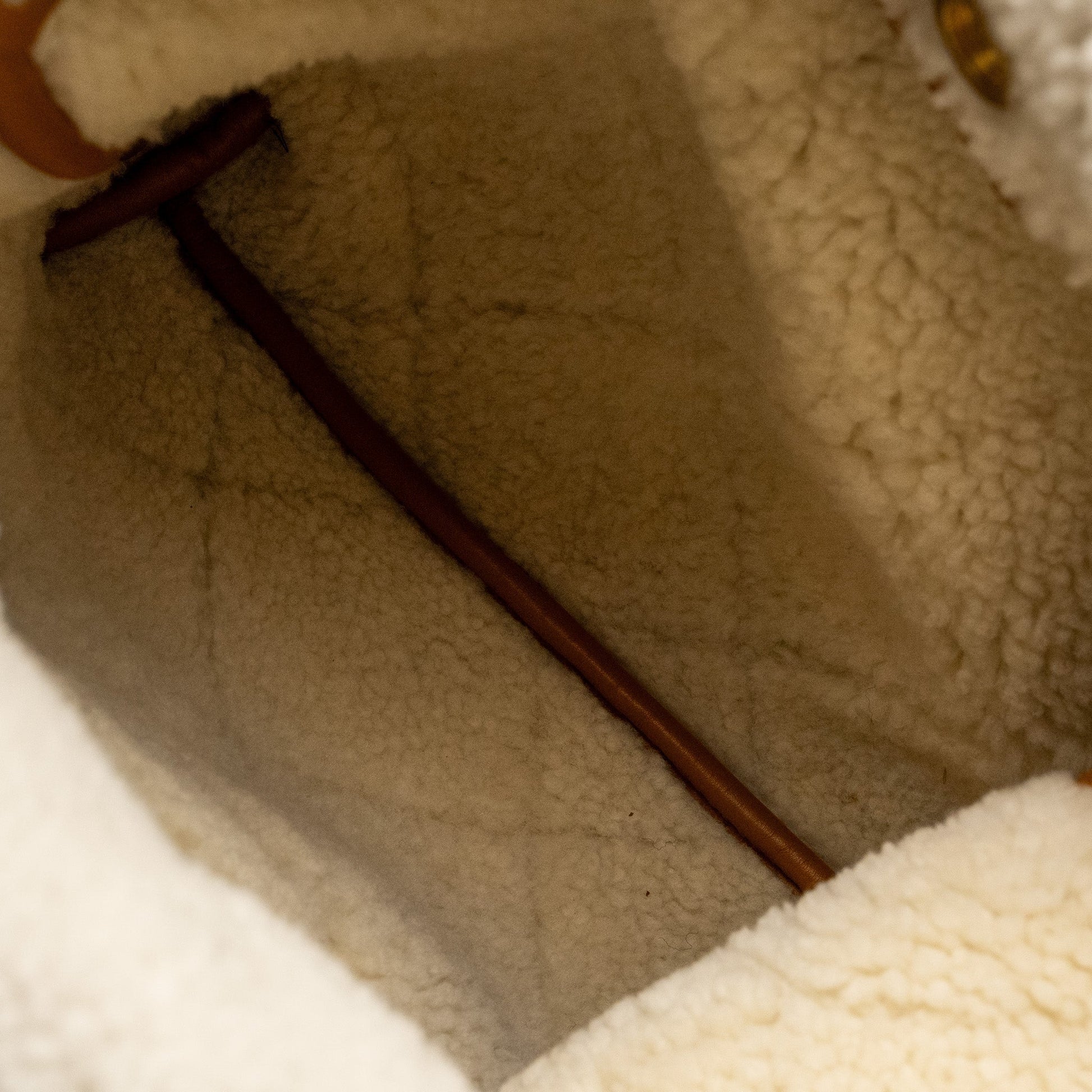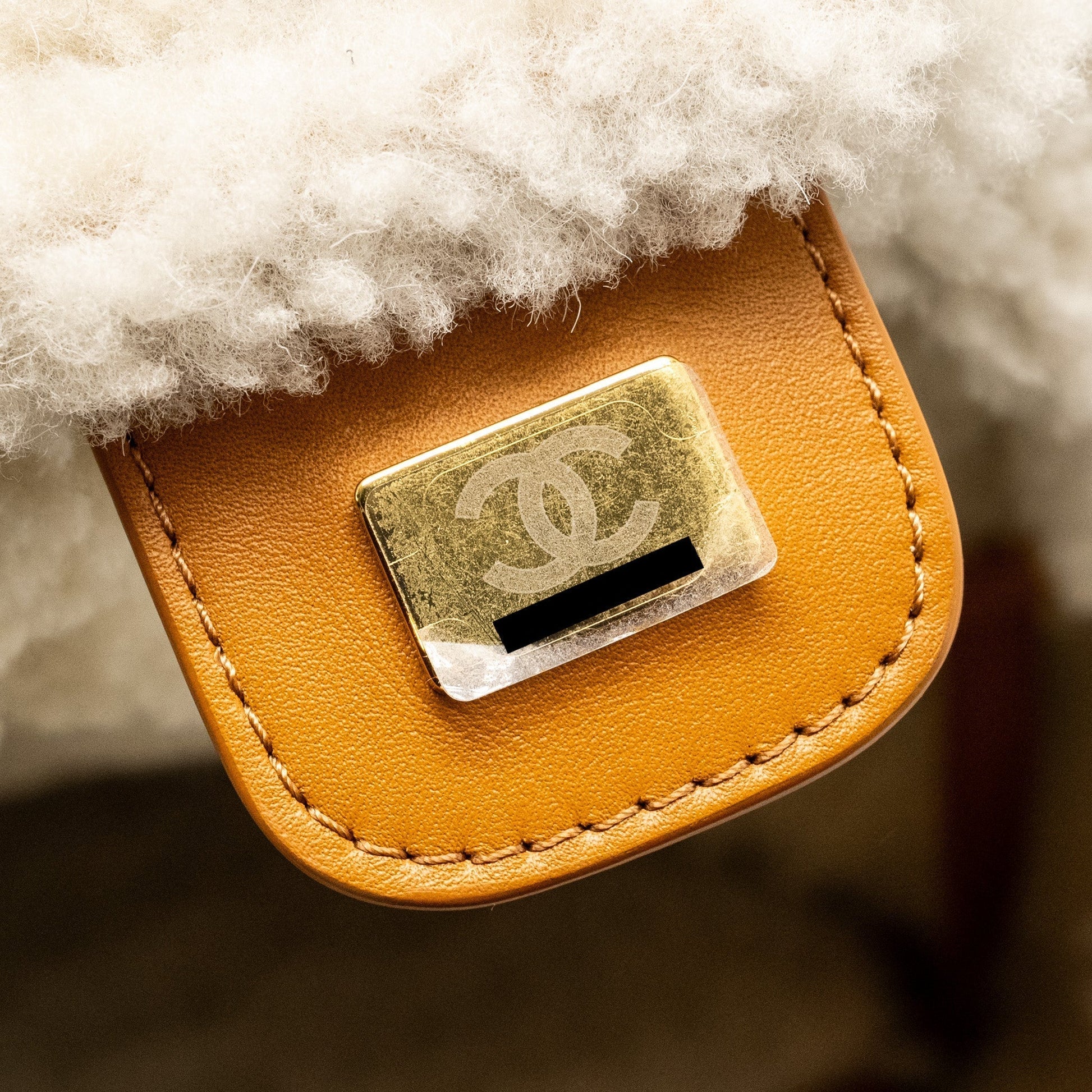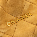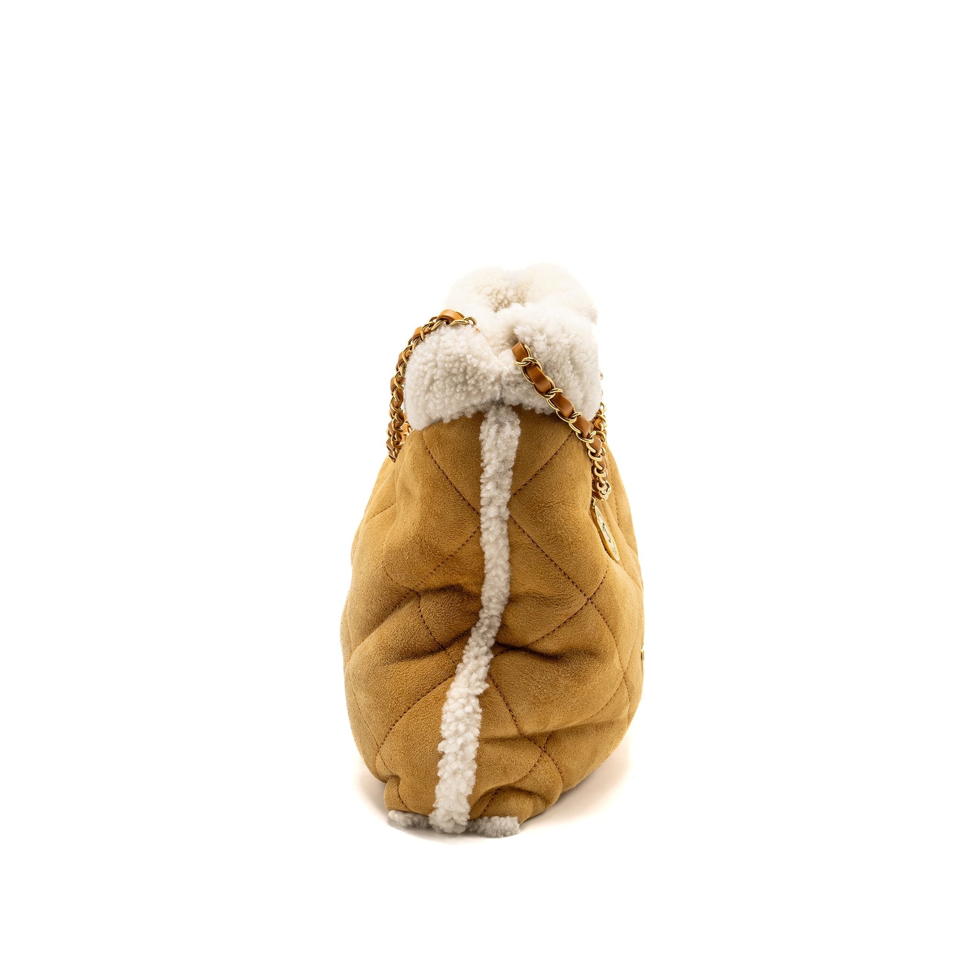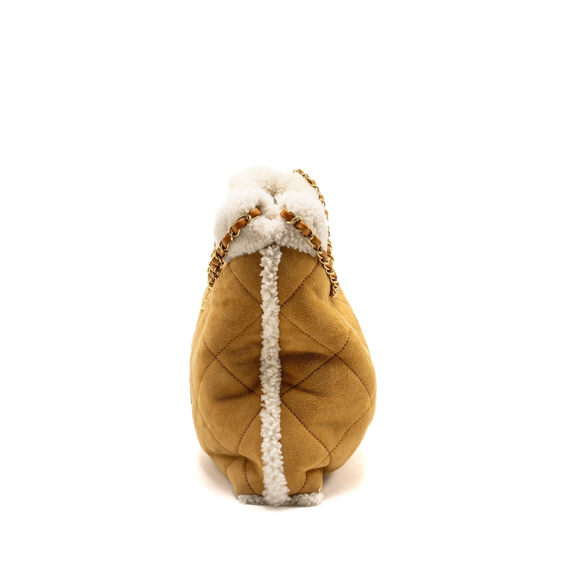 Chanel Medium 22 bag Quilted Shearling Suede Camel GHW (microchip)