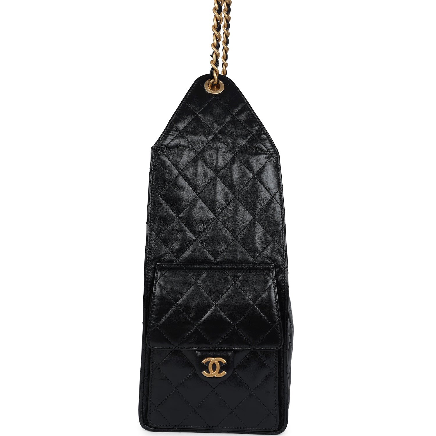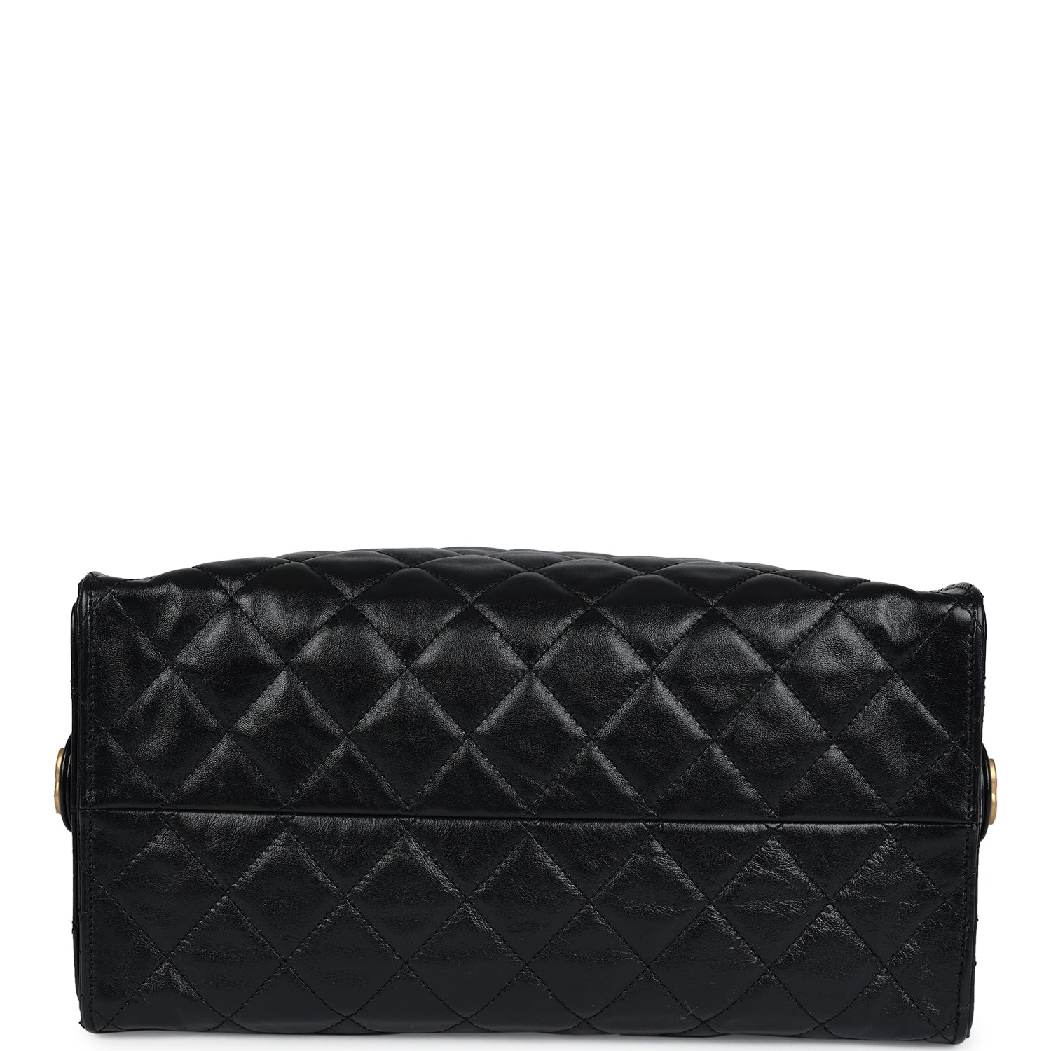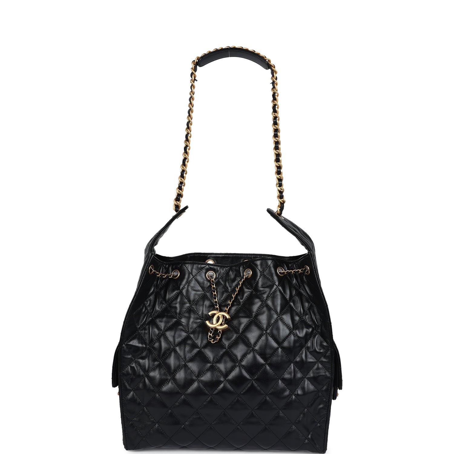 Chanel Medium 25 Hobo Bag Black Shiny Lambskin Antique Gold Hardware