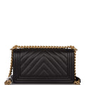 Chanel Medium Boy Bag Black Chevron Caviar Antique Gold Hardware