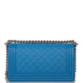 Chanel Medium Boy Bag Blue Calfskin Silver Hardware