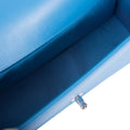 The interior is lined in blue fabric with an open pocket on rear wall.