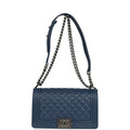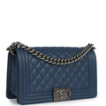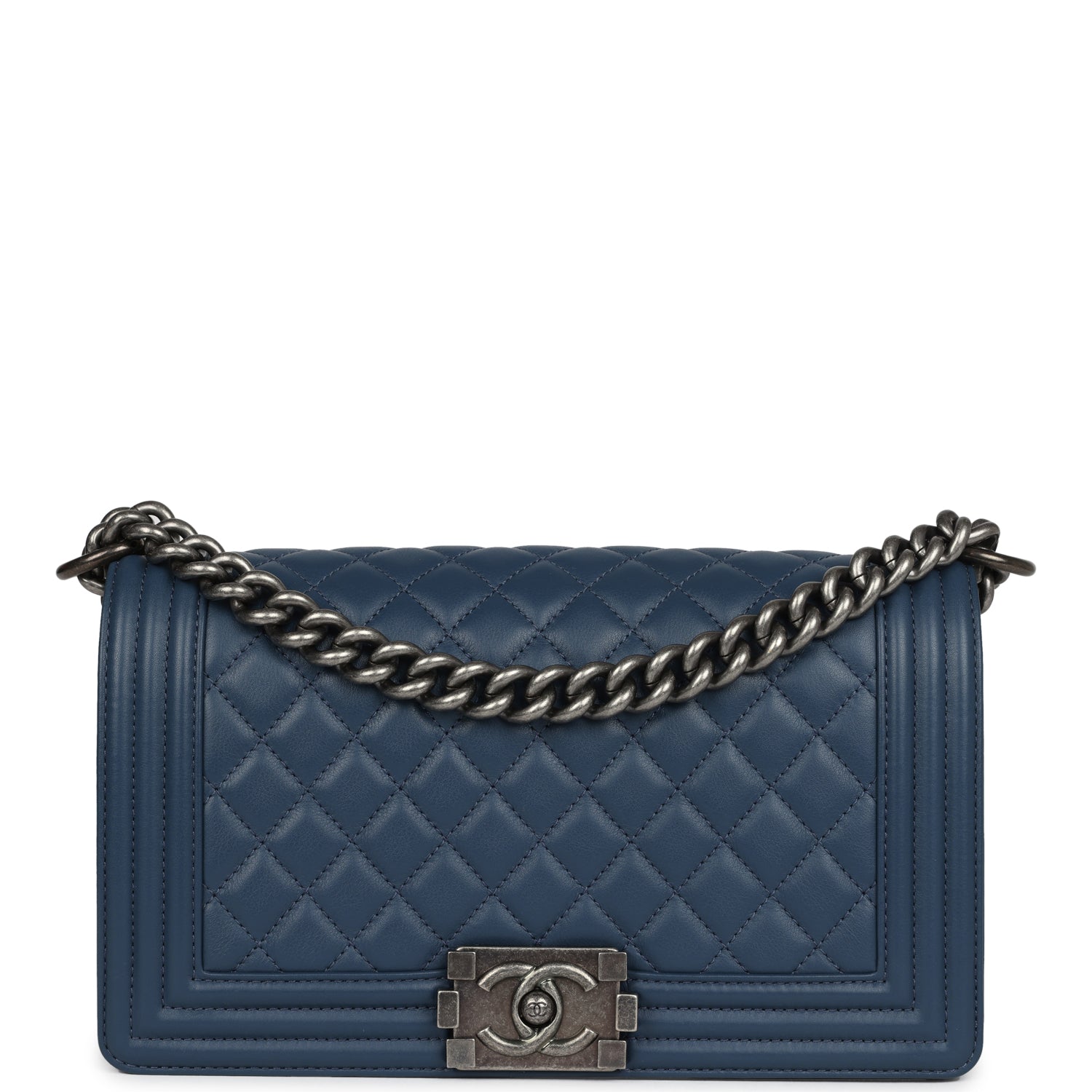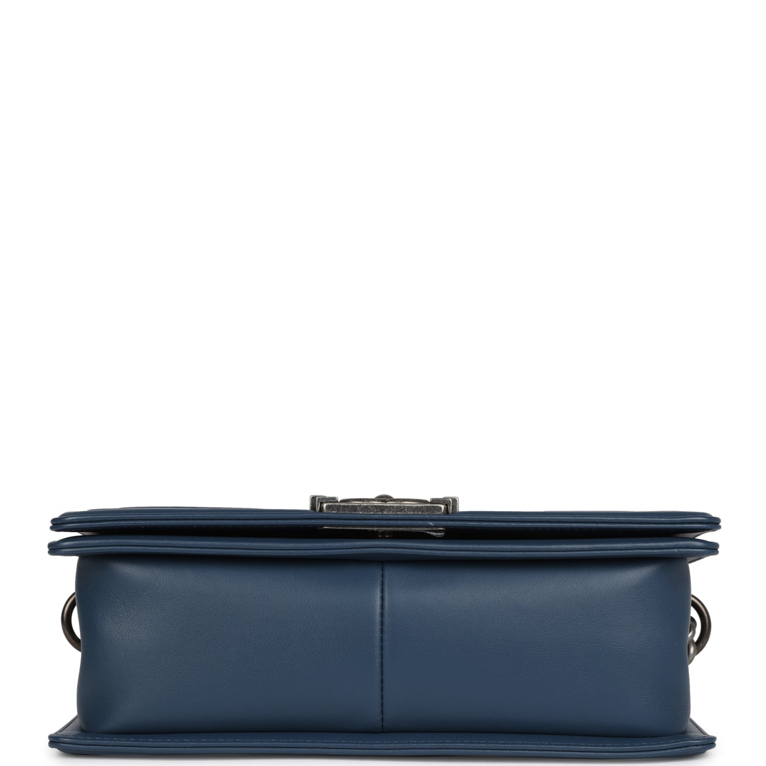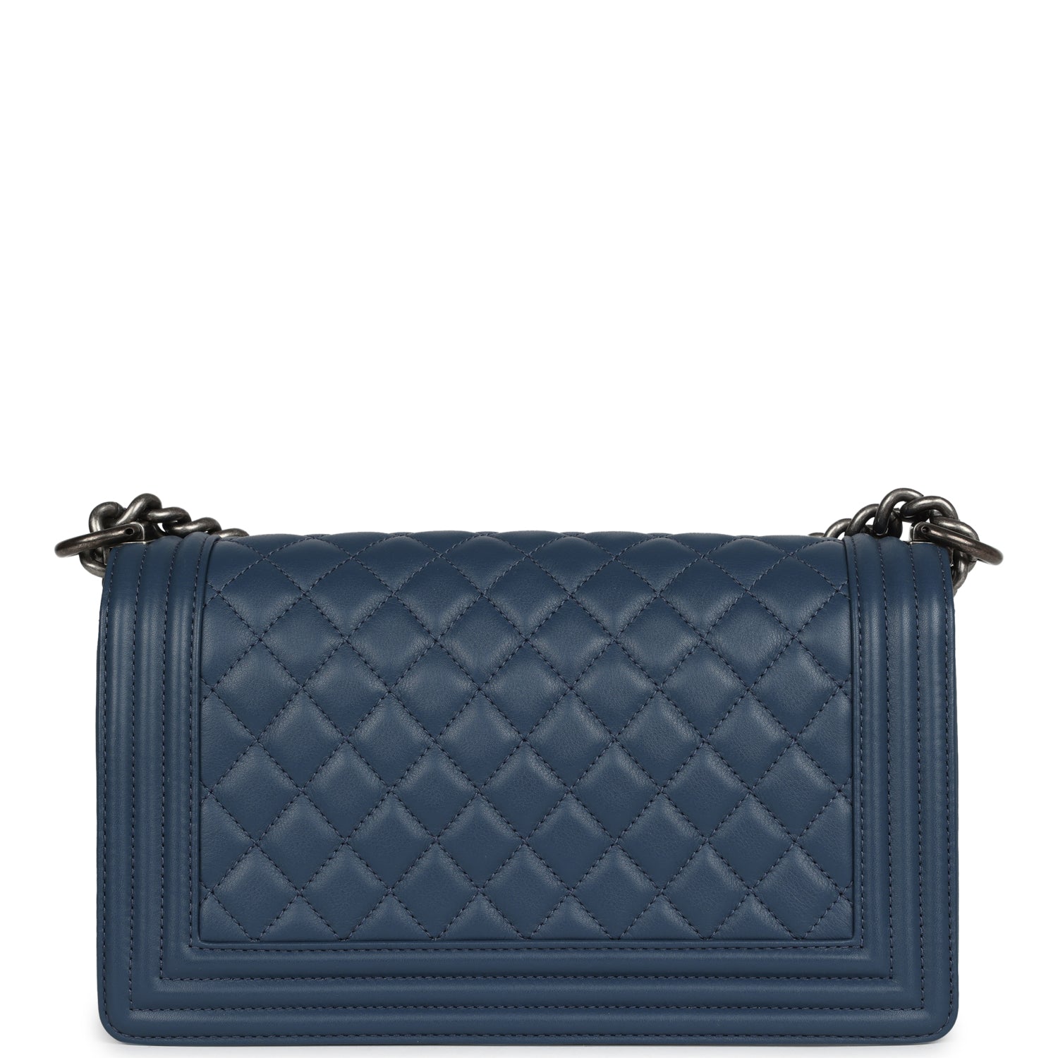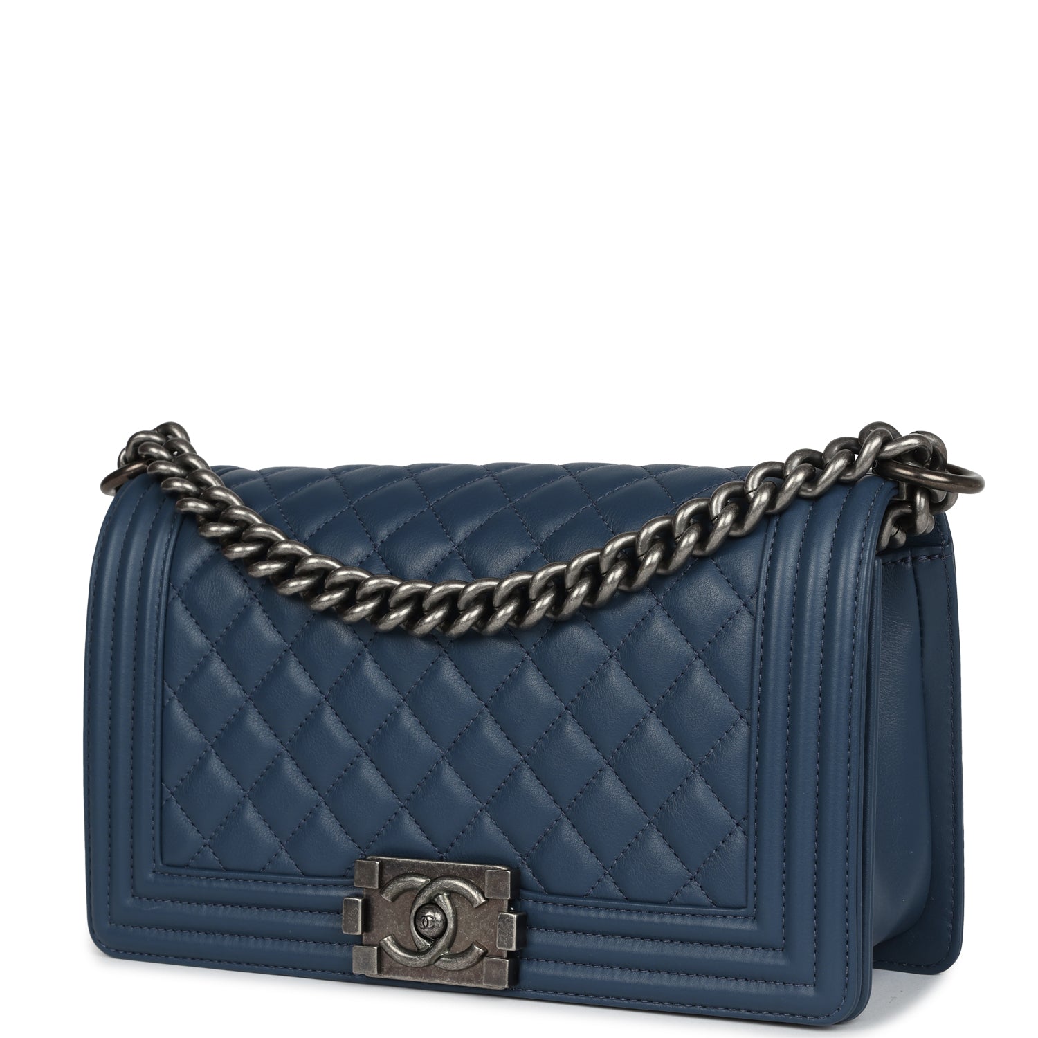 Chanel Medium Boy Bag Blue Lambskin Ruthenium Hardware