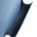 The interior is lined in blue grossgrain fabric with an open pocket on rear wall.