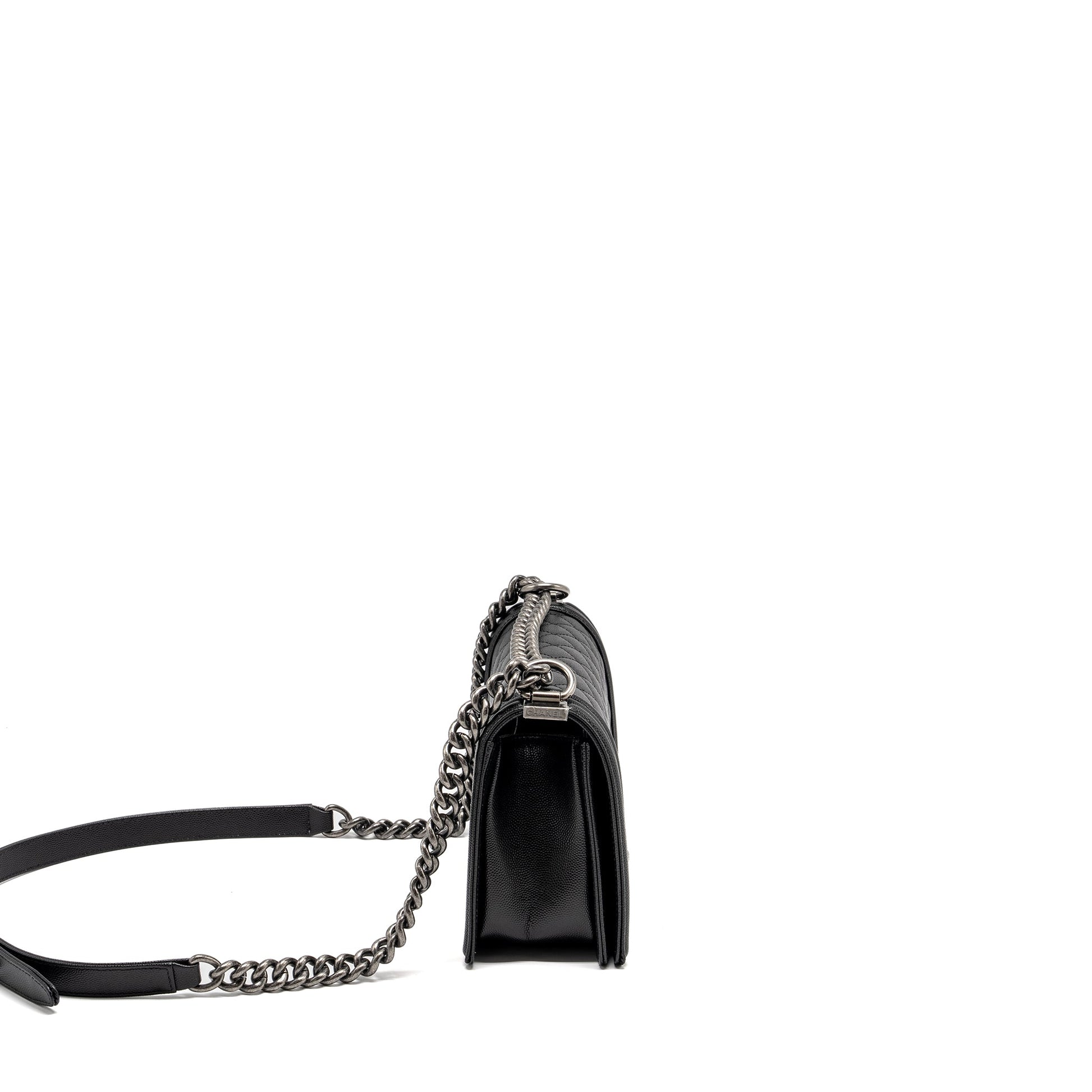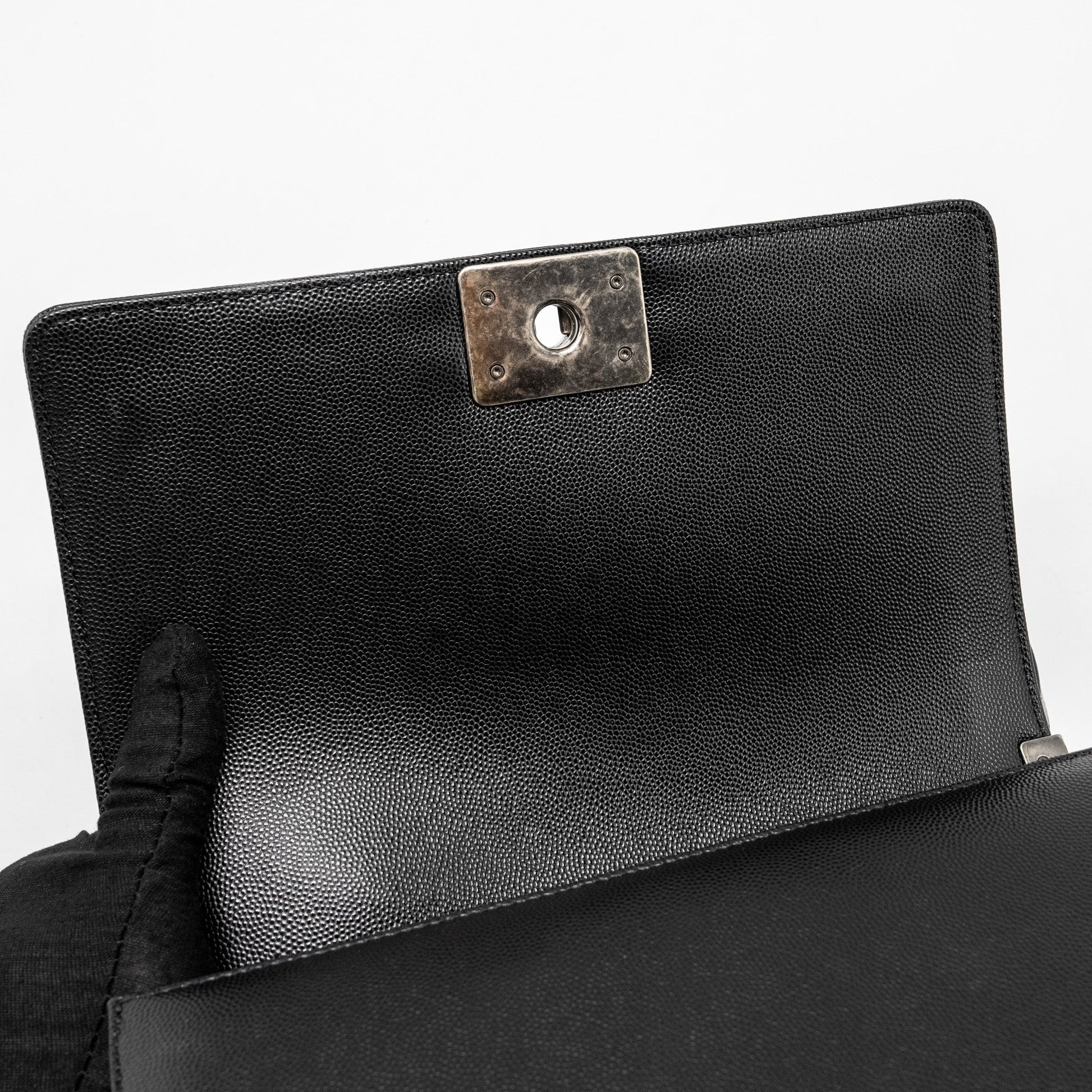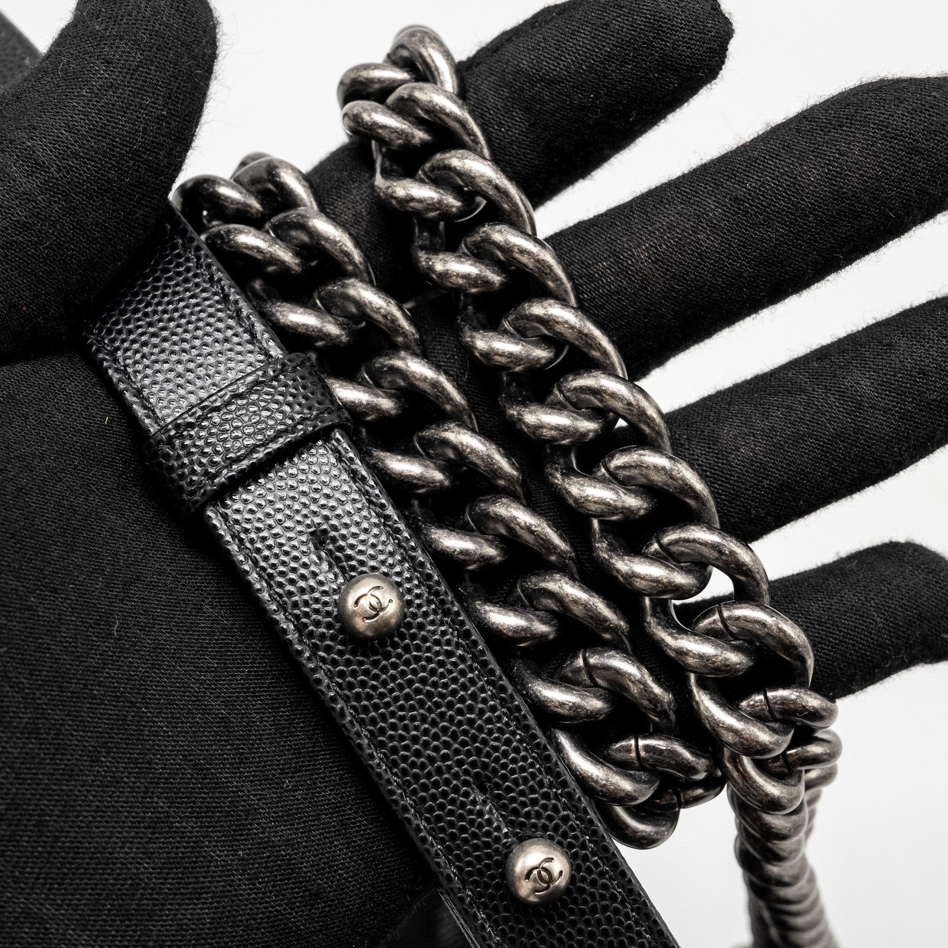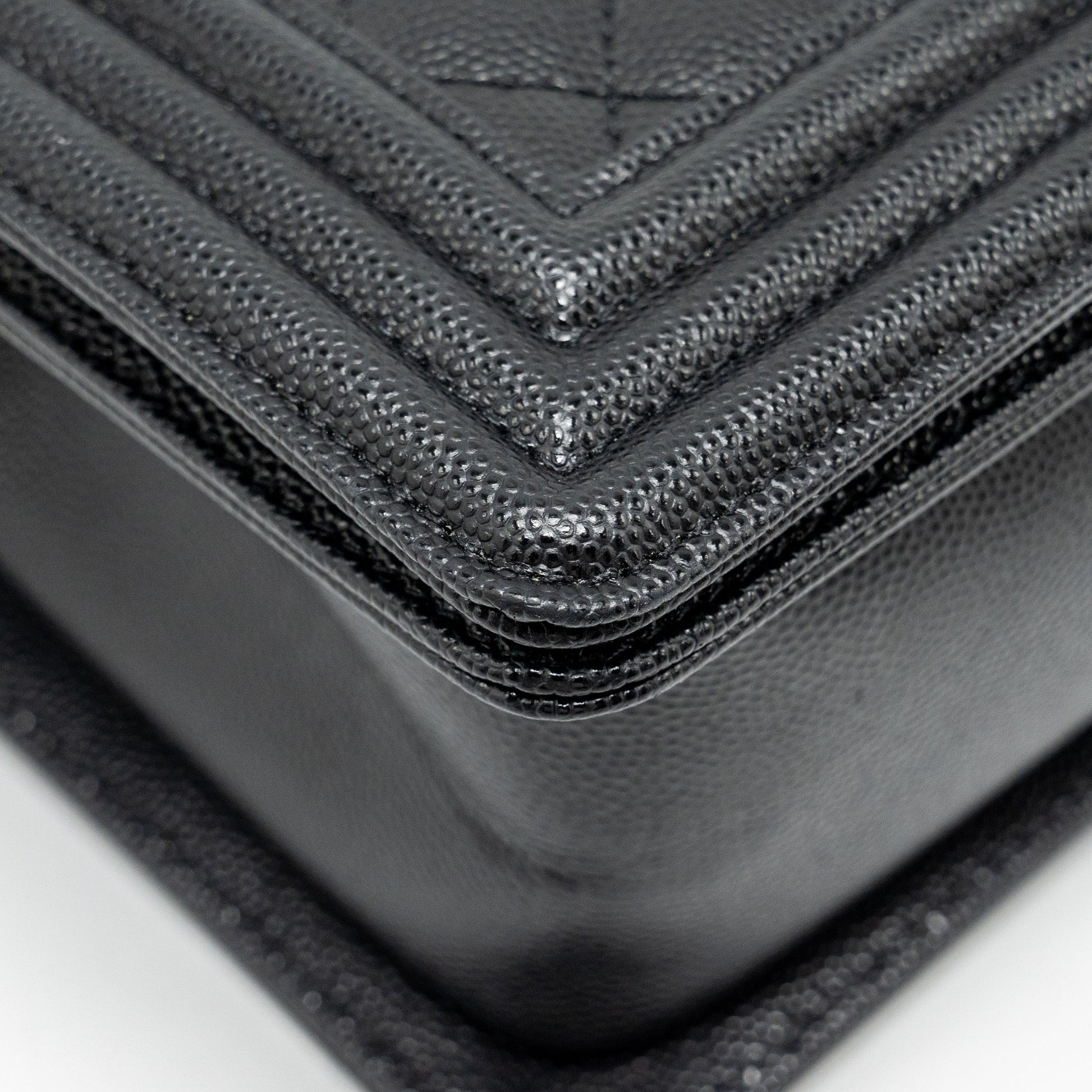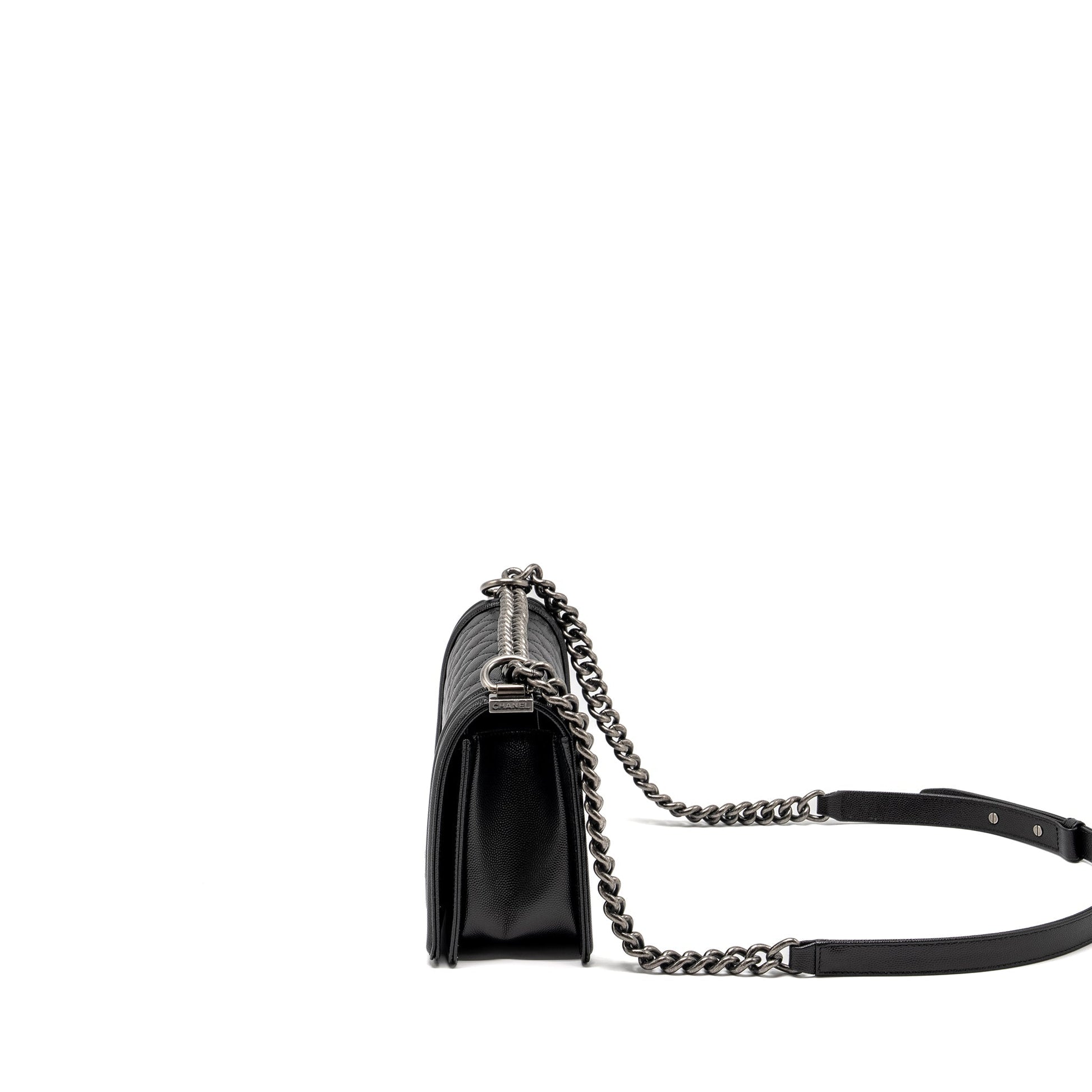 Chanel Medium Boy Bag Caviar Black Ruthenium Hardware (microchip)