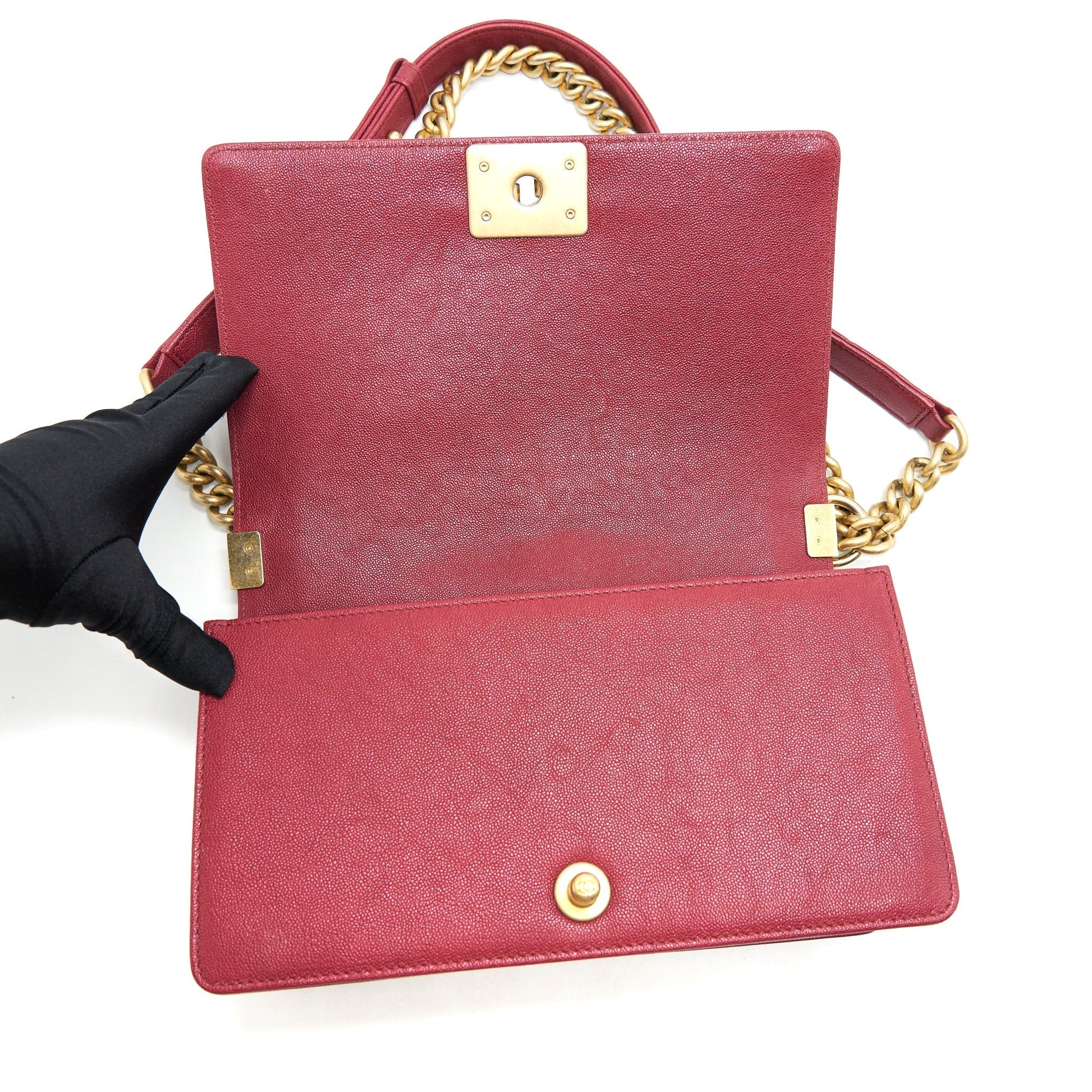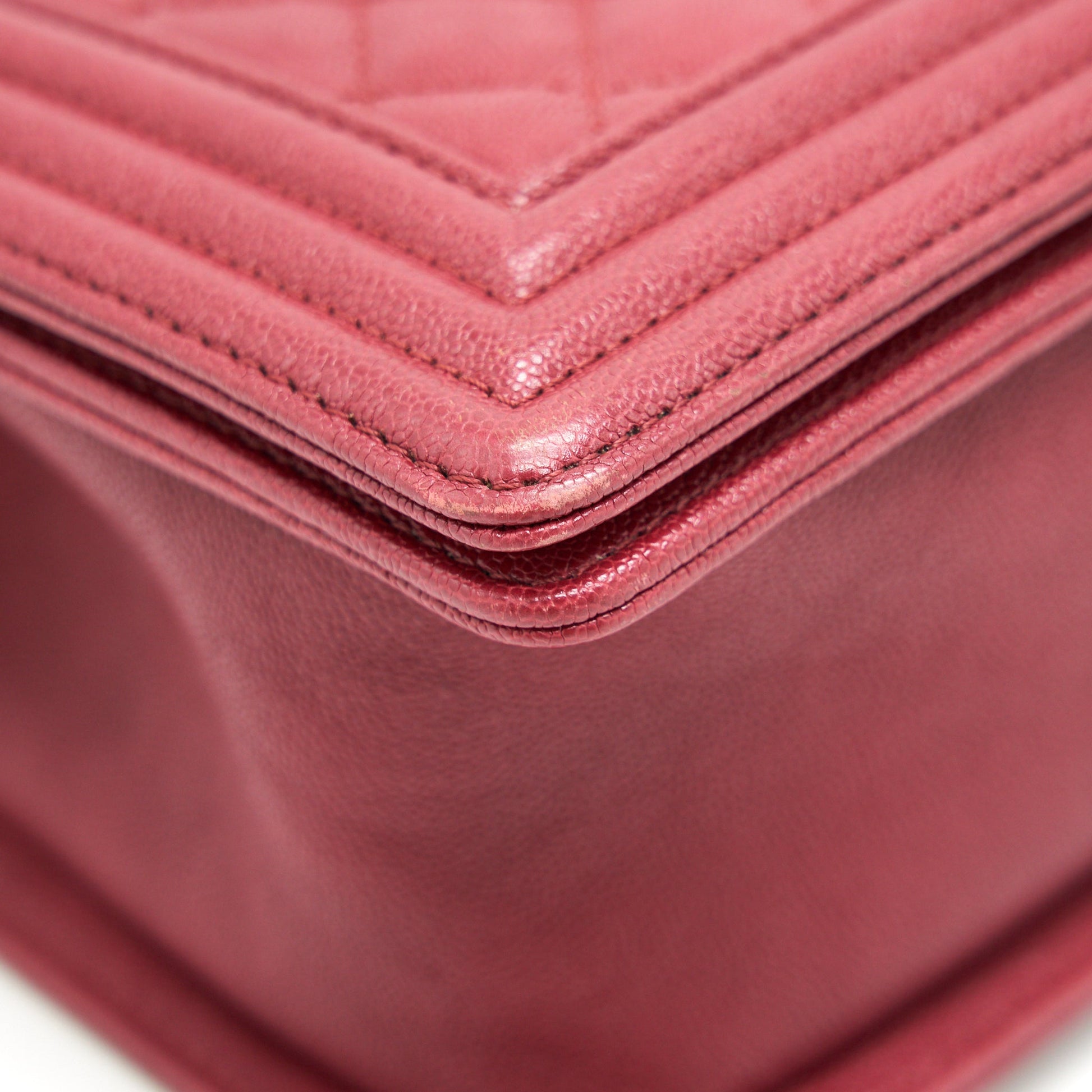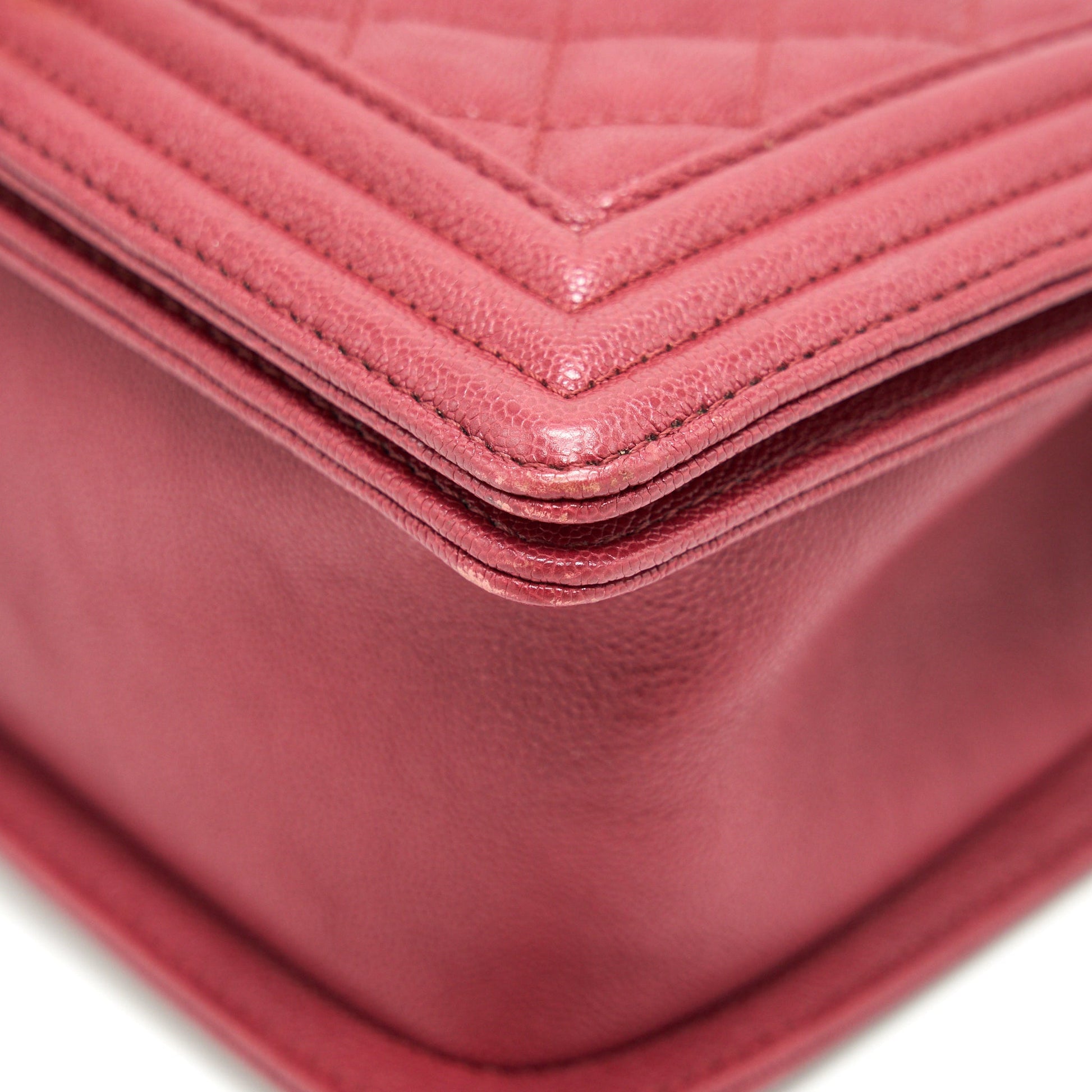 Chanel medium Boy Bag Caviar Raspberry Red brushed GHW
