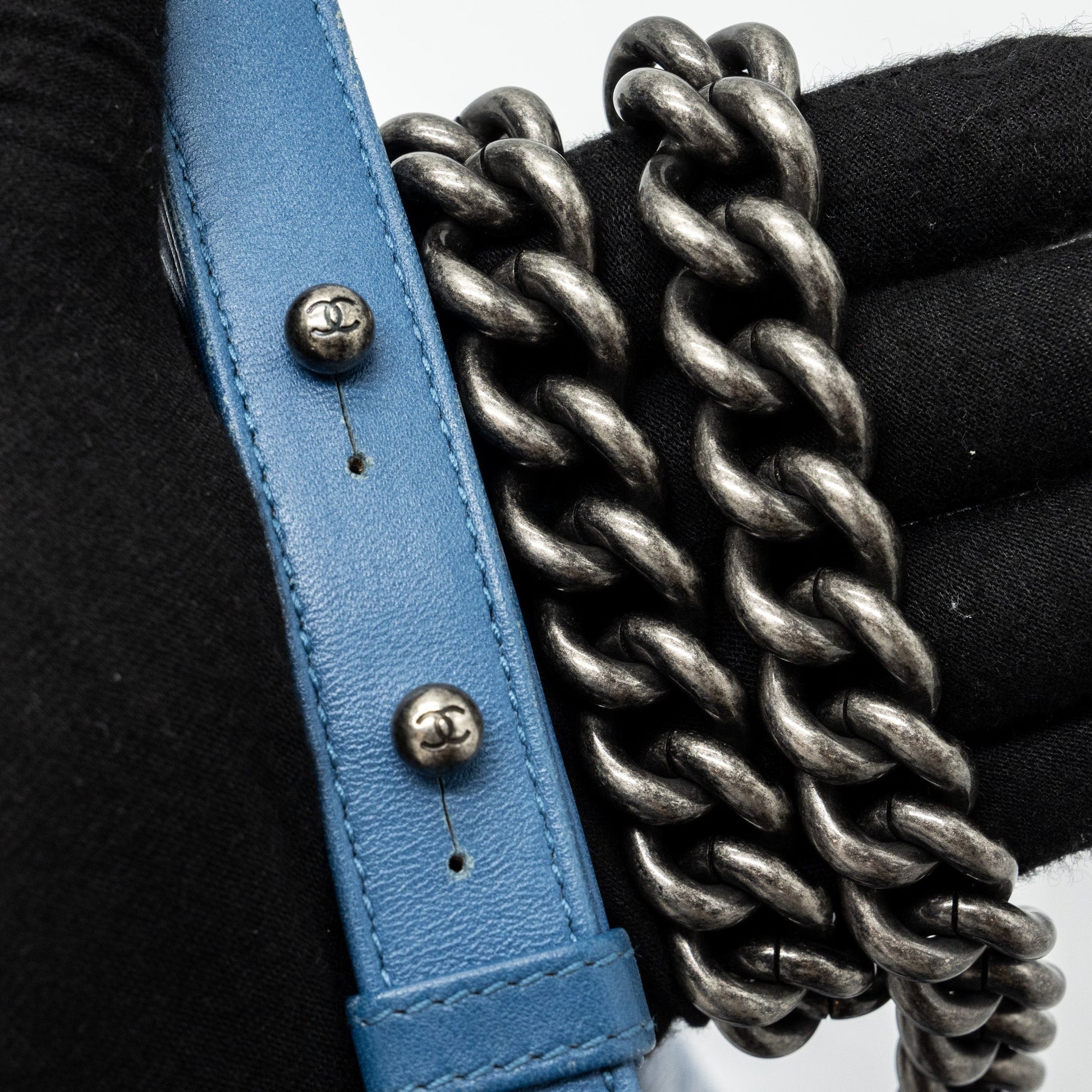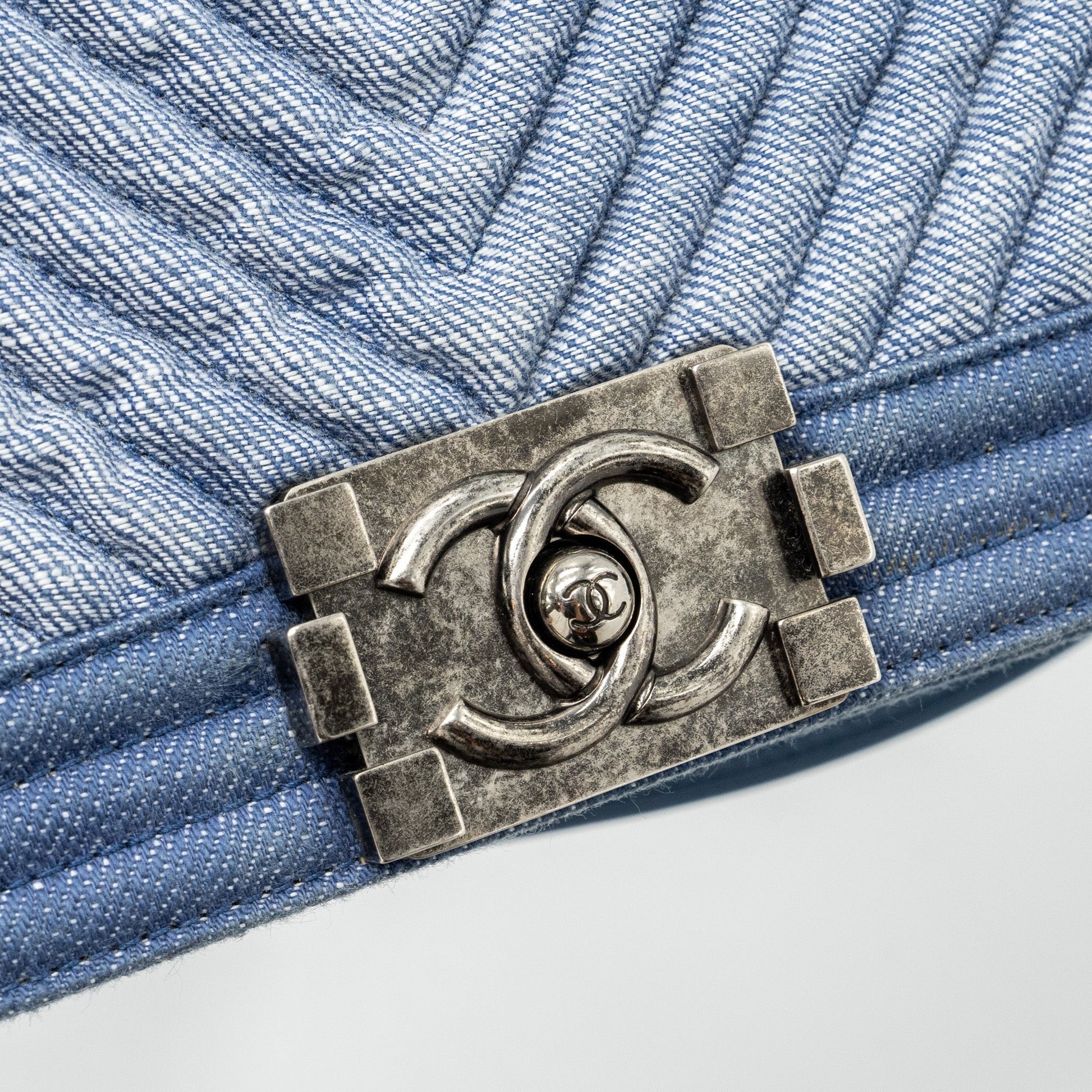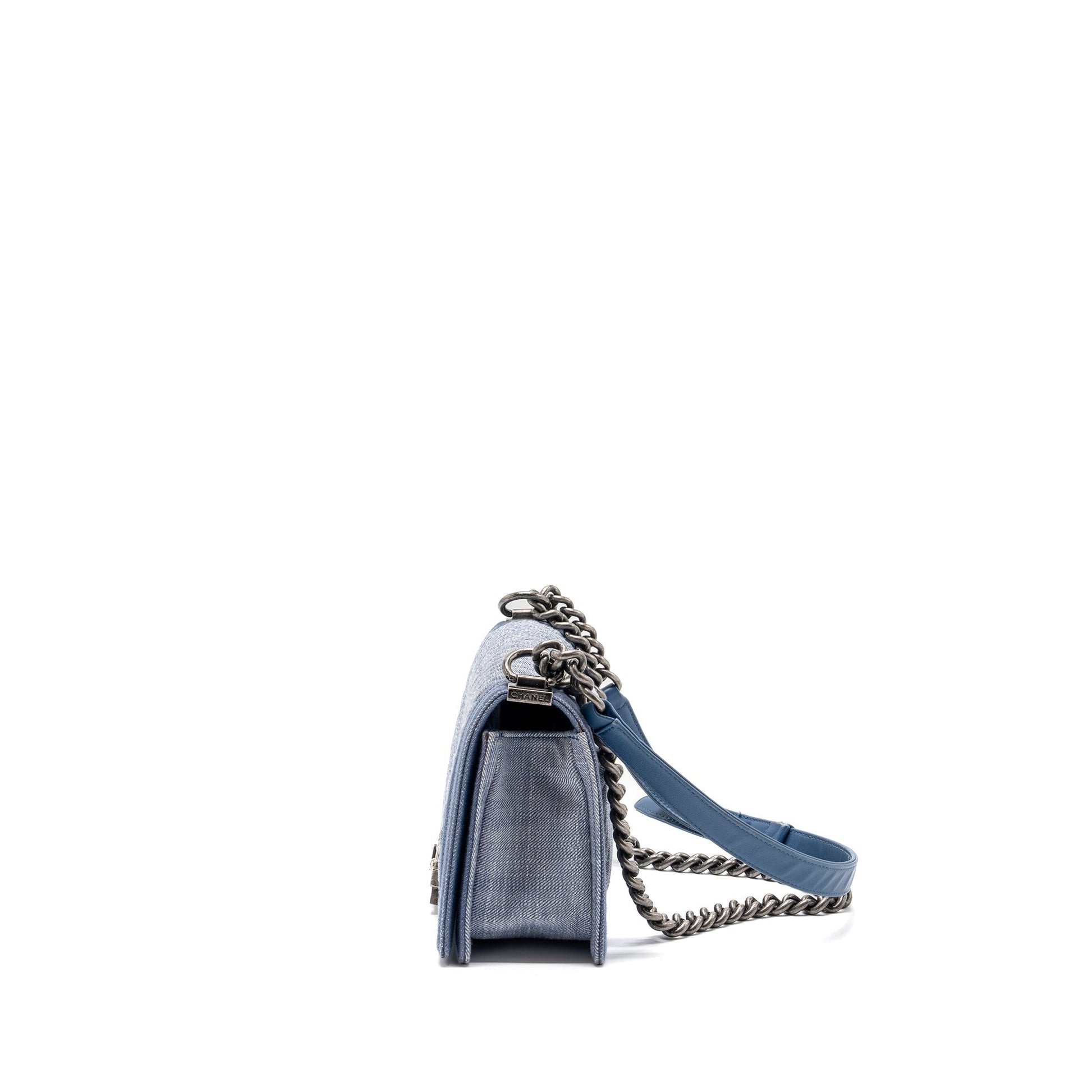 Chanel Medium Boy Bag Denim Blue Ruthenium Silver Hardware