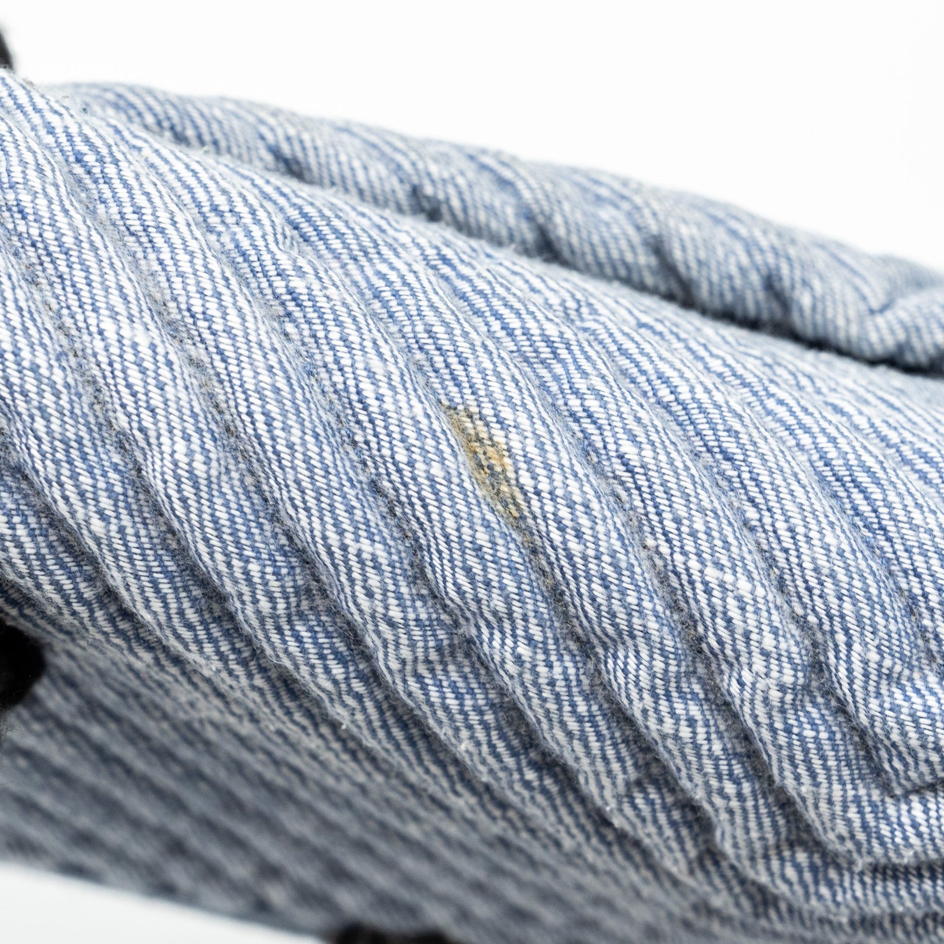 Well (This item is in very good condition with slight rubbing on corners and strap, slight marks on denim, slight scratches on hardware, slight sign of use inside.)