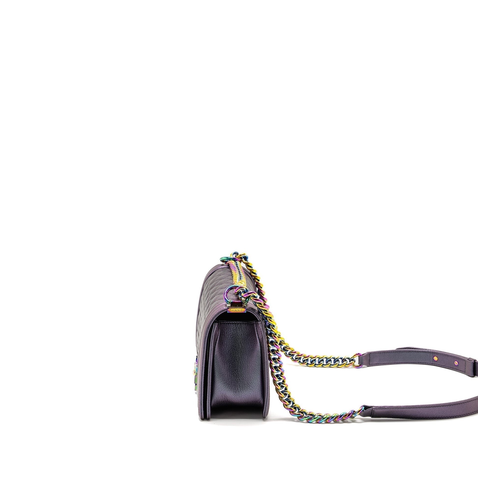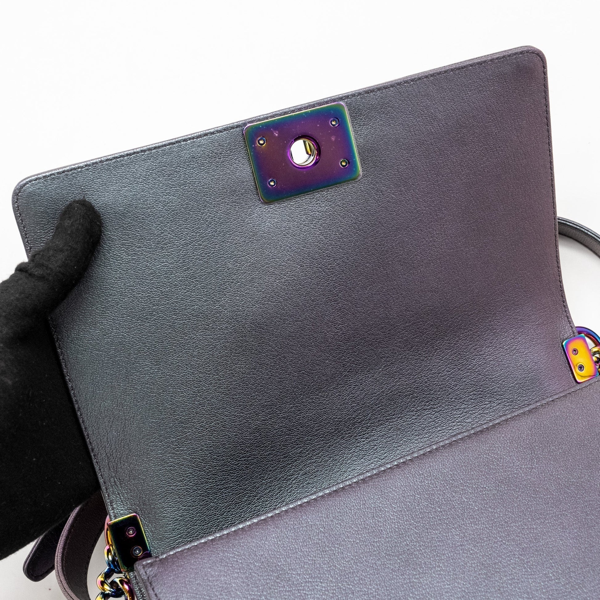 Chanel Medium Boy Bag Goatskin Iridescent Purple Multicolour Hardware