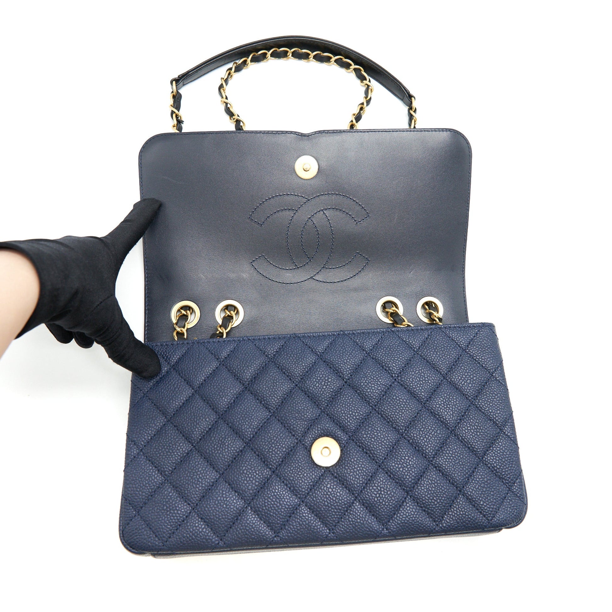 Chanel Medium Caviar Filigree Flap Bag Navy and Black