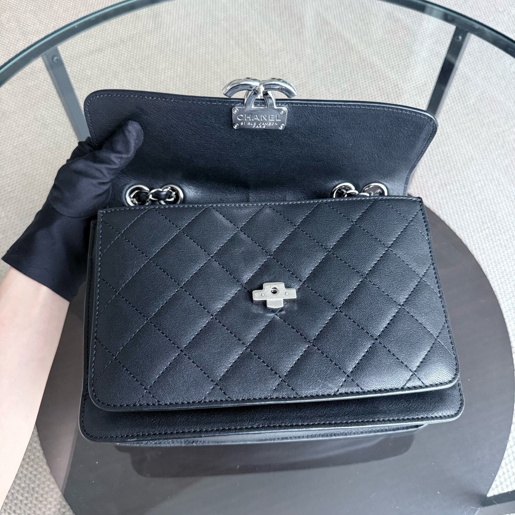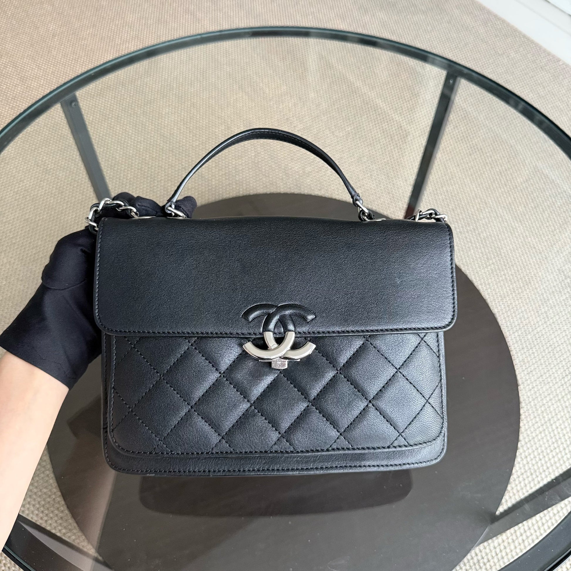 Chanel Medium CC Box Flap - Quilted Calfskin Black Silver Hardware Series 25