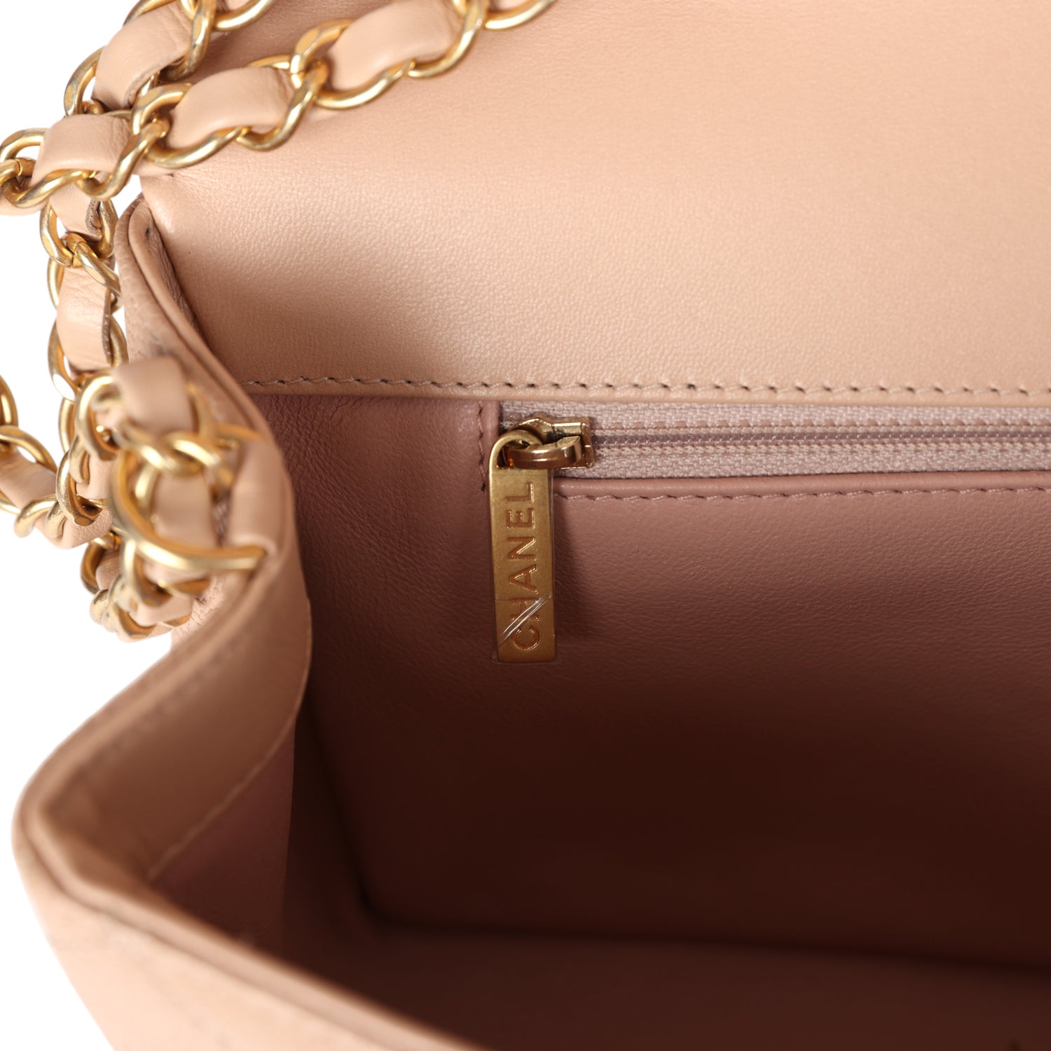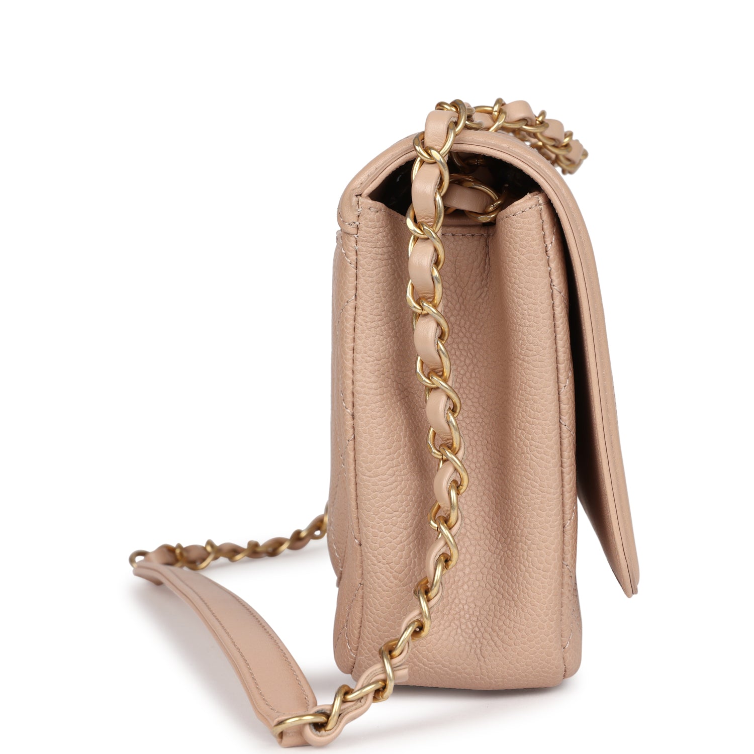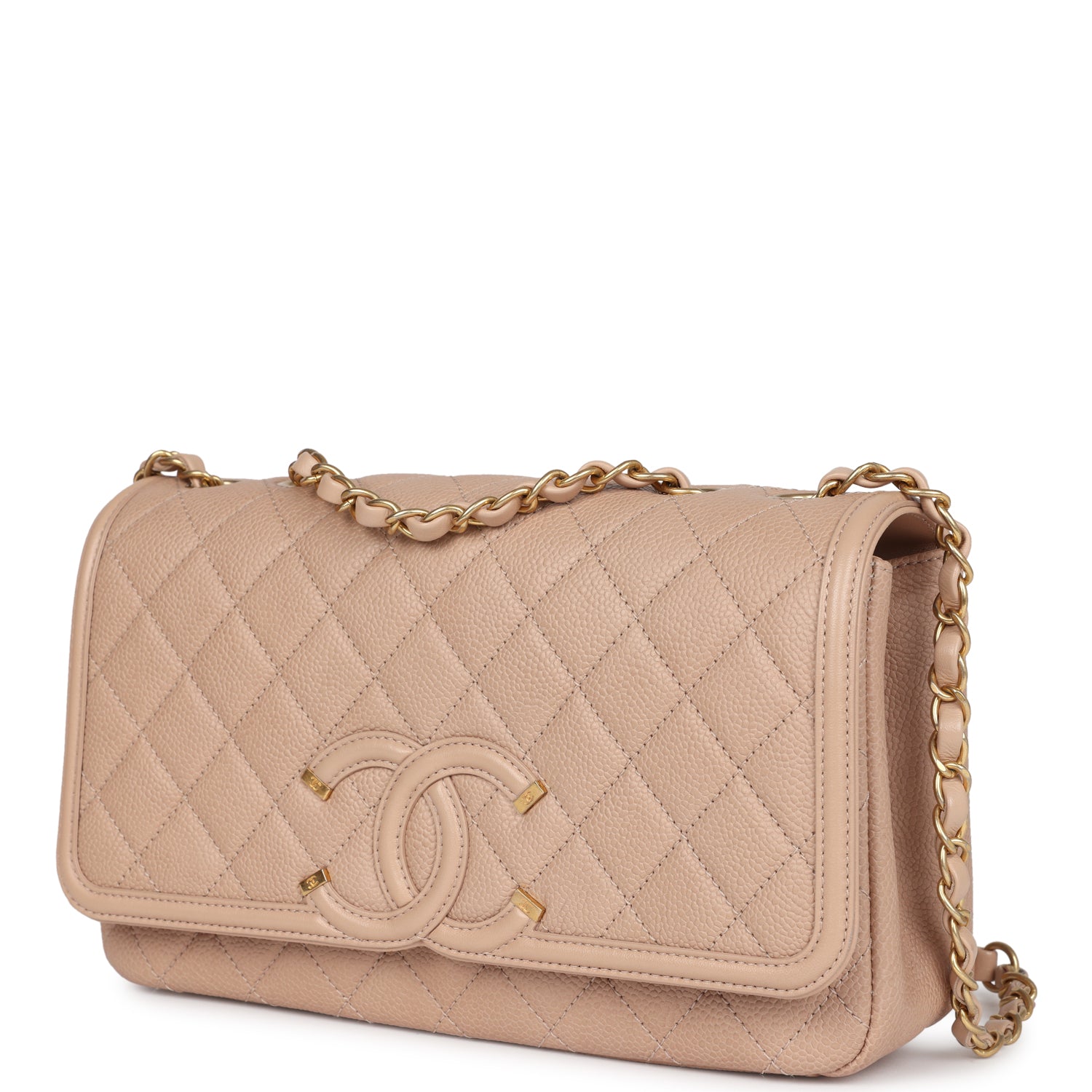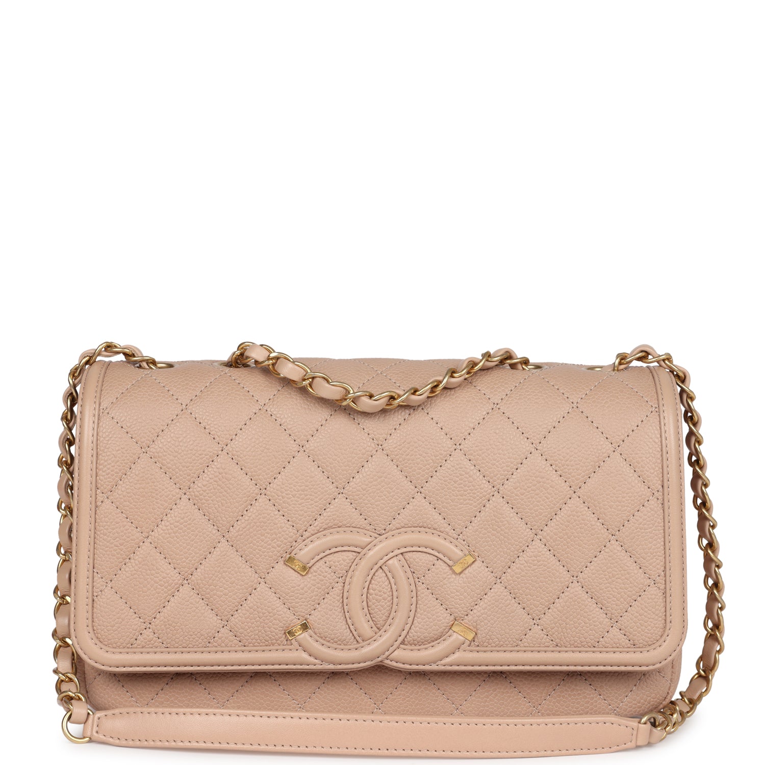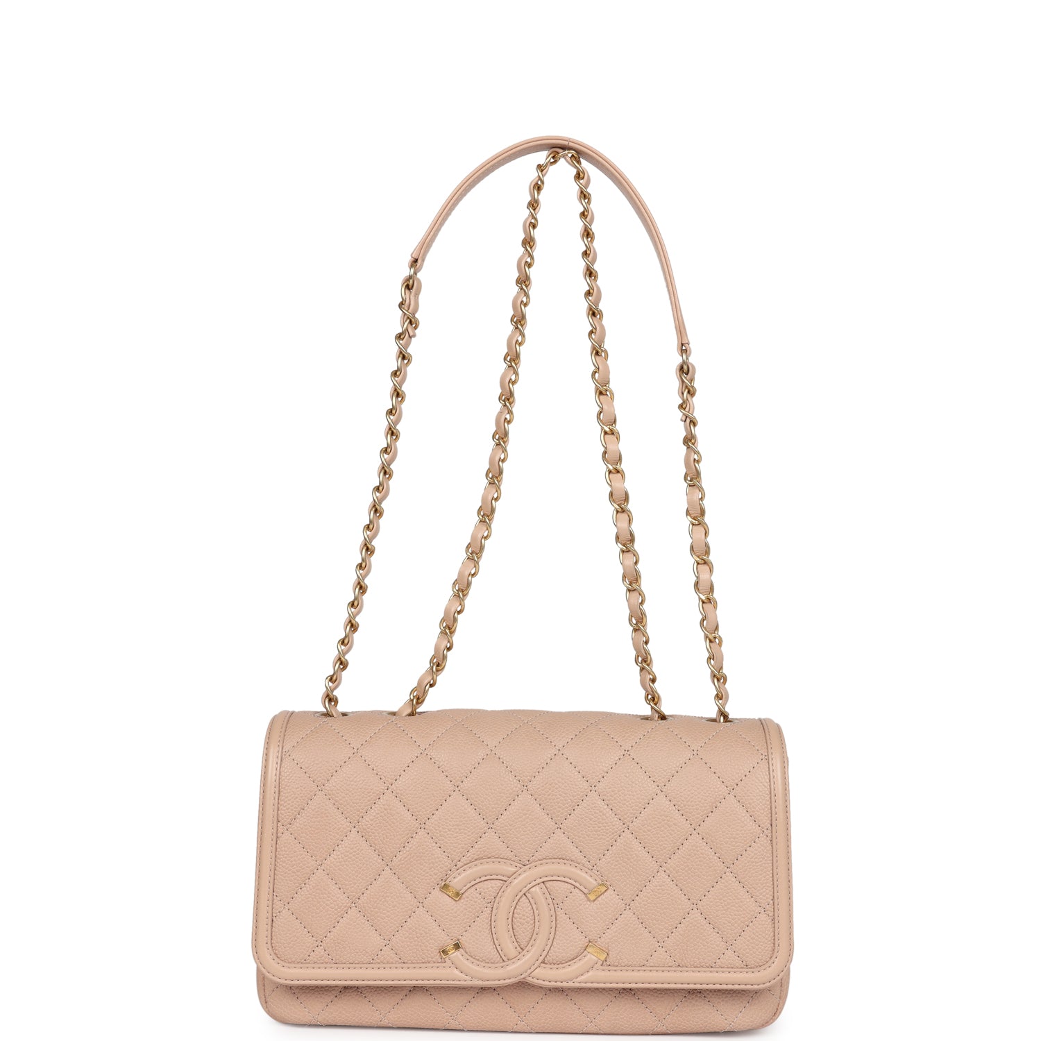 Chanel Medium CC Filigree Flap Bag Beige Caviar Brushed Gold Hardware