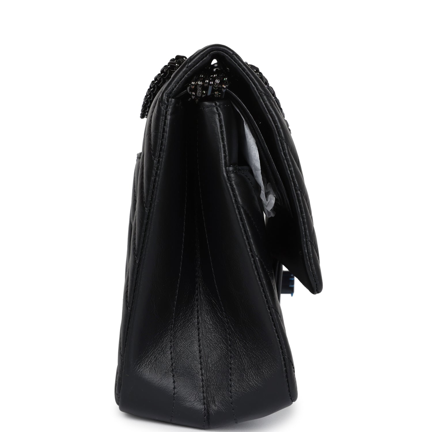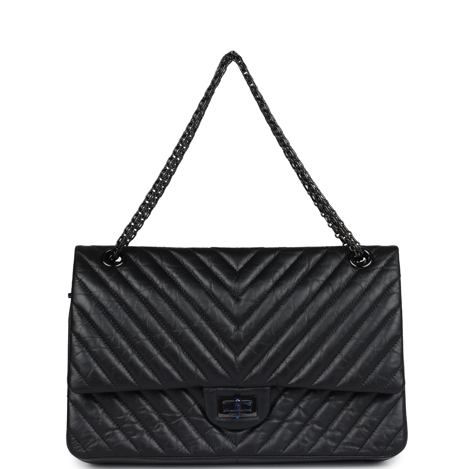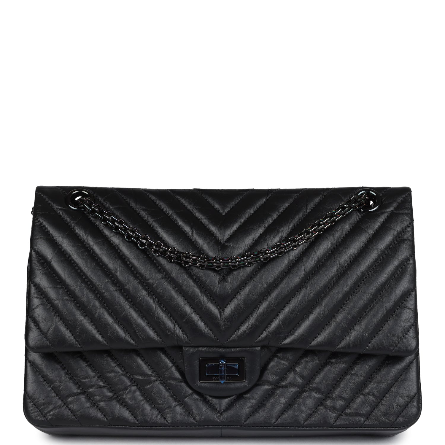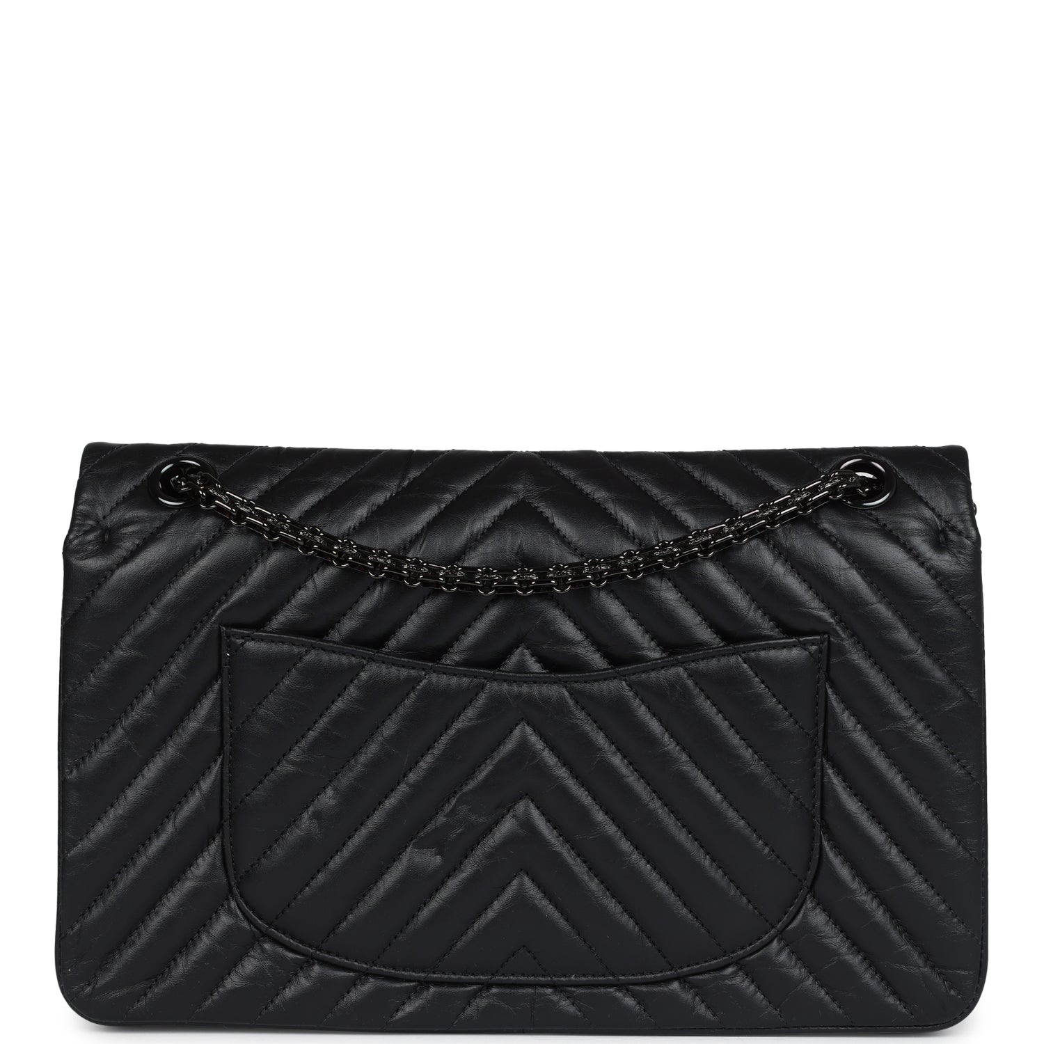 Chanel Medium Chevron Reissue 226 2.55 Flap Bag So Black Aged Calfskin Black Hardware