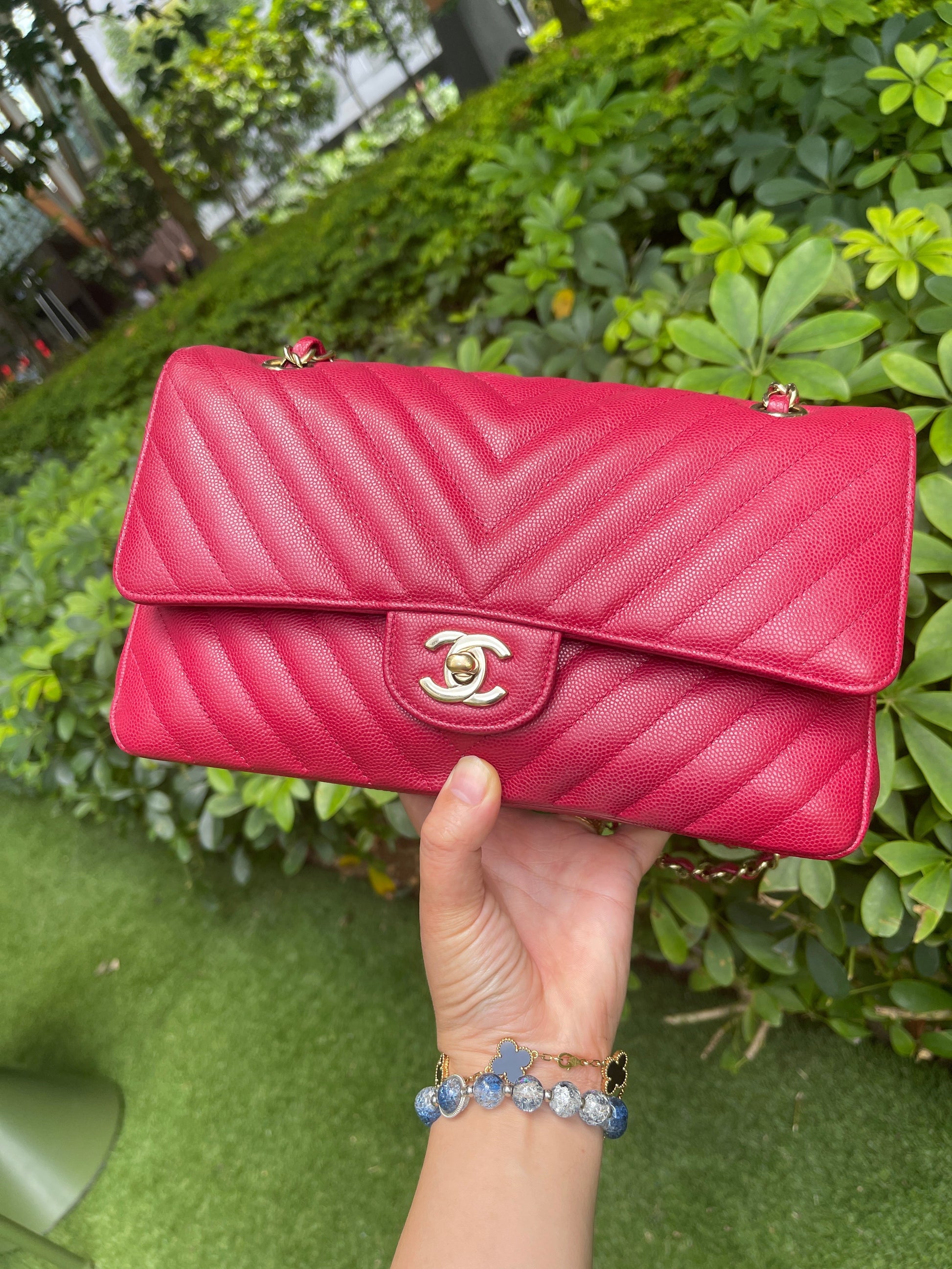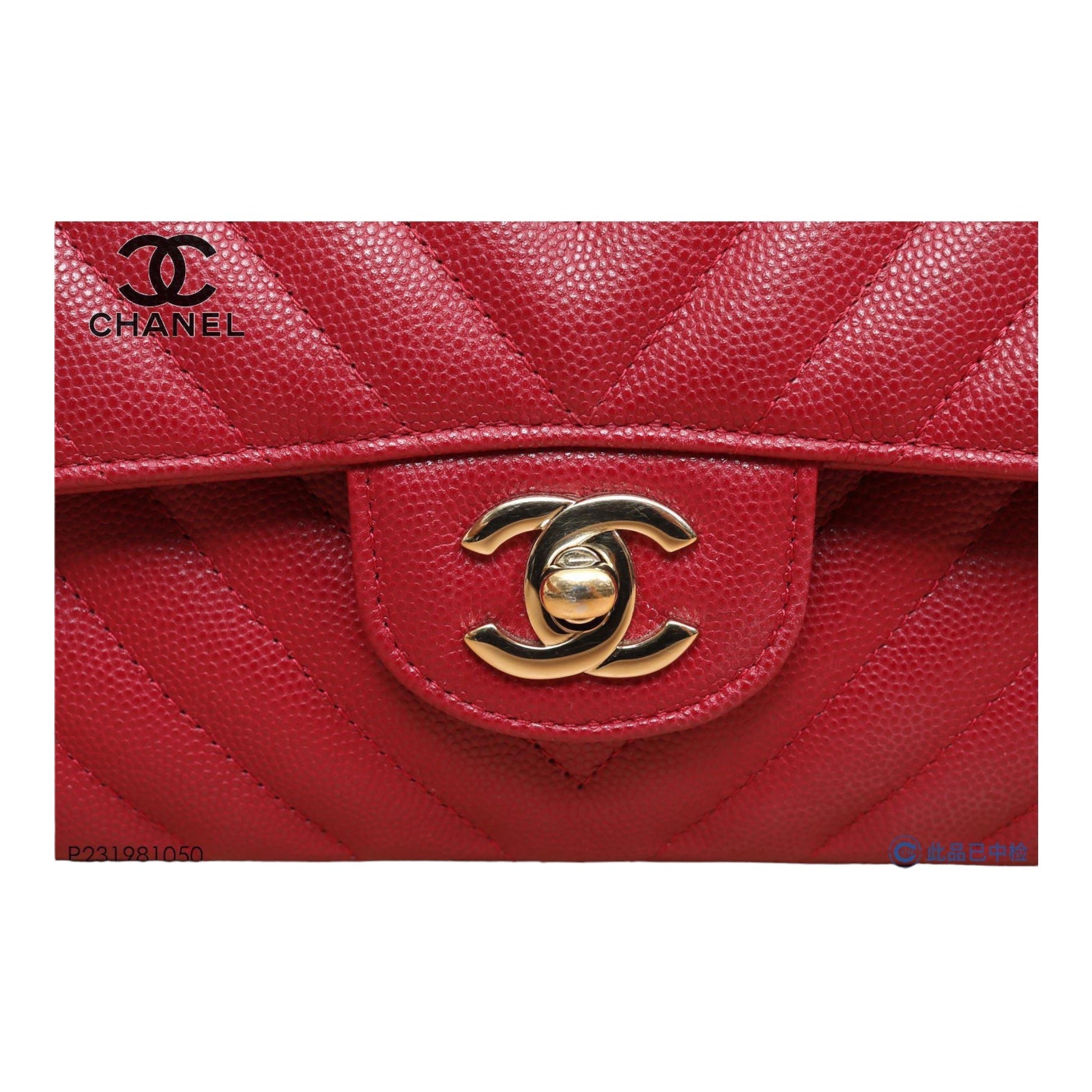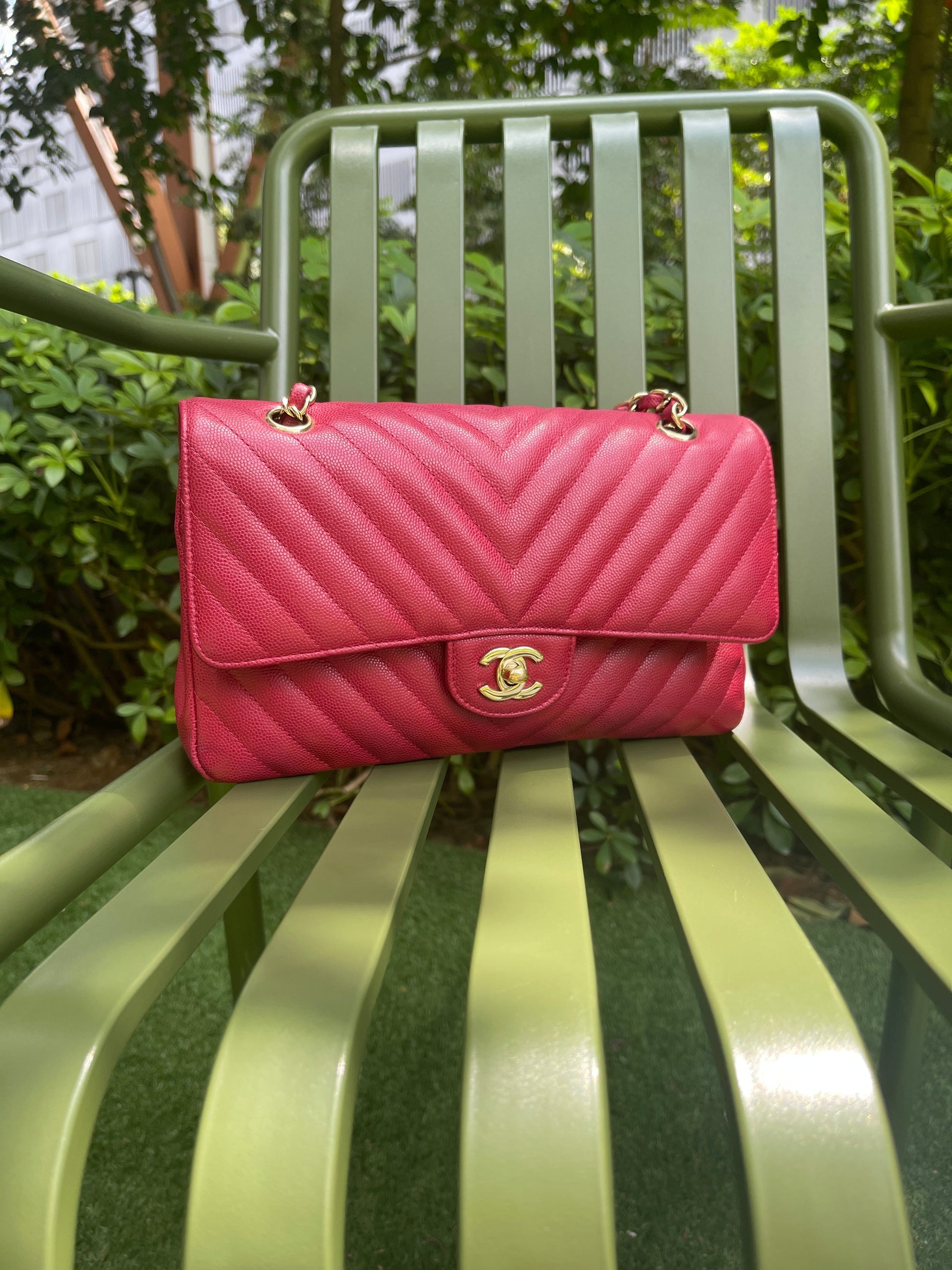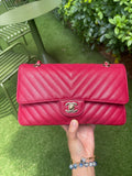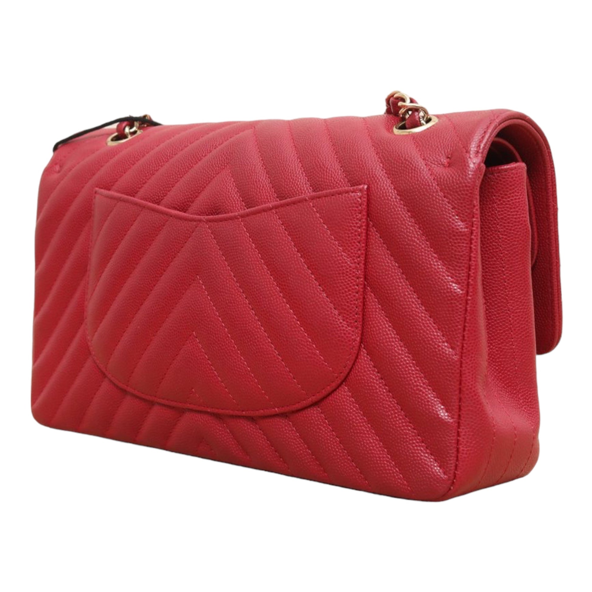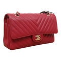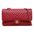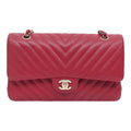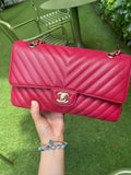 Chanel Medium Chevron Rosy Red Caviar Gold Hardware 18B