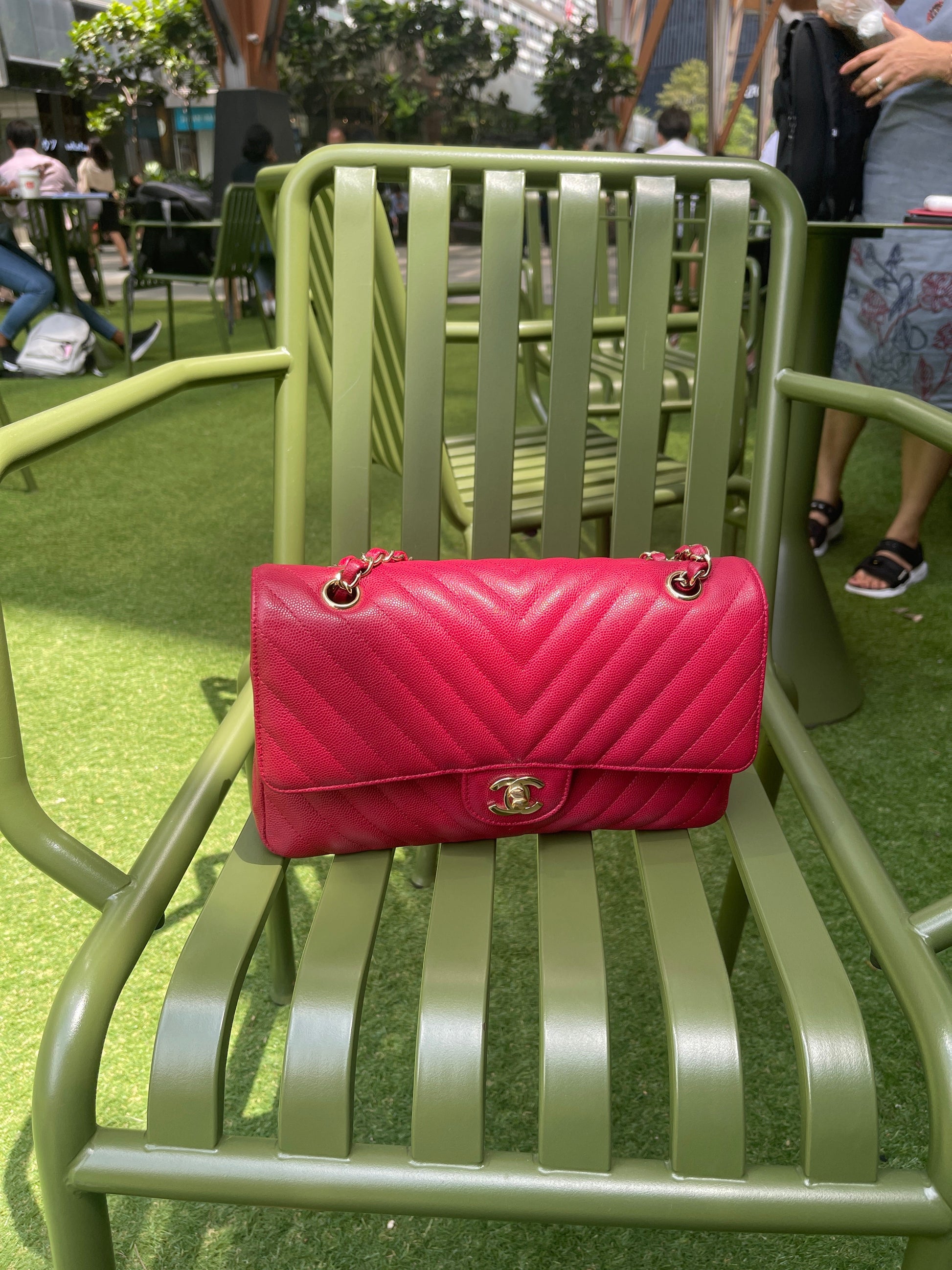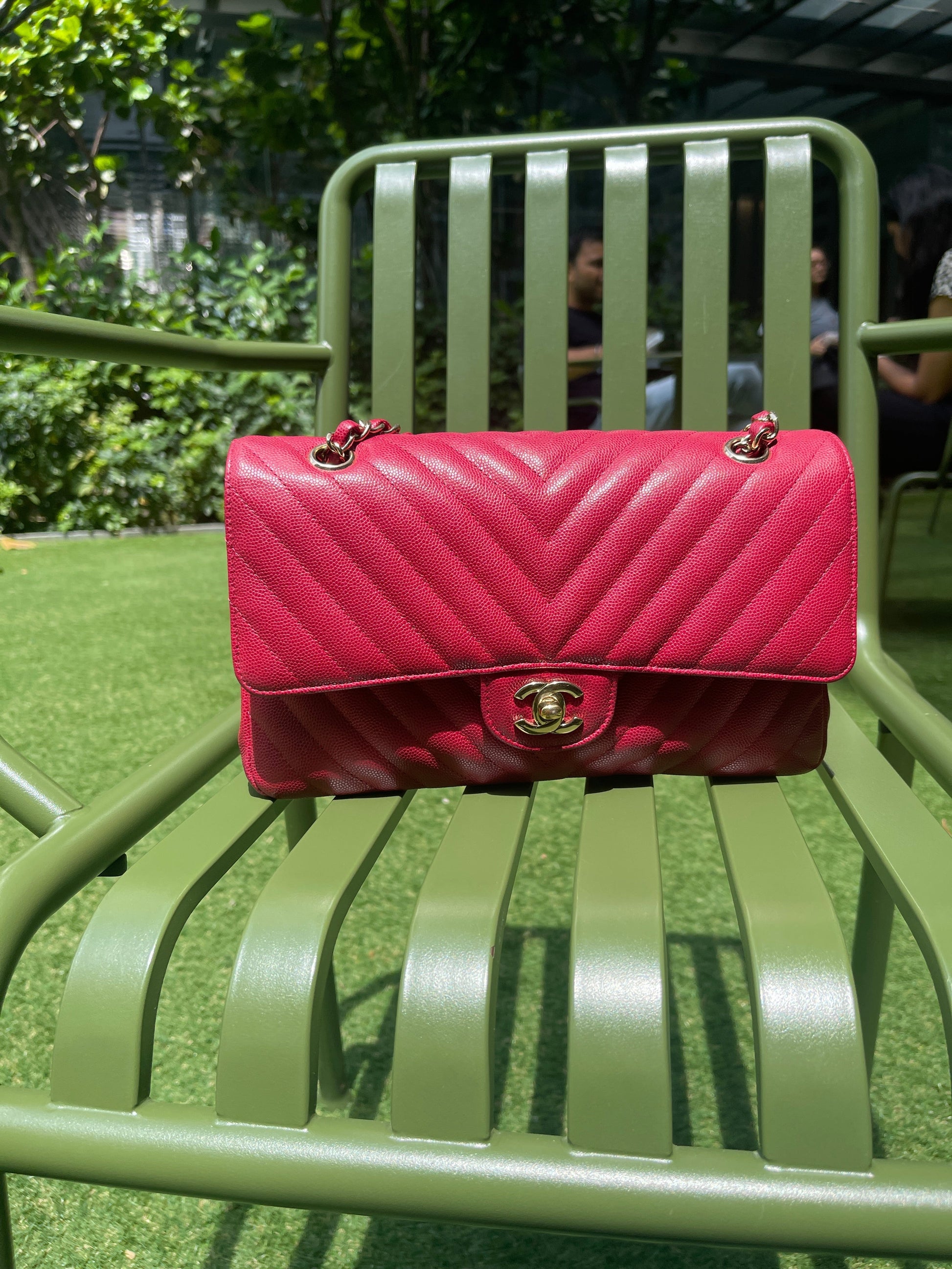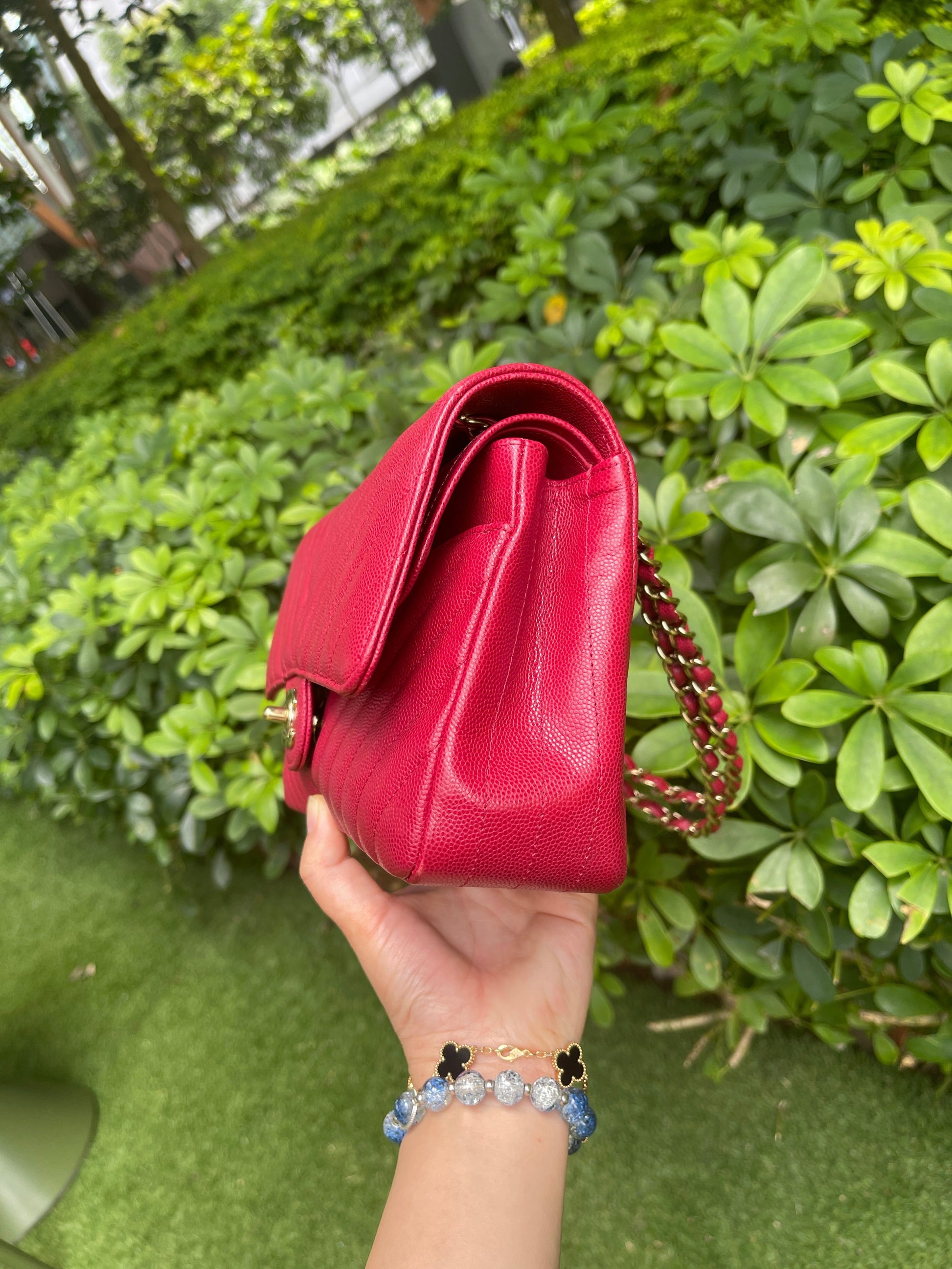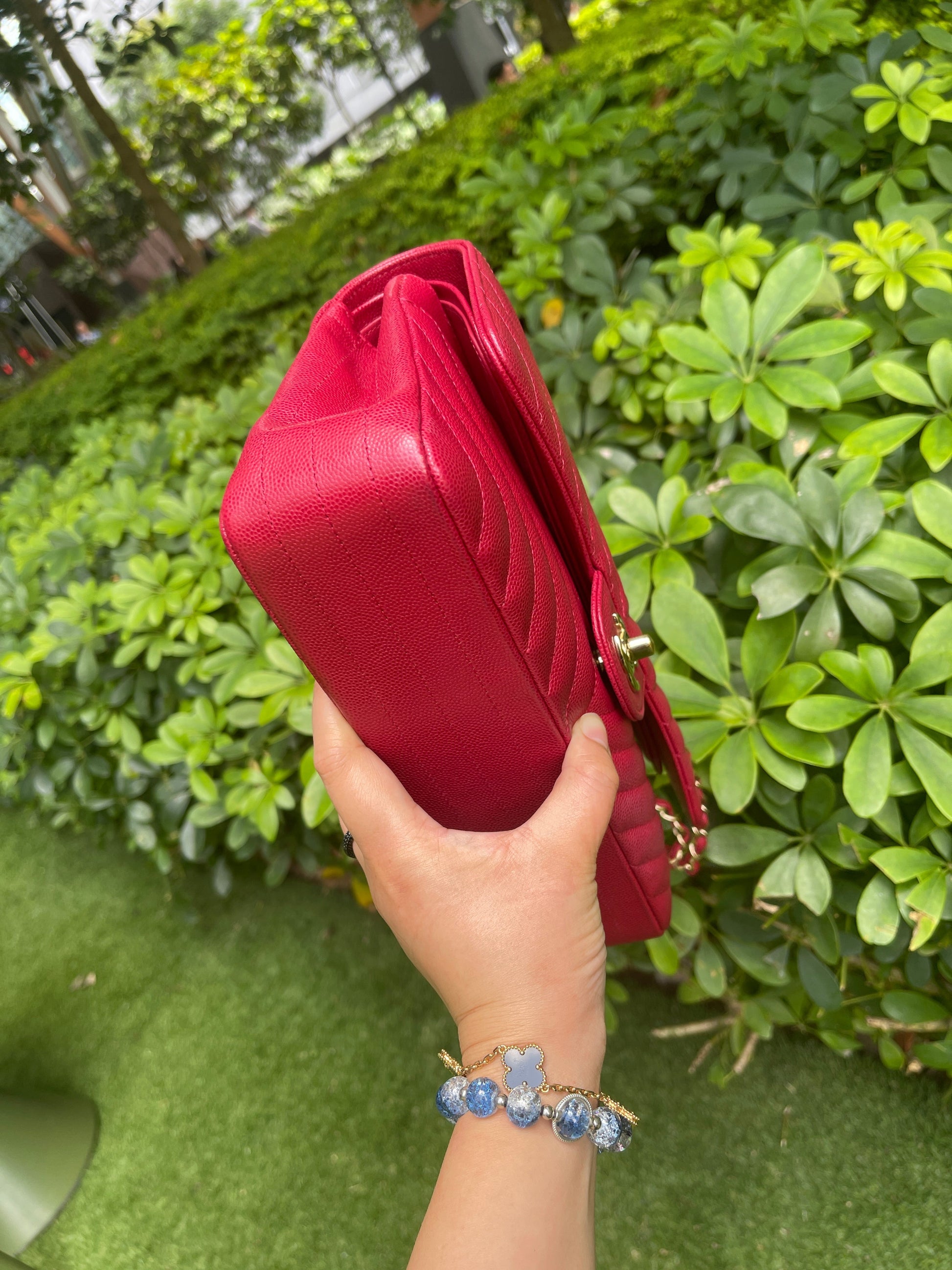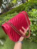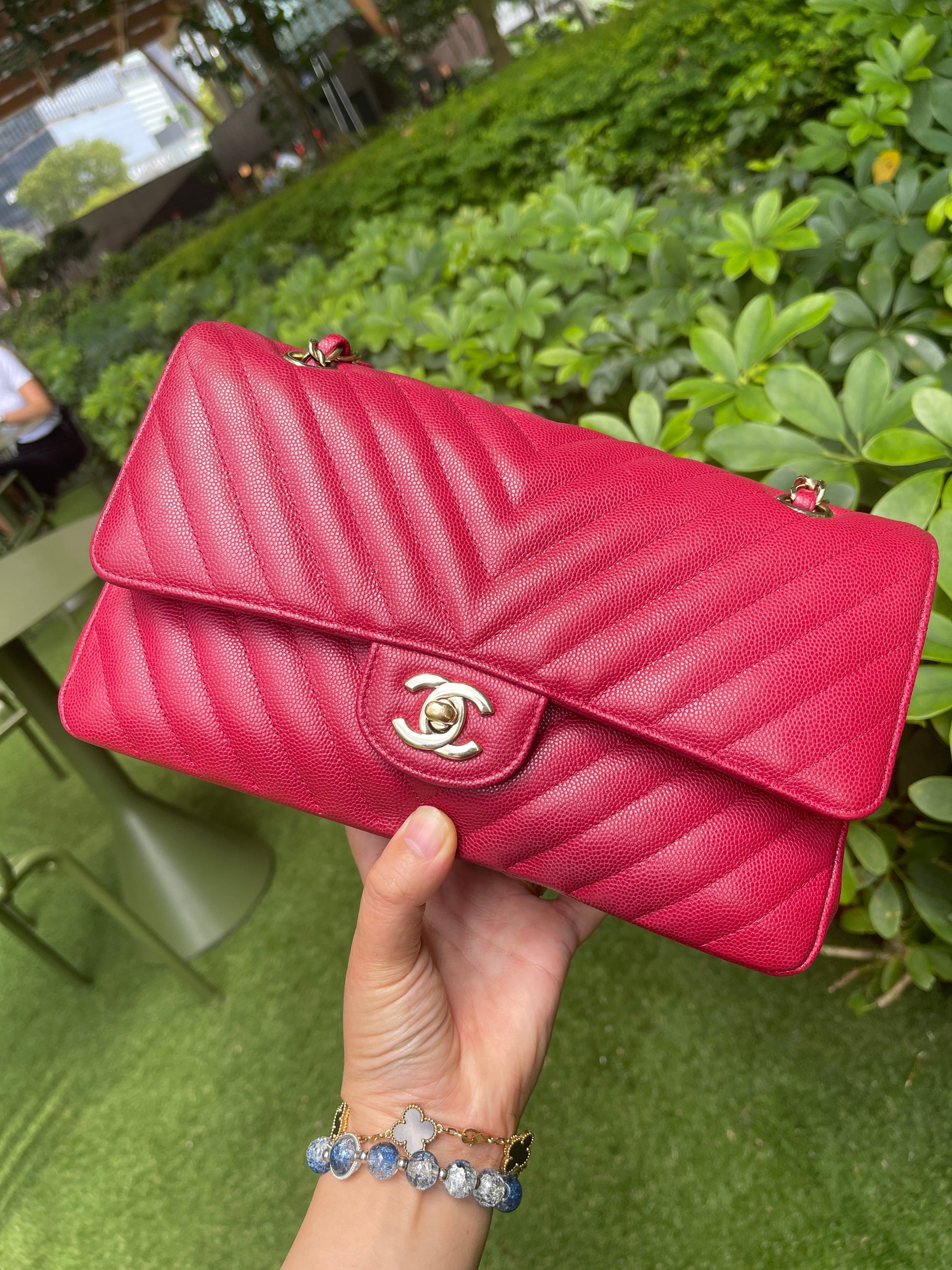 Chanel Medium Chevron Rosy Red Caviar Gold Hardware 18B